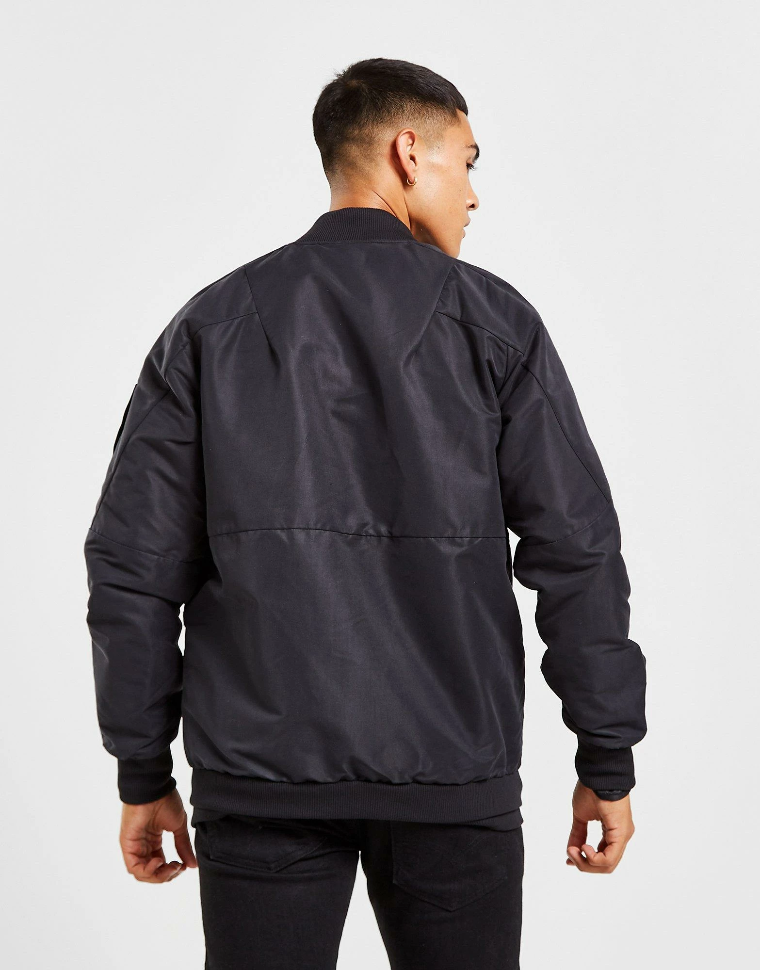 Back your team whatever the weather with this men’s Manchester United FC Travel Jacket from adidas. In a Black colourway, this standard fit jacket is cut from light, breathable Primegreen recycled poly for a cool, comfy feel. It features a full-zip fastening and ribbed bomber collar for custom coverage, with a padded lining to keep you cosy. It has front pockets with snap-buttons for securin’ your matchday essentials and is finished up with a Badge of Sport and Man United crest to the chest. | Our model is 6’0″ with a 40″ chest and wears a size medium.