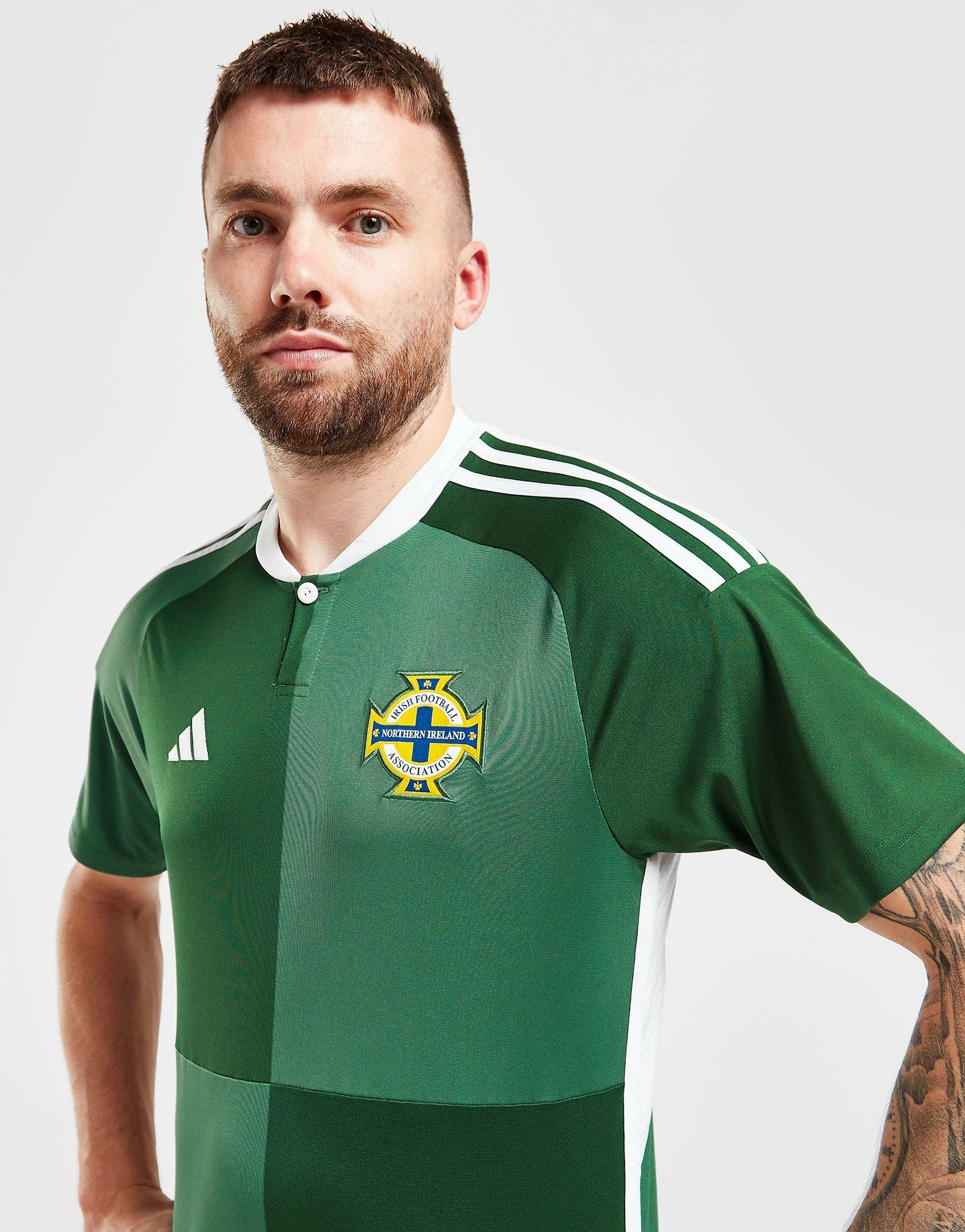 THIS ITEM IS AVAILABLE FOR PRE ORDER WITH AN EXPECTED RELEASE DATE OF 15TH SEPTEMBER. Rep your side in this men’s Northern Ireland 2022 Home Shirt by adidas. Coming in a Tech Forest colourway, this slim-fit shirt is cut from ultra-smooth, durable poly fabric with a lightweight feel. It’s built with sweat-wicking AEROREADY tech and has mesh vents under the arms for breathable wear, and featurs a ribbed, single-button henley collar and short sleeves for a classic, game-ready look. Finished up with adidas branding and the iconic Northern Ireland crest at the chest. Machine washable.