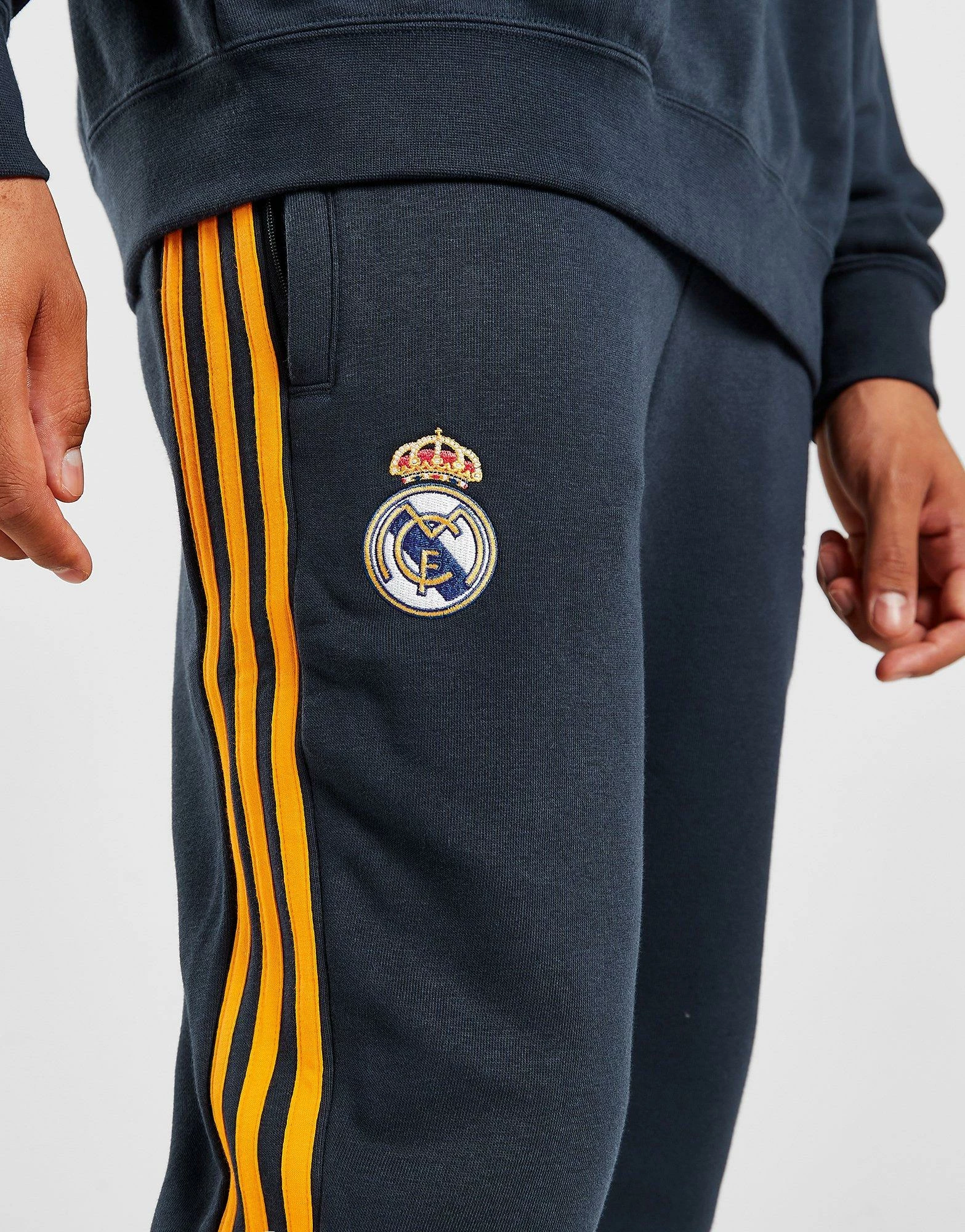 Back Los Blancos, from the sofa to the stadium, with these men’s Real Madrid DNA Joggers from adidas. In a Night Navy colourway, these slim fit joggers are cut from light, fleecey fabric that’s partly made from recycled poly. They feature an elasticated waistband for a relaxed fit, with zip-up side and back pockets for your essentials. They come in a mid-rise cut for a relaxed wear and are finished up with signature 3-Stripes, a Badge of Sport and the Real Madrid crest to the leg. Machine washable | Our model is 6’0″ and wears a size medium.