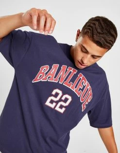 Stock up on the staples with this men’s College T-Shirt from Banlieue. In a Navy colourway, this loose-fit tee is cut from soft, durable cotton for lasting comfort. It features a thick, ribbed crew neckline and short sleeves with drop-shoulders for a laidback vibe. Finished up with varsity-style Banlieue branding up front and a downsized logo at the nape. Machine washable. | Our model is 5’11” with a 38″ chest and wears a size medium.