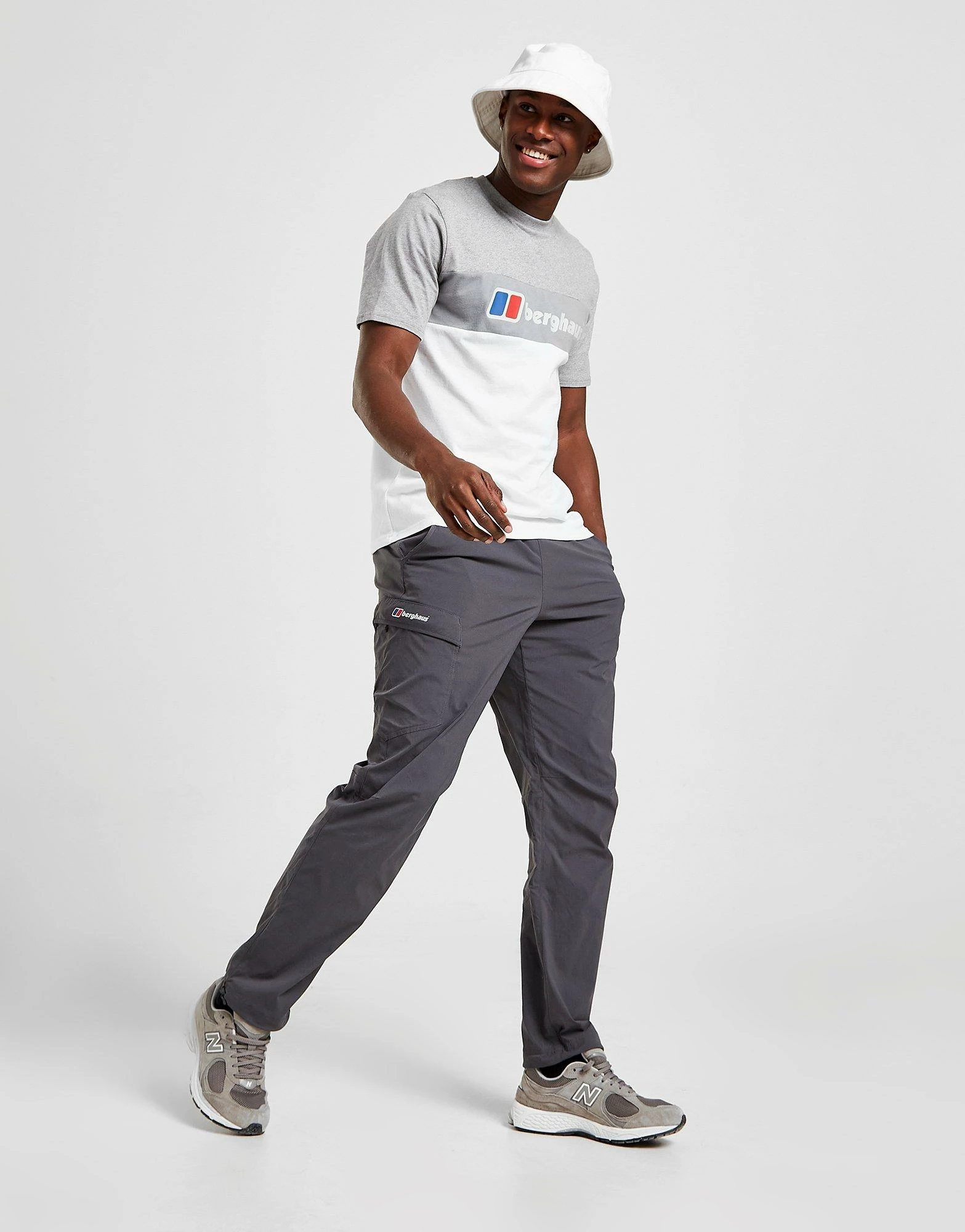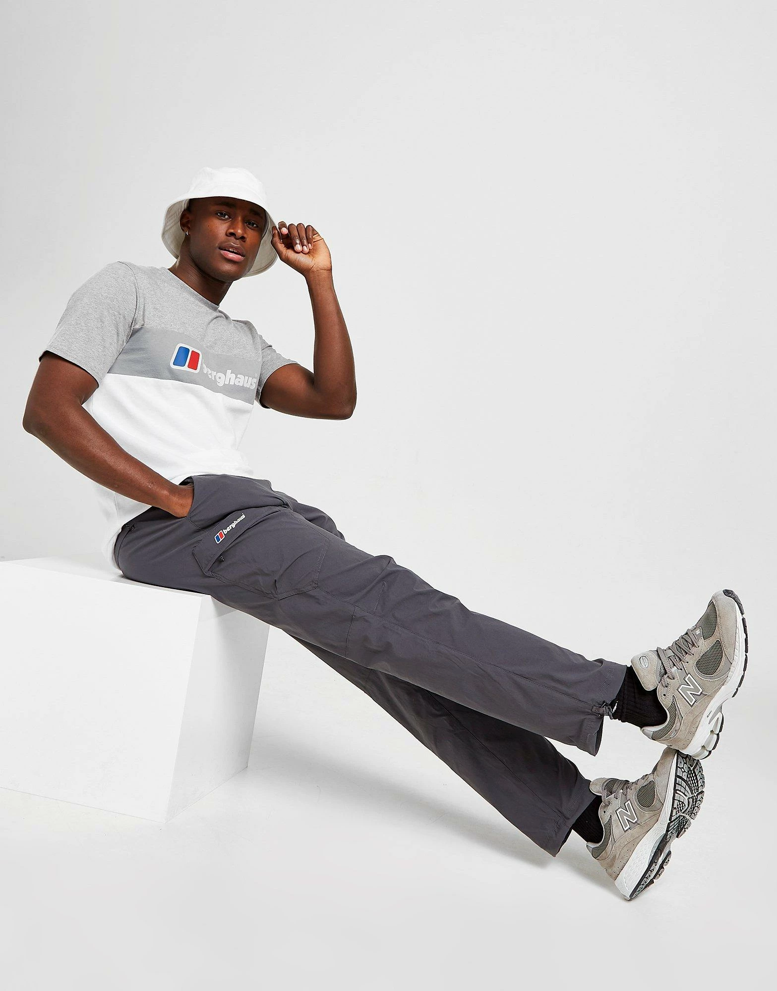 Add some outdoor-inspired style to your street-ready looks with these men’s Theran Pants from Berghaus. Coming in a Grey colourway, these regular-fit pants are made with smooth, hardwearing poly fabric for long-lasting comfort. Exclusive, they feature a drawcord waistband for a custom look, with full-length legs and adjsutable toggled cuffs to get the fit you want. With side pockets at the waist and a patch pocket on the leg for essential storage, these pants are signed off with signature Berghaus branding to the pocket flap. Machine washable. | Our model is 6’2″ and wears a size medium.