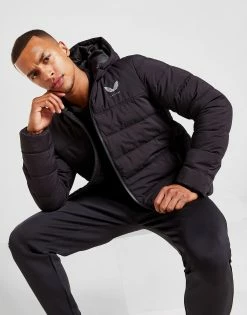 Gear up for colder days with this men’s Insulate Padded Jacket from Castore. Comin’ in a versatile black colourway, this jacket is made with ultra-smooth woven fabric for durable wear. It features a plush padding for lightweight insulation, with a full-zip closure and a fixed hood to amp up the coverage. It has a stretchy binding at the cuffs and hem to secure the shape, with front pockets to store the essentials. Finished up with classic Castore branding at the chest. | Our model is 6’1″ with a 40″ chest and wears a size medium.