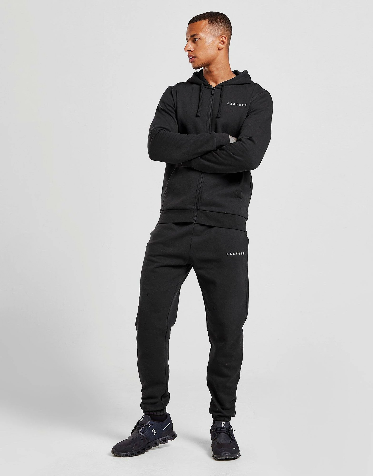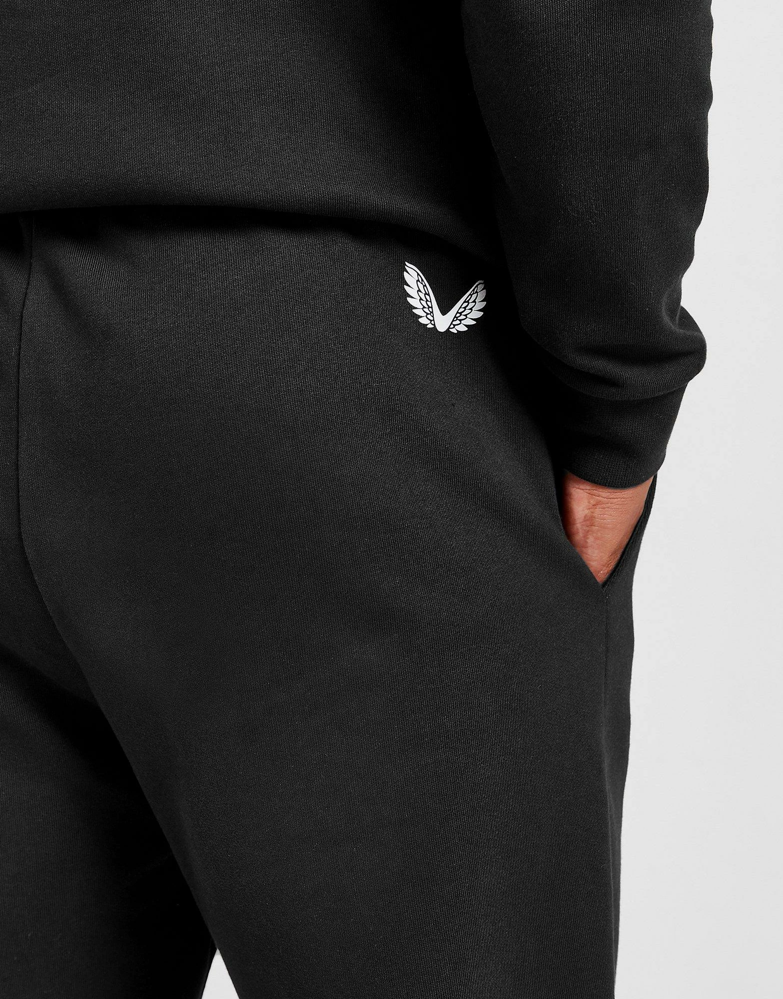 Keep comfy at the weekend with these men’s Linear Fleece Joggers from Castore. In a Black colourway, these standard fit joggers are cut from light, fleecey fabric for everyday comfort. They feature an elasticated, drawcord waistband for a relaxed, customisable wear, with side pockets for your essentials and ribbed cuffs to secure the fit. Finished up with Castore branding to the leg. Machine washable | Our model is 6’1″ and wears a size medium.