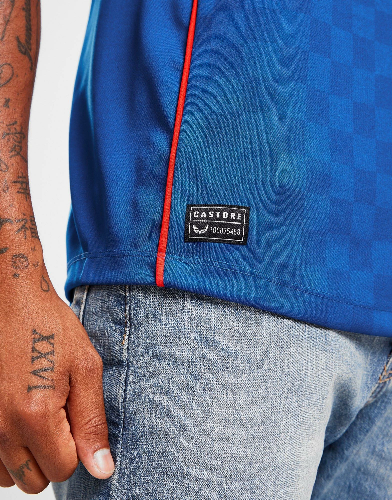Back the Gers all the way this season with this men’s Rangers FC 2022/23 Home Shirt from Castore. In the signature home Blue colourway with old-school inspired checkerboard patterning, this shirt is cut from light, breathable polyester fabric for cool comfort. Modelled off the pro shirt, it features a crew neck collar, short sleeves and ribbed trims, with mesh panelling under the arms for ventilation. It’s equipped with sweat-wicking tech to keep you dry and fresh and is finished up with the Castore logo and Rangers crest to the chest. Machine washable.