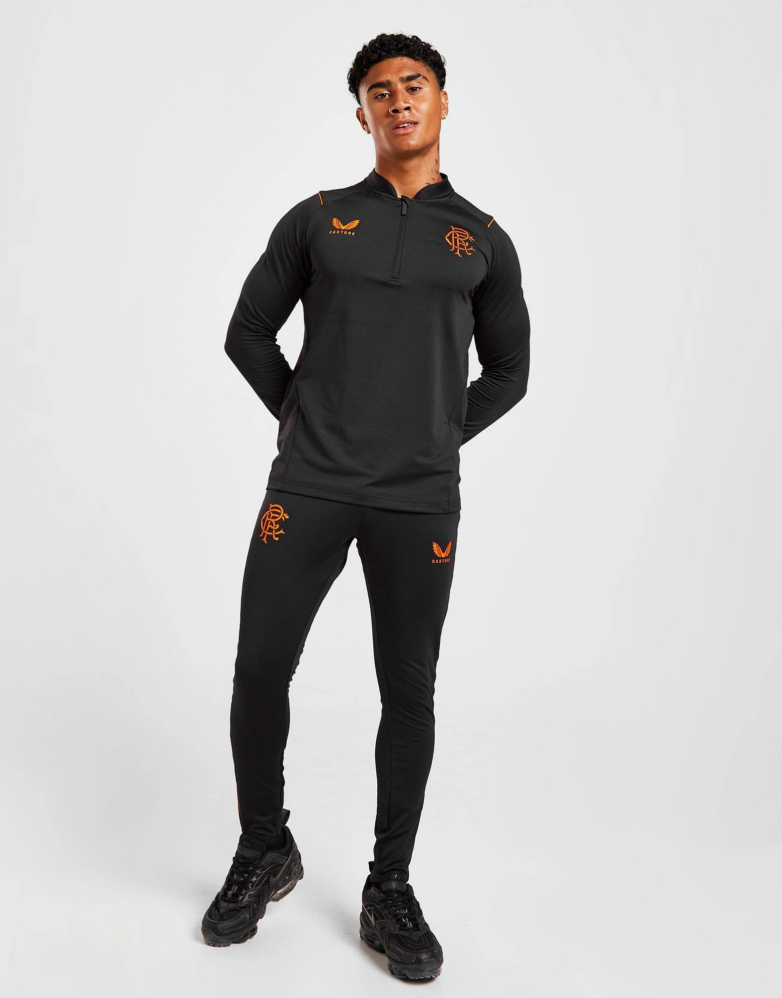 Show your support in complete comfort with these men’s Rangers FC 2022/23 Match Day Pants from Castore. Coming in a Black colourway, these pants are made with a sweat-wicking poly fabric that’s smooth and lightweight for easy when you’re training. They feature an elastic waistband with a drawcord for an adjustable fit and have a tapered leg for a streamlined look. Finished with the Castore logo and Rangers badge to thighs. Machine washable.