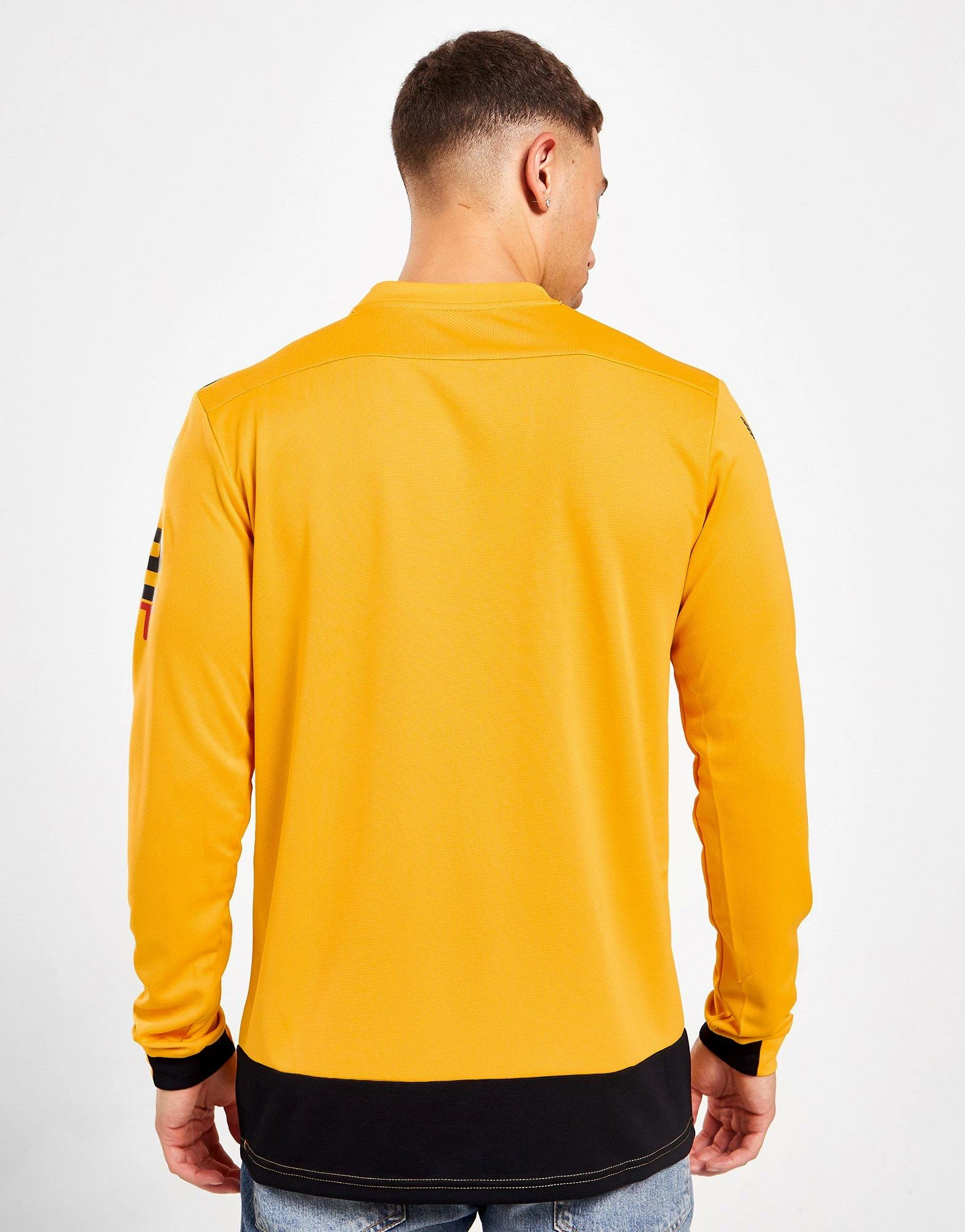 Get behind your side with this men’s Wolverhampton Wanderers FC 2022/23 Long Sleeve Home Shirt from Castore. In a Gold colourway, this standard-fit shirt is made from lightweight poly fabric that’s designed to keep you cool and comfy when the game heats up. It features a V-neckline and long sleeves for extra coverage. With black trims, this shirt is finished up with Castore branding and the iconic Wolves crest to the chest. Machine washable.
