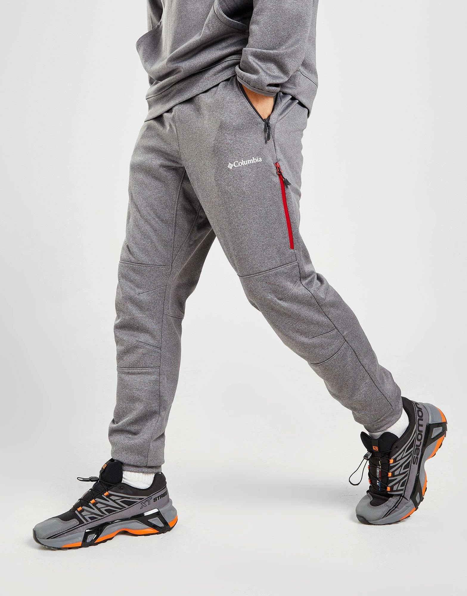 Level up your street-ready style with these men’s Wallowa Falls Track Pants from Columbia. Coming in a Grey Heather colourway, these standard-fit track pants are cut from smooth, lightweight poly fabric for lasting comfort. They have an elasticated waistband and elasticated cuffs for a secure fit, with zippered pockets to stash the essentials. With a woven panel around the waist, they’re finished up with classic Columbia branding at the thigh and reverse. Machine washable. | Our model is 5’11” and wears a size medium.