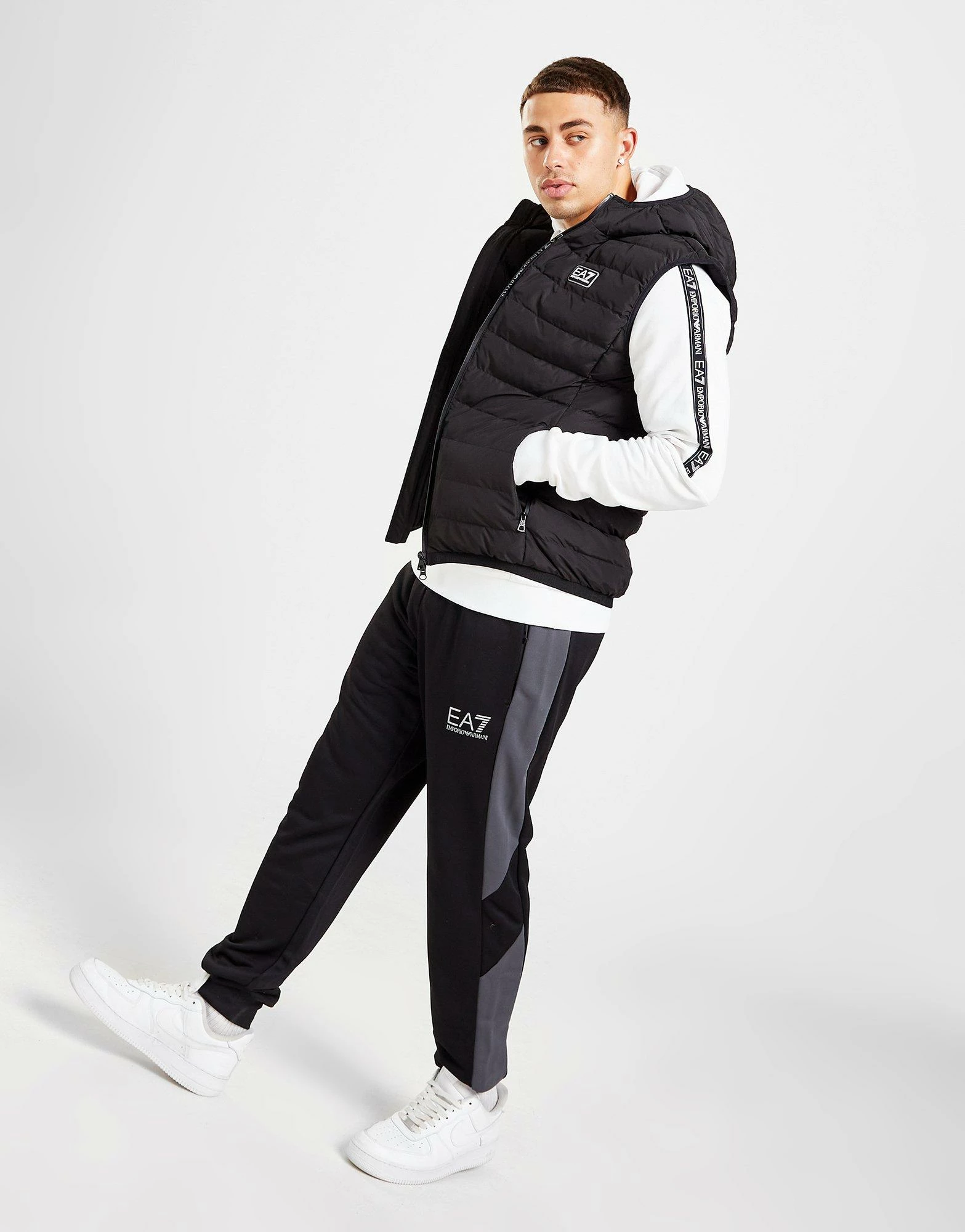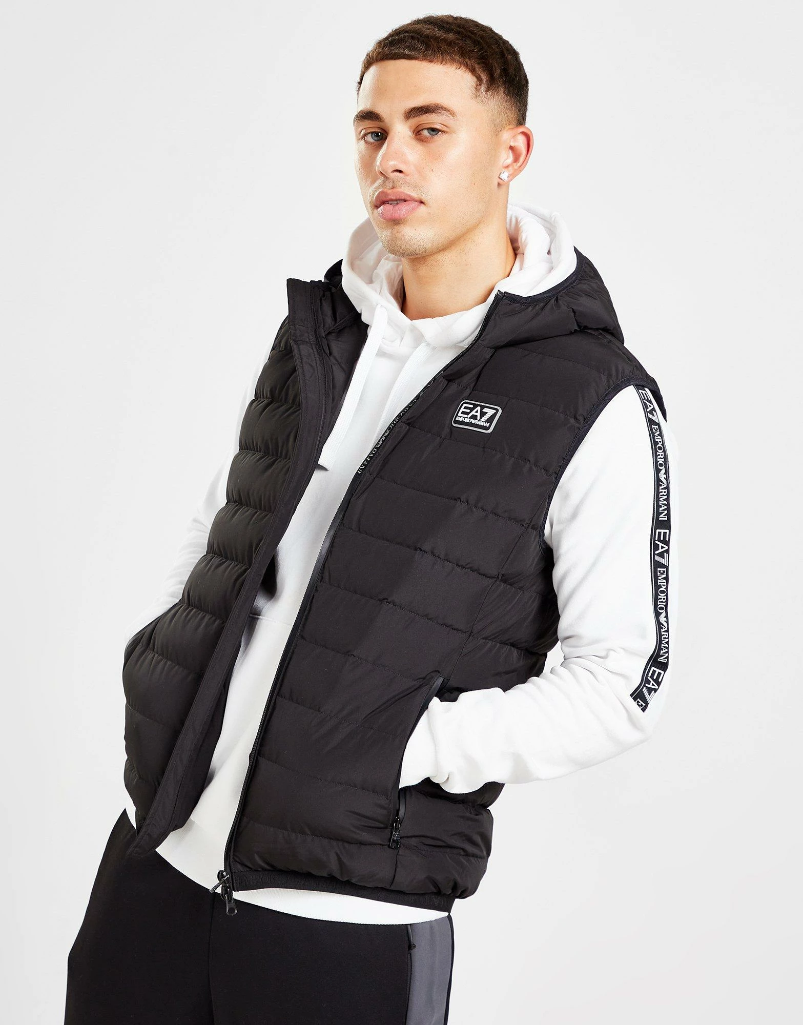 Level up your layers with this men’s Hooded Gilet from Emporio Armani EA7. Coming in a Black colourway, this exclusive layer is made with smooth, durable woven fabric for lasting wear. It has a plush, lightweight insulation to lock in the heat, and a full-length zipper with a fixed hood to amp up the coverage. With zip pockets for secure storage, it’s finished up with EA7 branding on the zipper and at the chest. | Our model is 5’11” with a 38″ chest and wears a size medium.