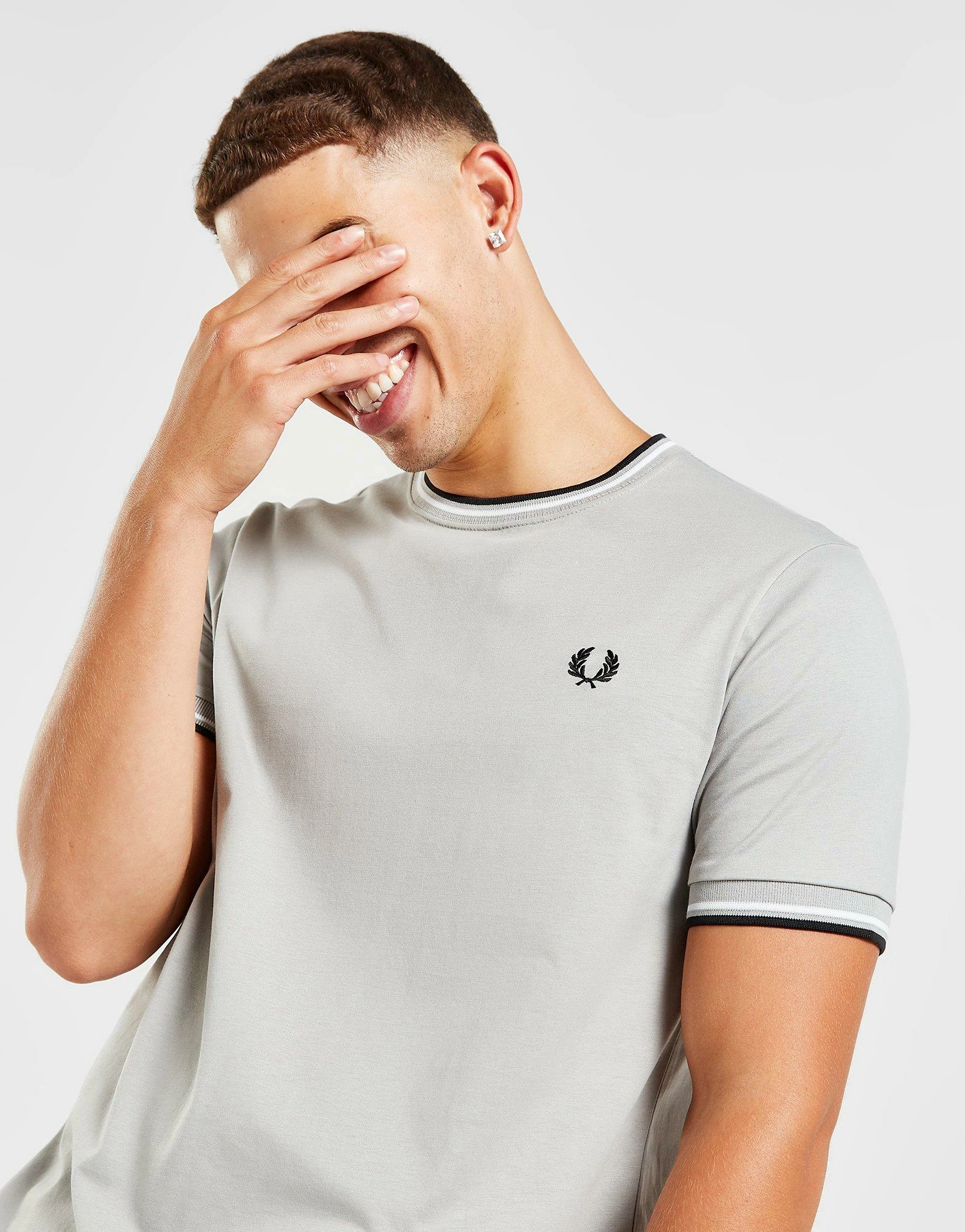 Upgrade your weekend ‘fits with this men’s Twin Tipped T-Shirt from Fred Perry. Exclusive, this regular-fit tee is made from cotton fabric that’s light and soft for all-day comfort. In a Grey colourway, it features a crew neckline with short sleeves for a classic cut and is signed off with the famous Fred Perry Laurel Wreath to the chest. Machine washable. | Our model is 5’11” with a 38″ chest and wears a size medium.