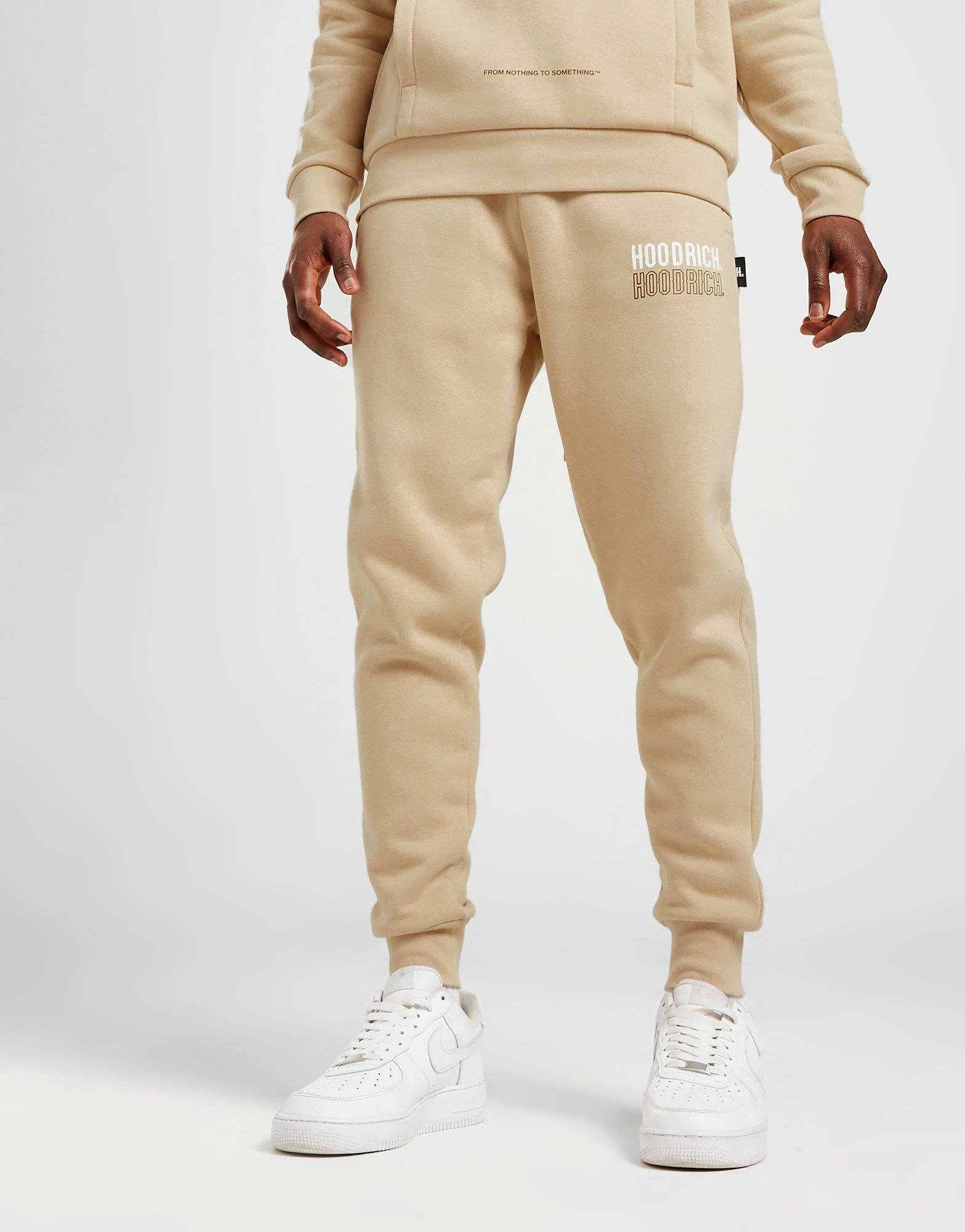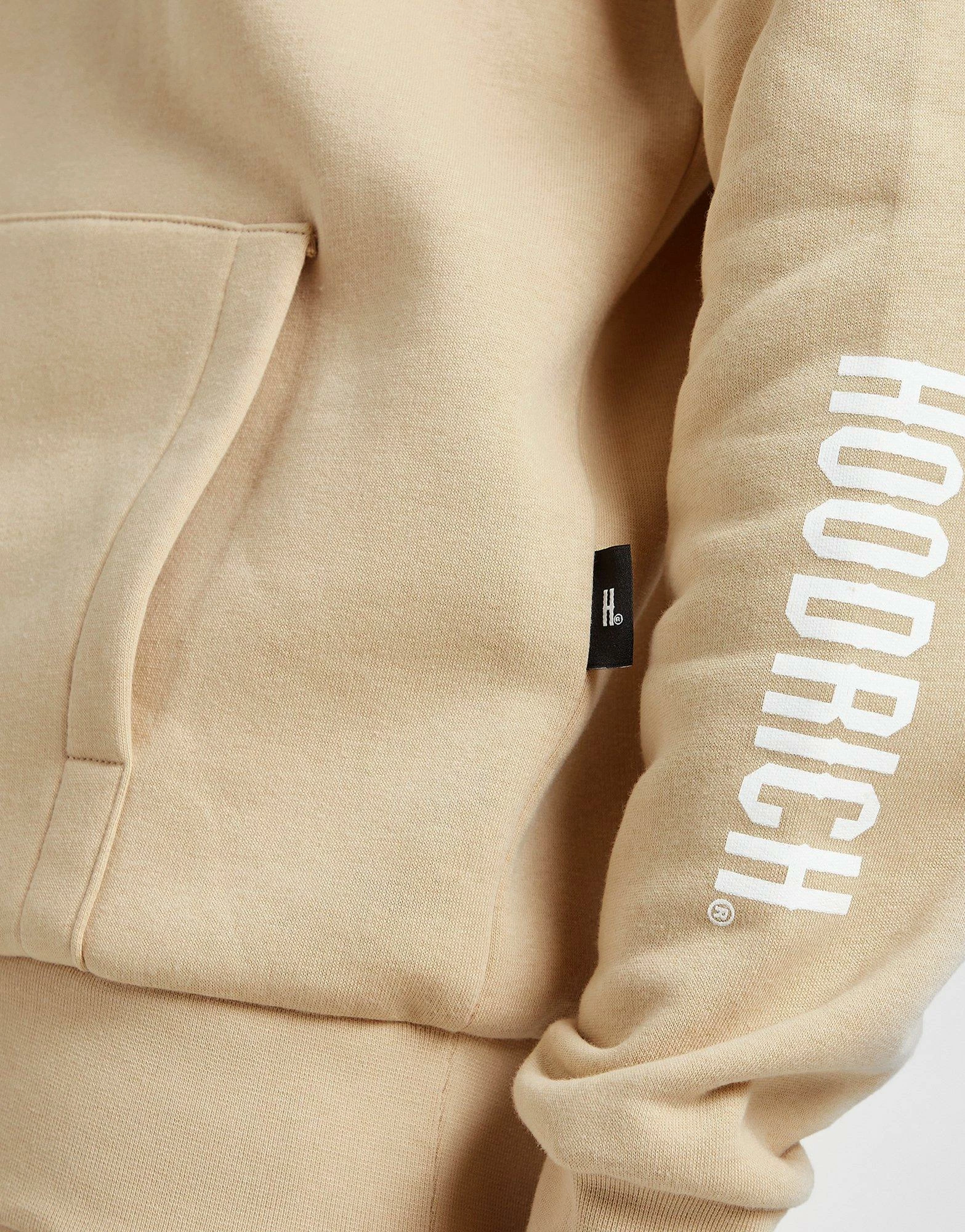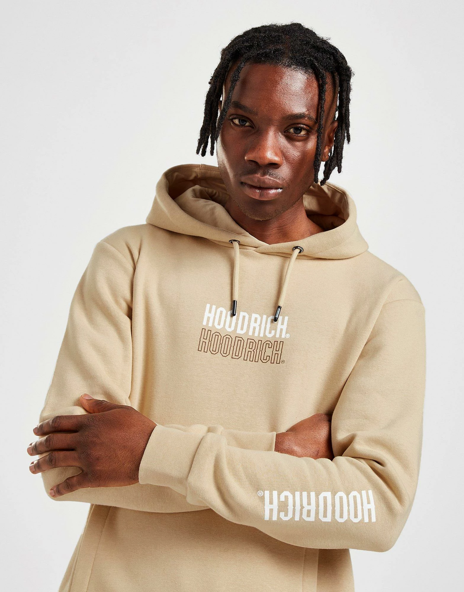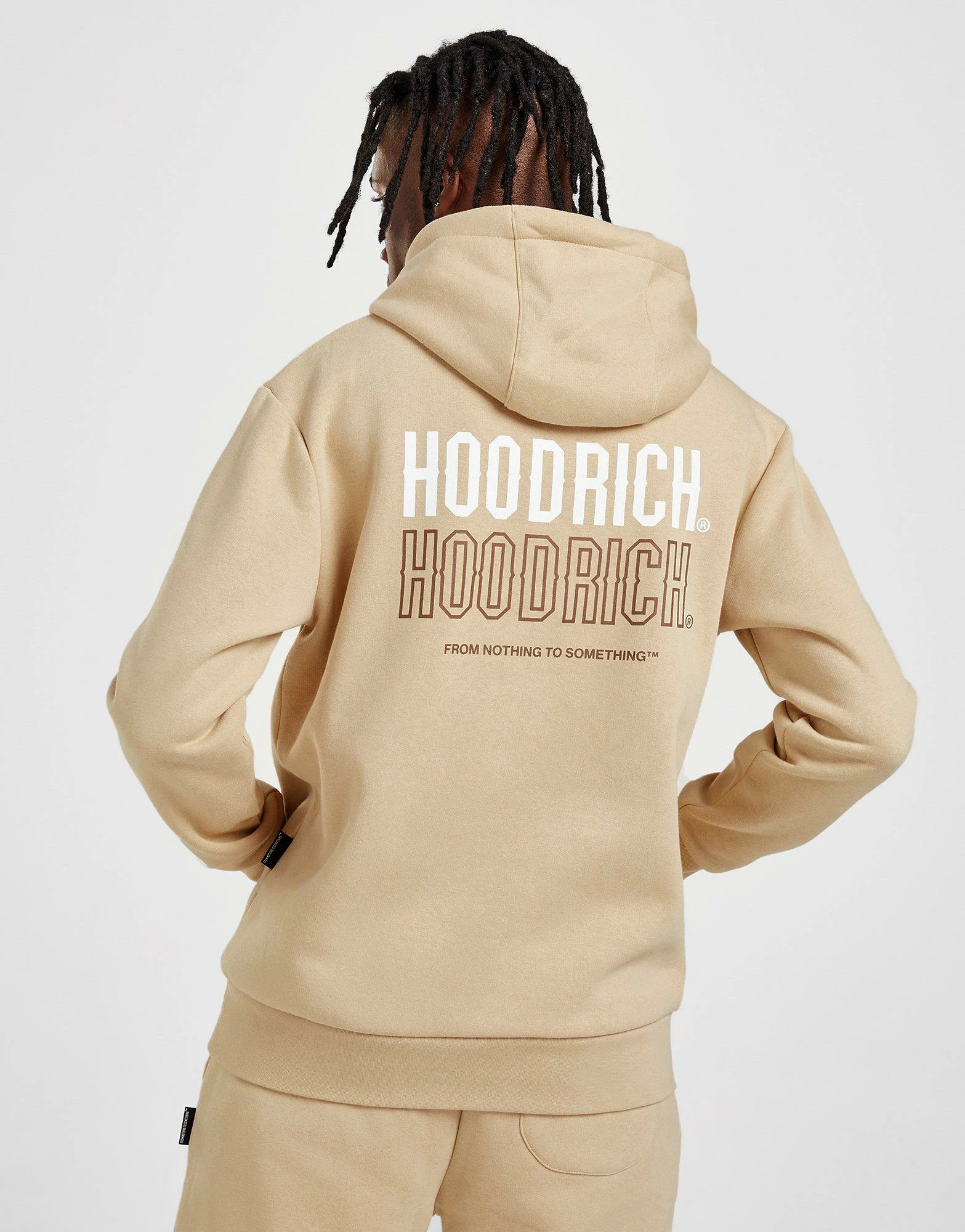 Update your off-duty looks with this men’s Overbrand Tracksuit from Hoodrich. Coming in a Stone colourway, this street-ready set is made with soft, thick-cut cotton fleece for next-level comfort. It features a long-sleeve pullover with an adjustable hood for full coverage, and a kangaroo pouch up front. The matching joggers have an elasticated waistband with a drawcord for a custom fit, while stretchhy ribbed cuffs secure the fit. It has small zip pockets on the inside sleeve and leg, and is finished up with bold Hoodrich branding throughout. Machine washable. | Our model is 6’0″ with a 35″ chest and wears a size medium.