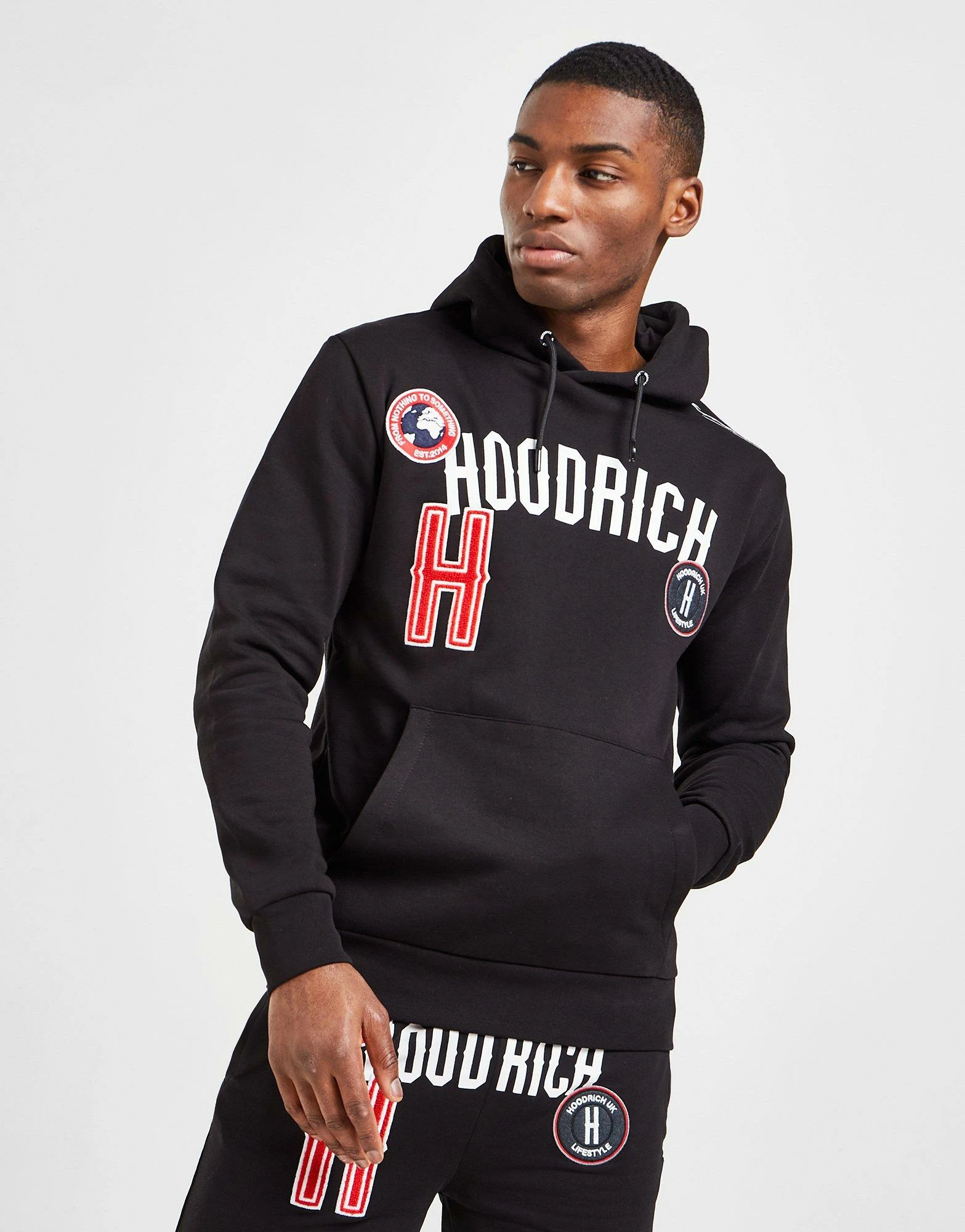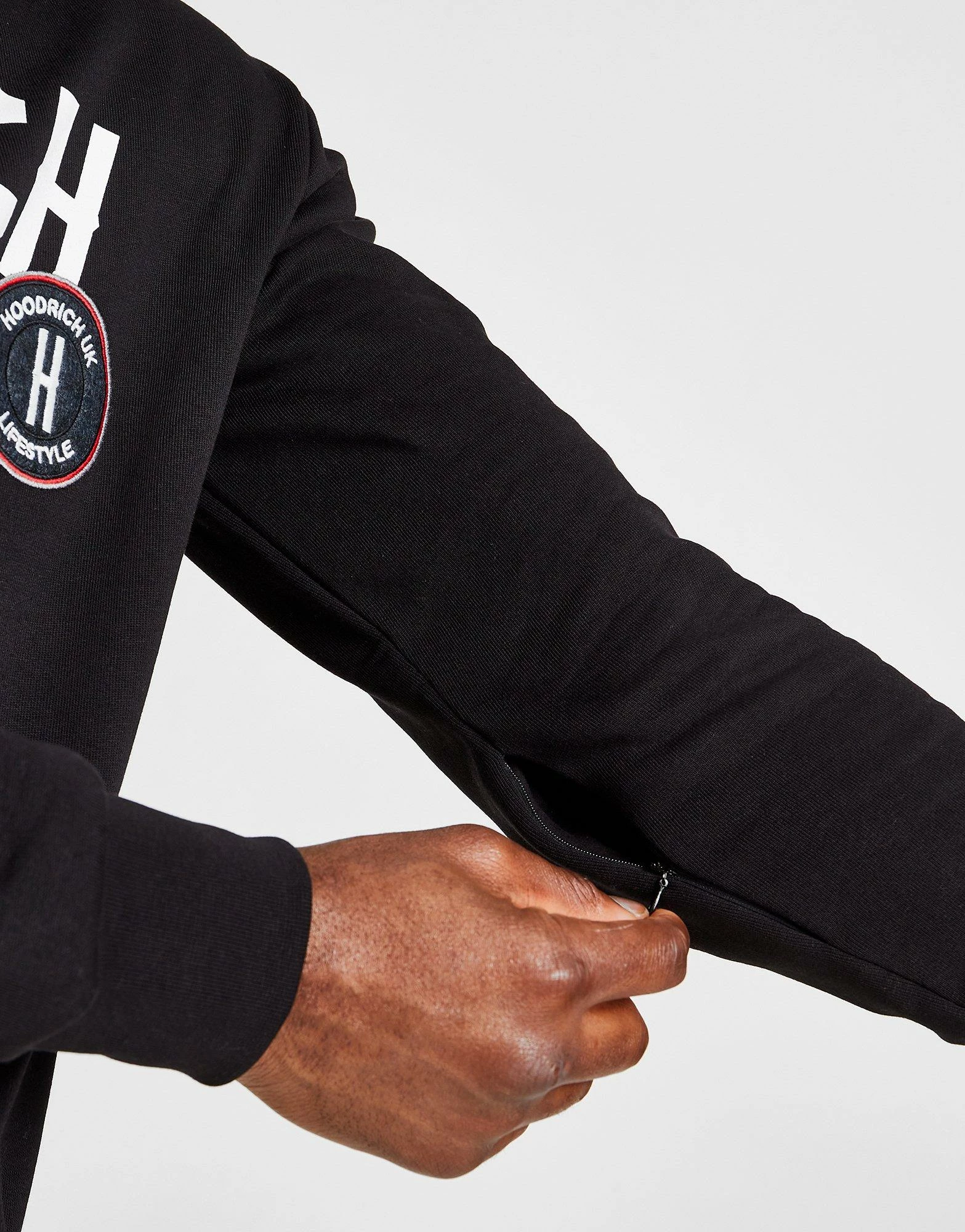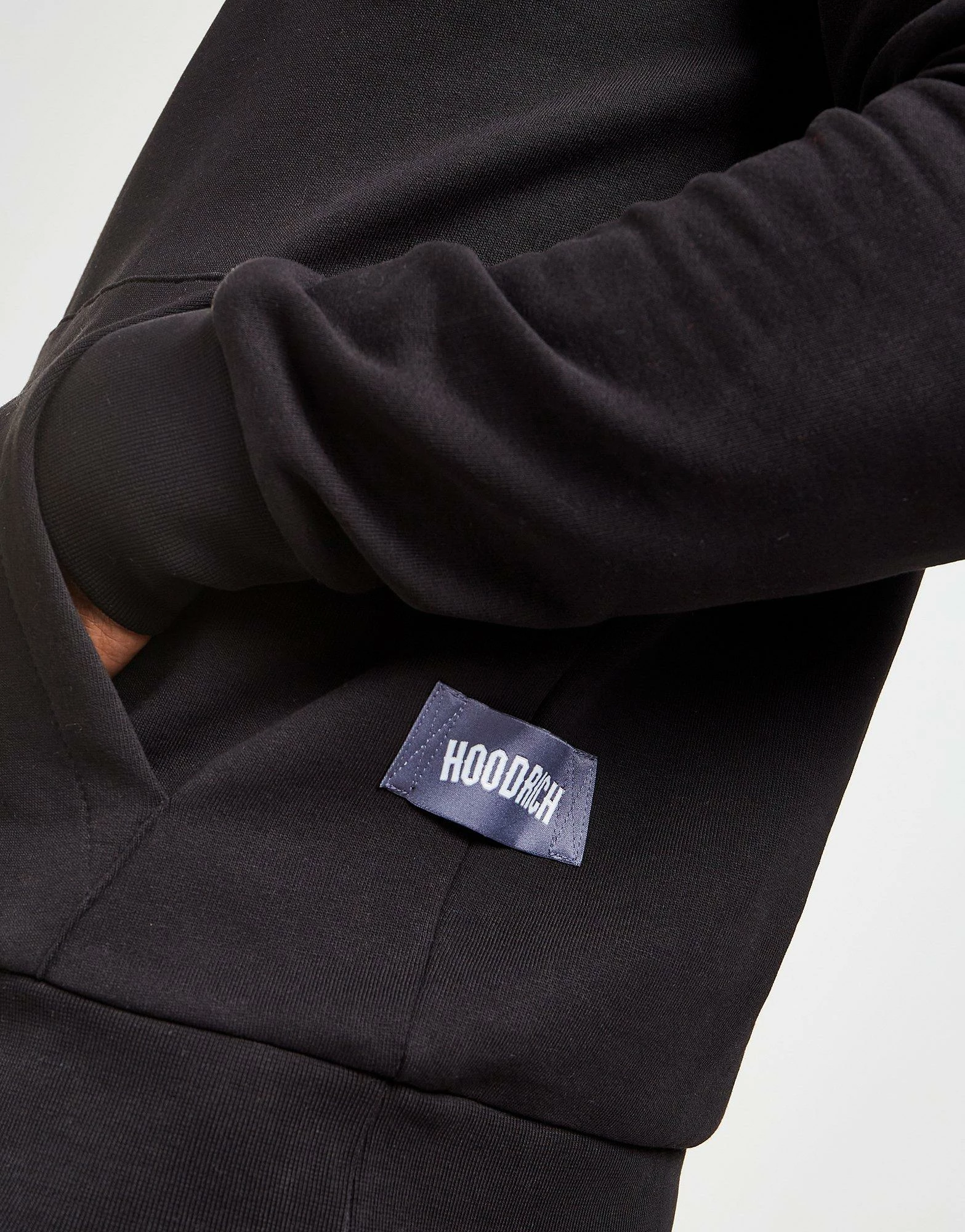 Layer up in street-ready style with this men’s Pacific Hoodie from Hoodrich. In a Black colourway, this hoodie is made from soft, fleecey cotton fabric for everyday comfort. It comes in a classic pullover design and features an adjustable hood for coverage, long sleeves and ribbed trims for a snug, secure fit and a kangaroo pouch for easy storage. With a signature zip-up pocket to the sleeve, this hoodie is finished up with Hoodrich branding to the chest. Machine washable | Our model is 6’2″ with a 38″ chest and wears a size medium.