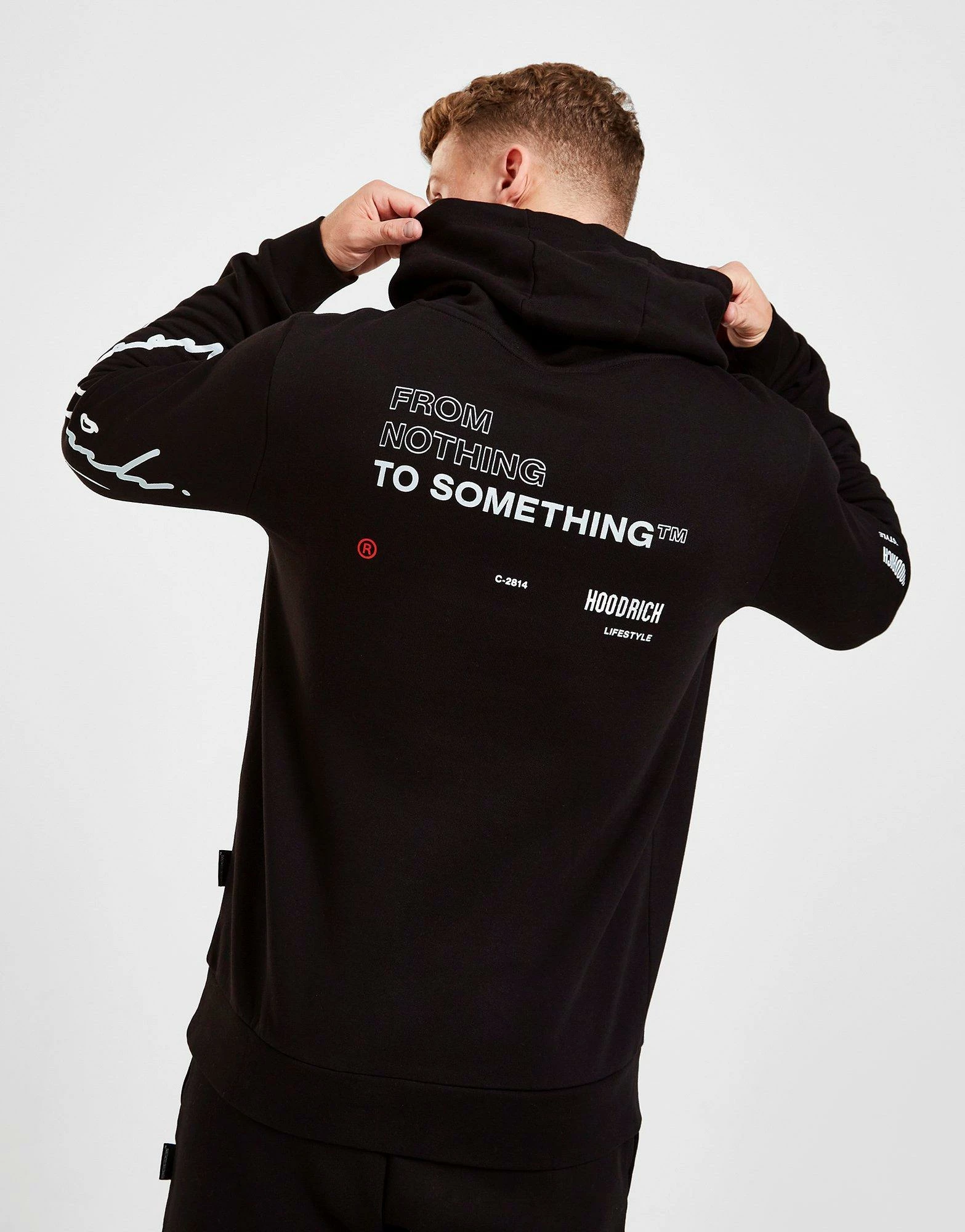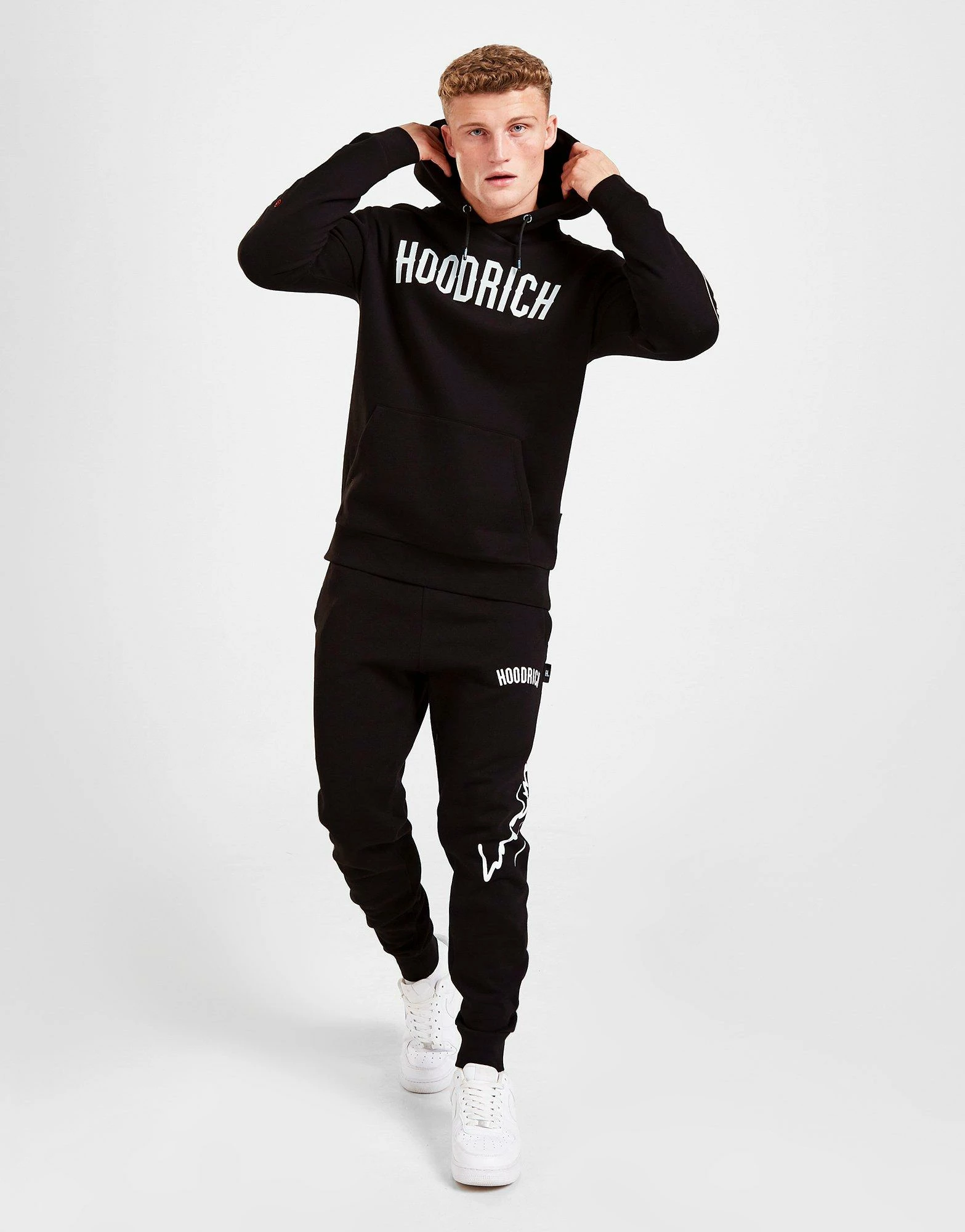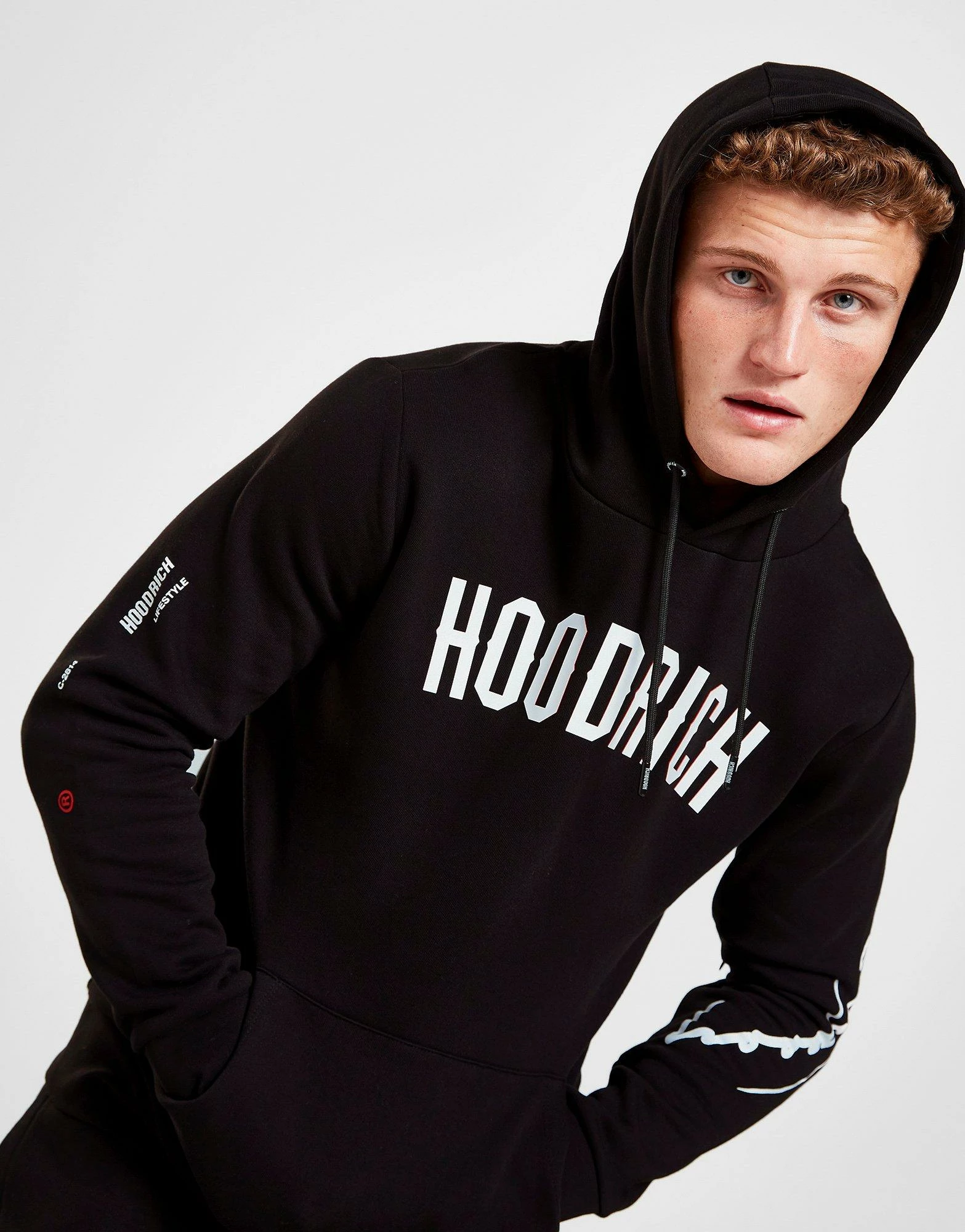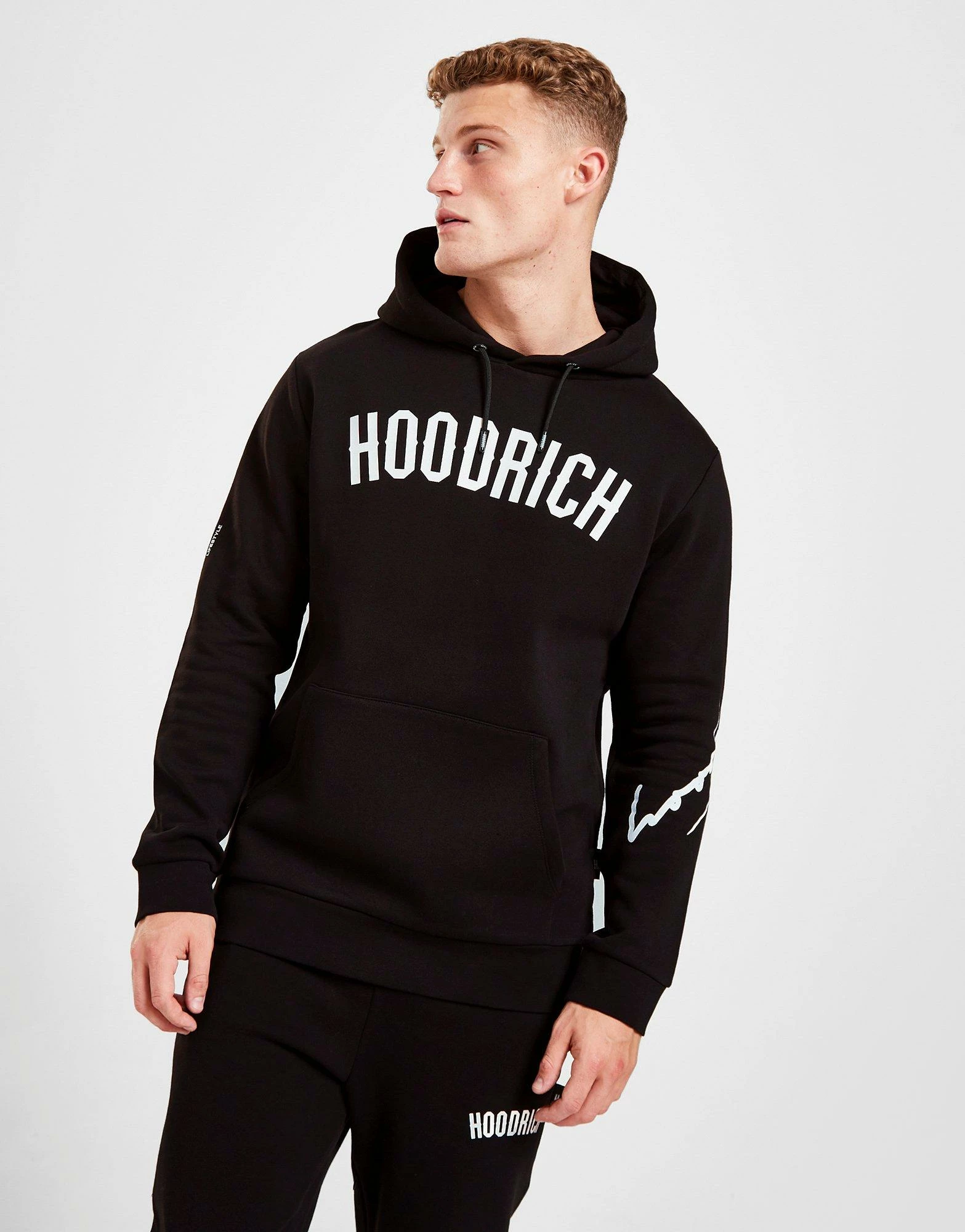Level up your street-ready styles with this men’s Tycoon Hoodie from Hoodrich. Comin’ in a Black colourway, this standard-fit hoodie is made with thick cotton-blend fleece for essential comfort. It has long sleeves and an adjustable hood for custom coverage, while stretchy ribbed trims secure the shape. It has a front kangaroo pouch and a zip pocket on the sleeve to stash your gear, and is finished up with a bold Hoodrich logo across the chest and classic branding throughout. Machine washable. | Our model is 6’0″ with a 37″ chest and wears a size medium.
