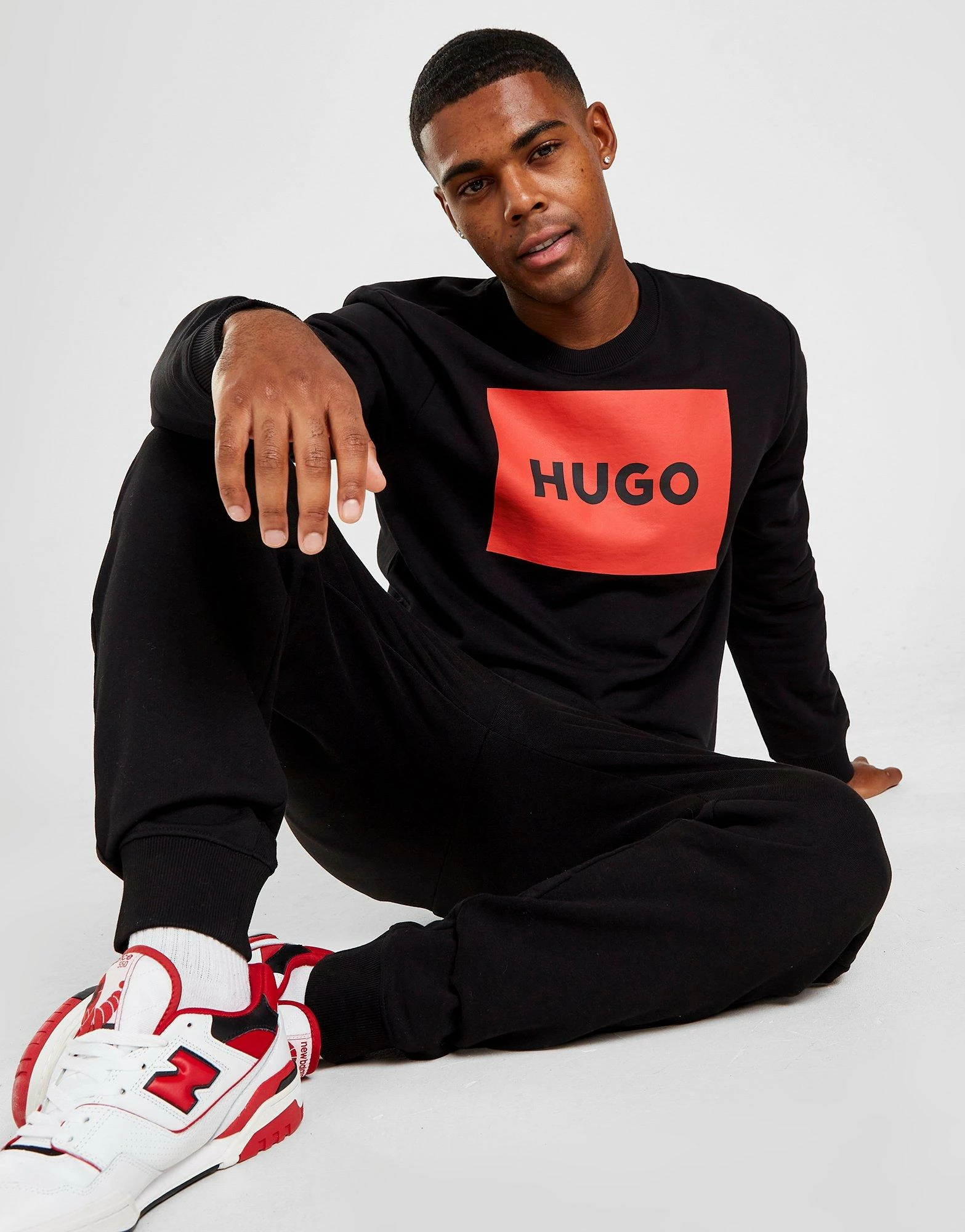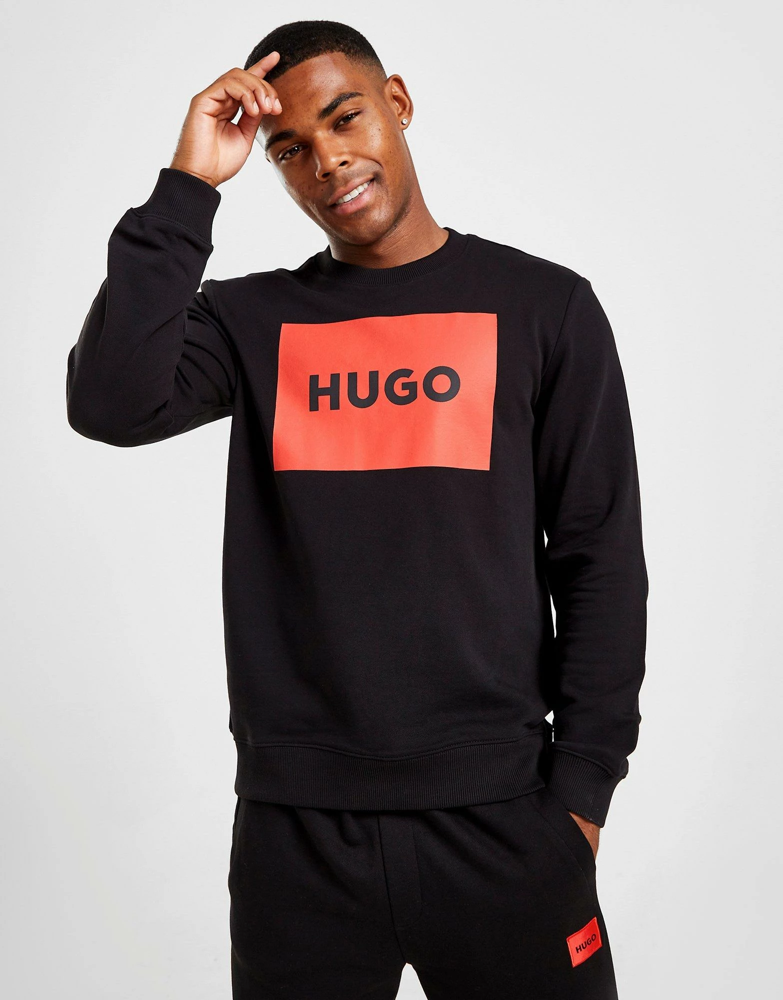 Keep it premium this season in this men’s Duragol Square Sweatshirt from HUGO. In a Black colourway, this weekend essential is made from supersoft yet durable cotton fabric for standout comfort. Cut with a classic crew neckline and ribbed detailing throughout, this jumper is finished off with a bold red square and signature HUGO branding to the chest. Machine washable. | Our model is 6’0″ with a 38.5″ chest and wears a size medium.