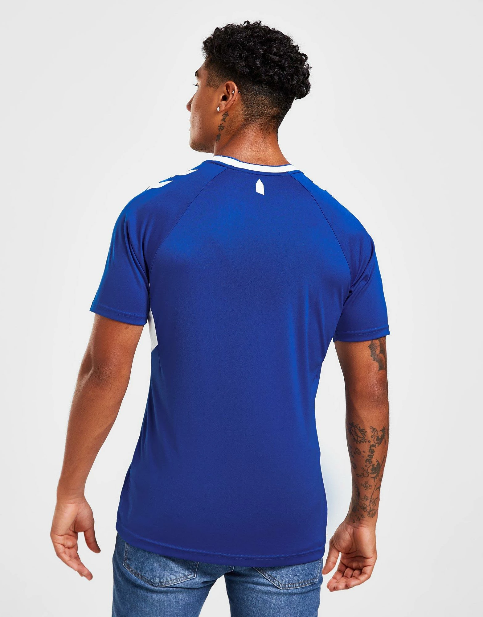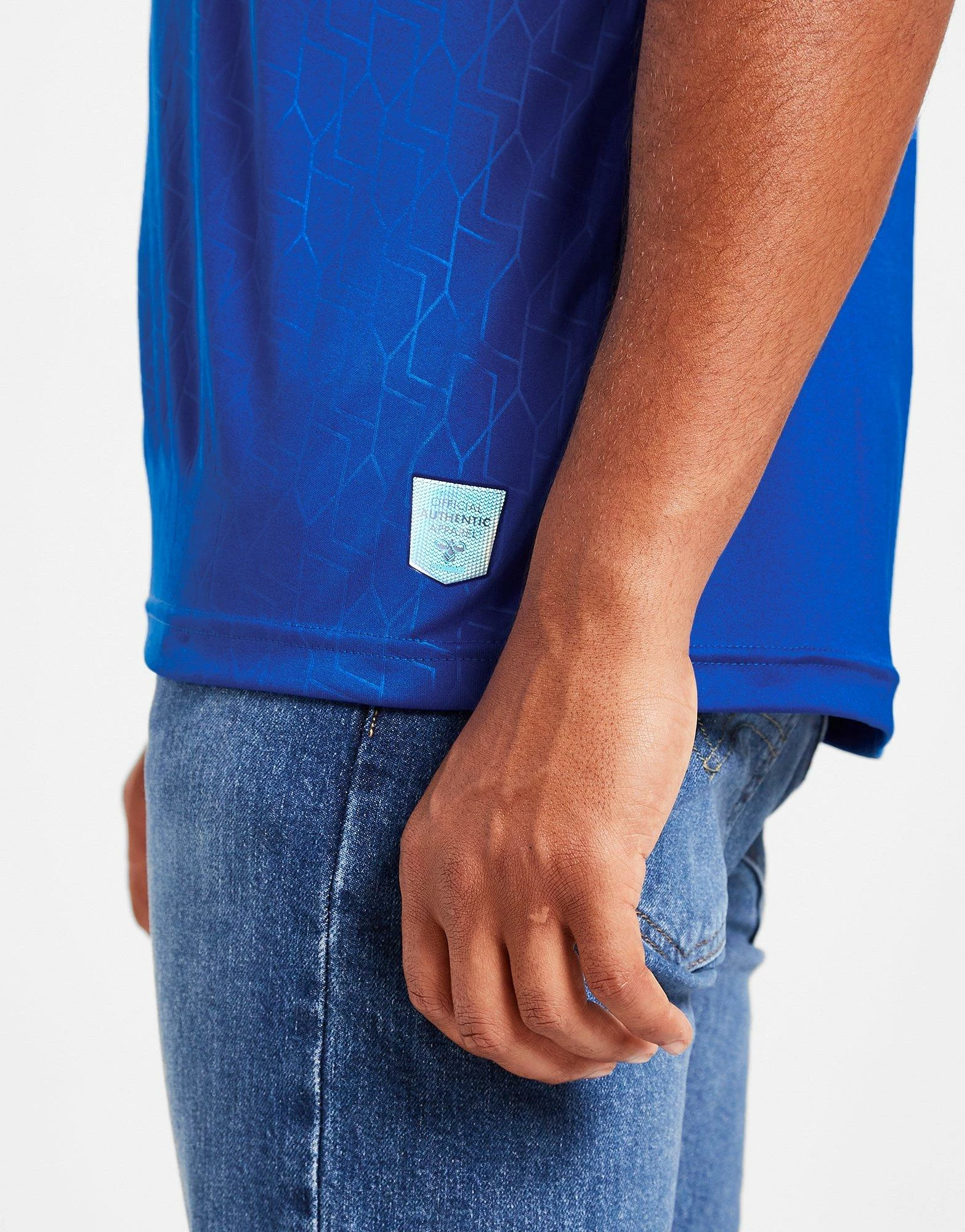 Cheer the boys on from Goodison Park in this men’s Everton FC 2022/23 Home Shirt from Hummel. In the classic blue and white colourway, this regular-fit shirt is made from lightweight, smooth poly fabric for cool comfort. The design features a ribbed crew neckline and short raglan sleeves for an unrestricted wear. With a tonal geometrical tower print, this shirt is finished off with a signature Hummel logo and the legendary Toffees crest to the chest. Machine washable.