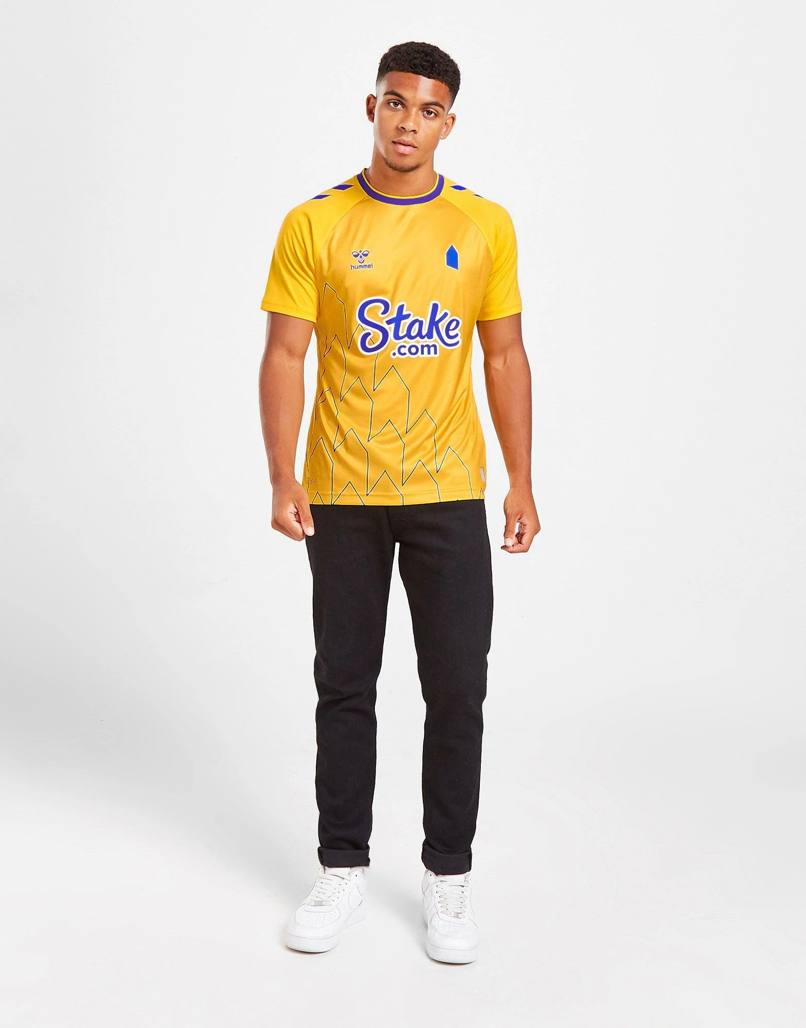 Get behind your side this season with this men’s Everton FC 2022/23 Third Shirt from Hummel. In a Yellow colourway, this standard-fit shirt is made from ECO8 fabric, which uses 100% recycled plastic bottles. It features a crew neckline and short raglan sleeves for unrestricted movement on the pitch. With contrasting trims, this shirt is finished up with signature Hummel branding and a silhouette of Rupert’s tower to replace the team crest to the chest. Machine washable.