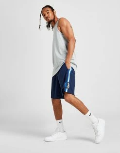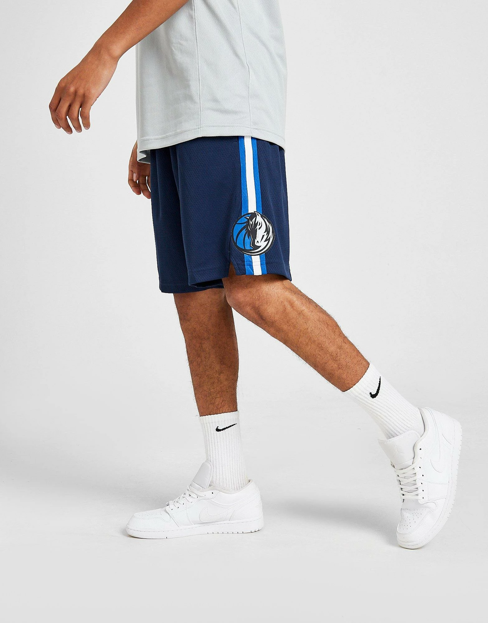 Freshen up your on-court look in these men’s NBA Dallas Mavericks Statement Edition Shorts from Jordan. In a College Navy colourway, these standard-fit shorts are made from ultra-lightweight double-knit poly-mesh fabric for a breathable wear. With built-in Dri-FIT tech to wick away sweat, they feature side pockets and an elasticated waistband with drawcord adjustments for custom comfort. With Royal Blue and White stripes to the sides, these shorts are finished up with an iconic Jumpman logo and the Mavericks crest. Machine washable. | Our model is 6’0″ and wears a size medium.