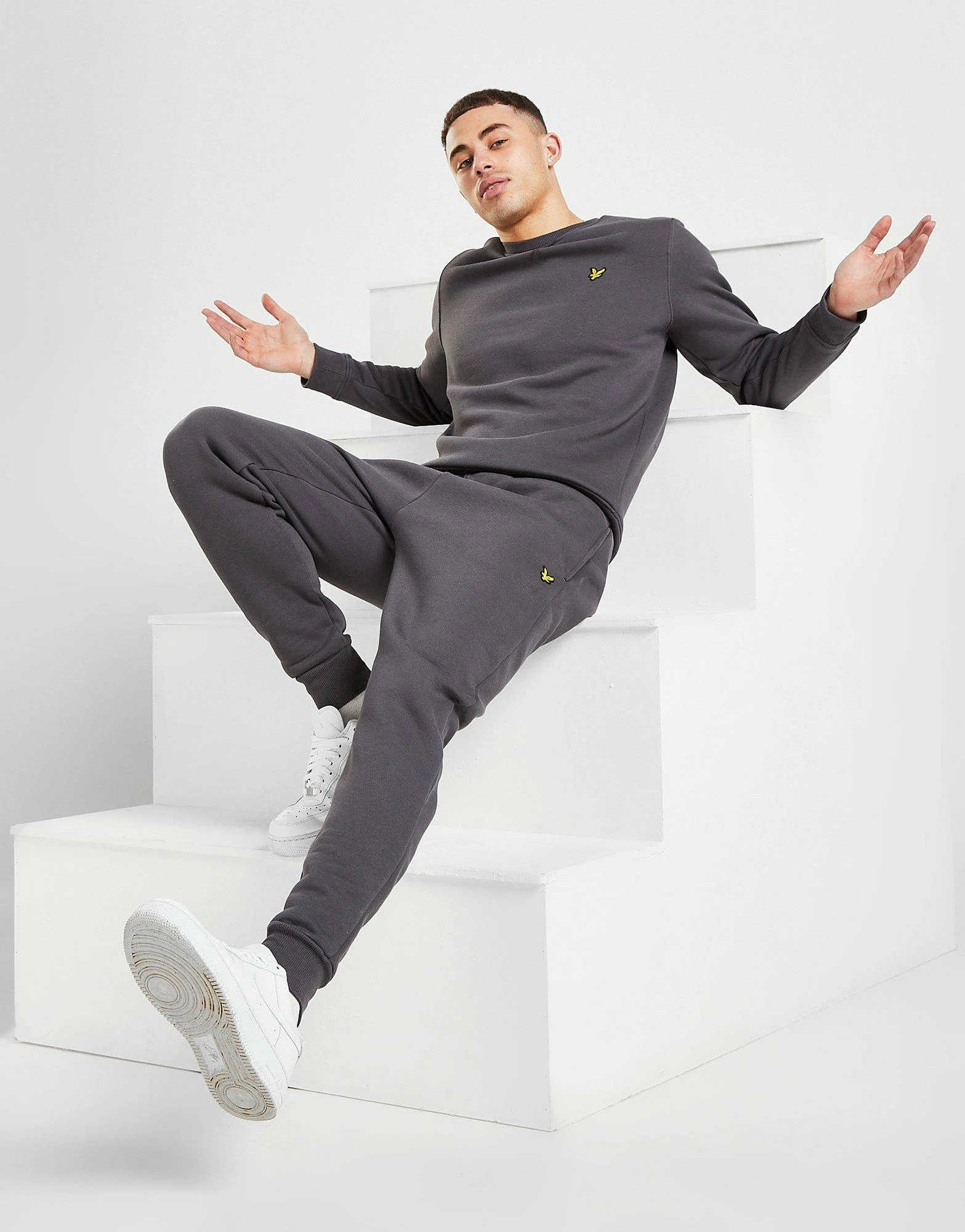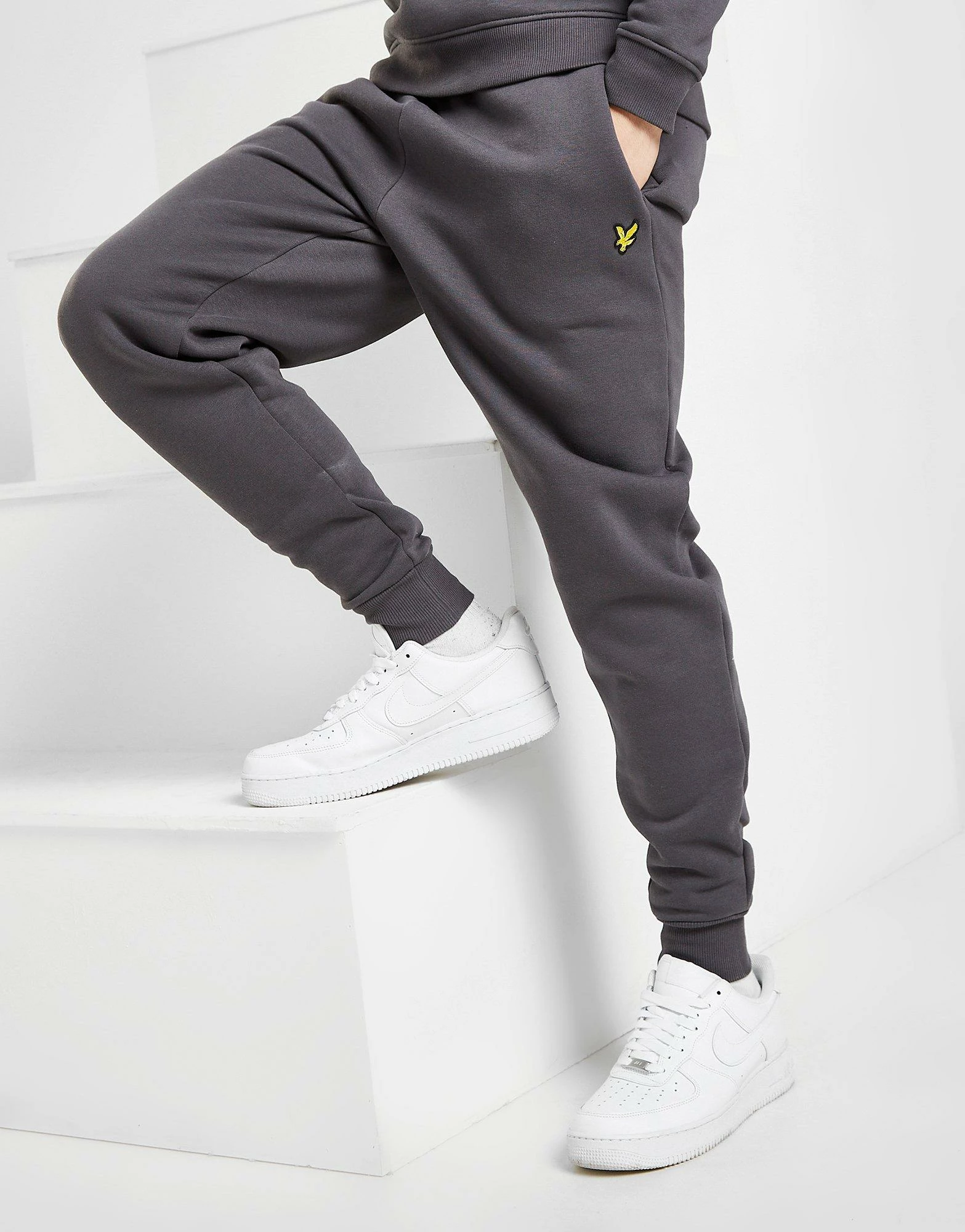 Keep comfy in these men’s Fleece Joggers from Lyle & Scott. Exclusive, these regular-fit joggers are made from soft cotton fleece in a Graphite colourway. They feature ribbed cuffs and an elasticated waistband for a custom fit. With two side pockets, these jogger are finished with Lyle & Scott’s signature Eagle logo embroidered to the thigh. Machine washable. | Our model is 5’11” and wears a size medium.