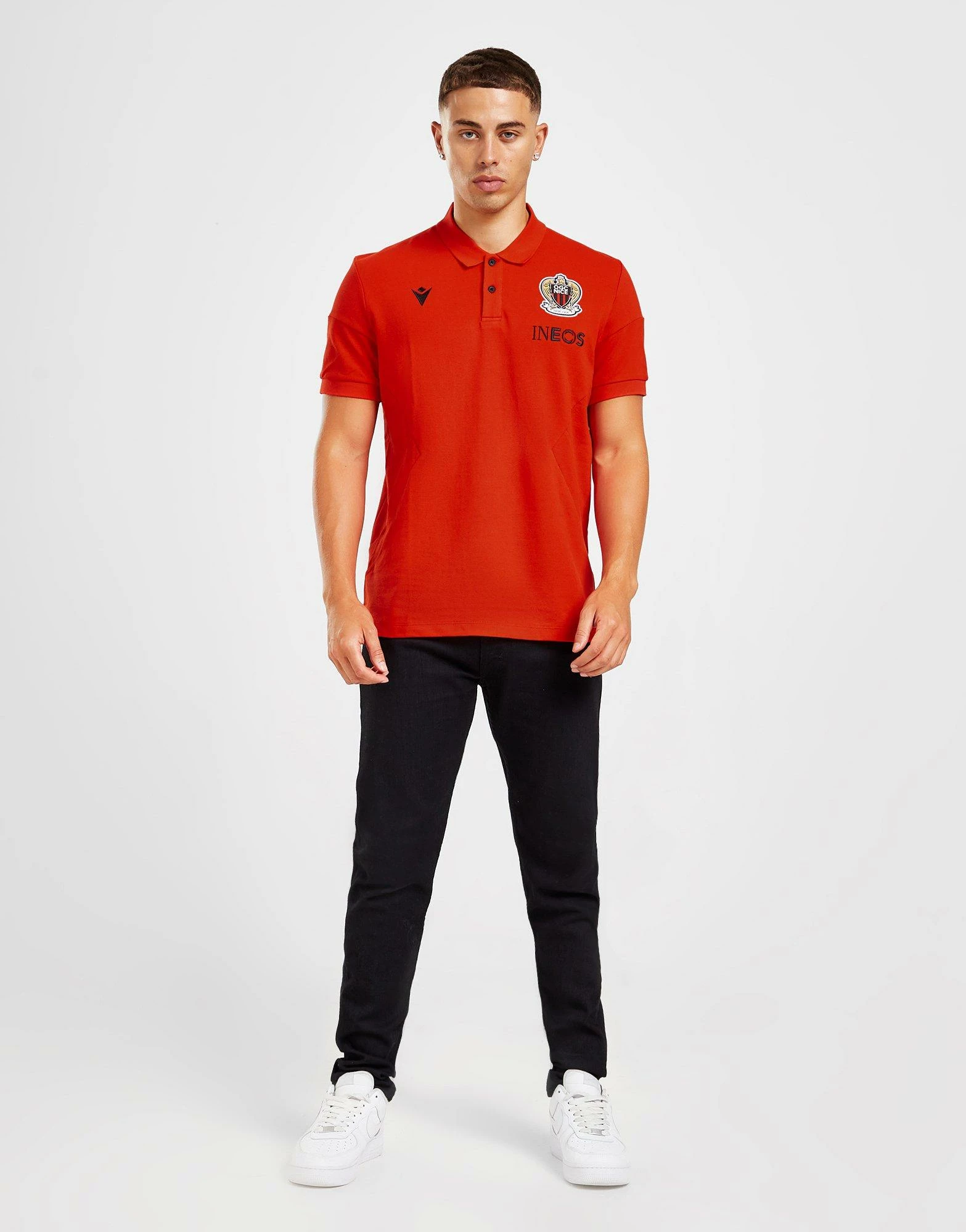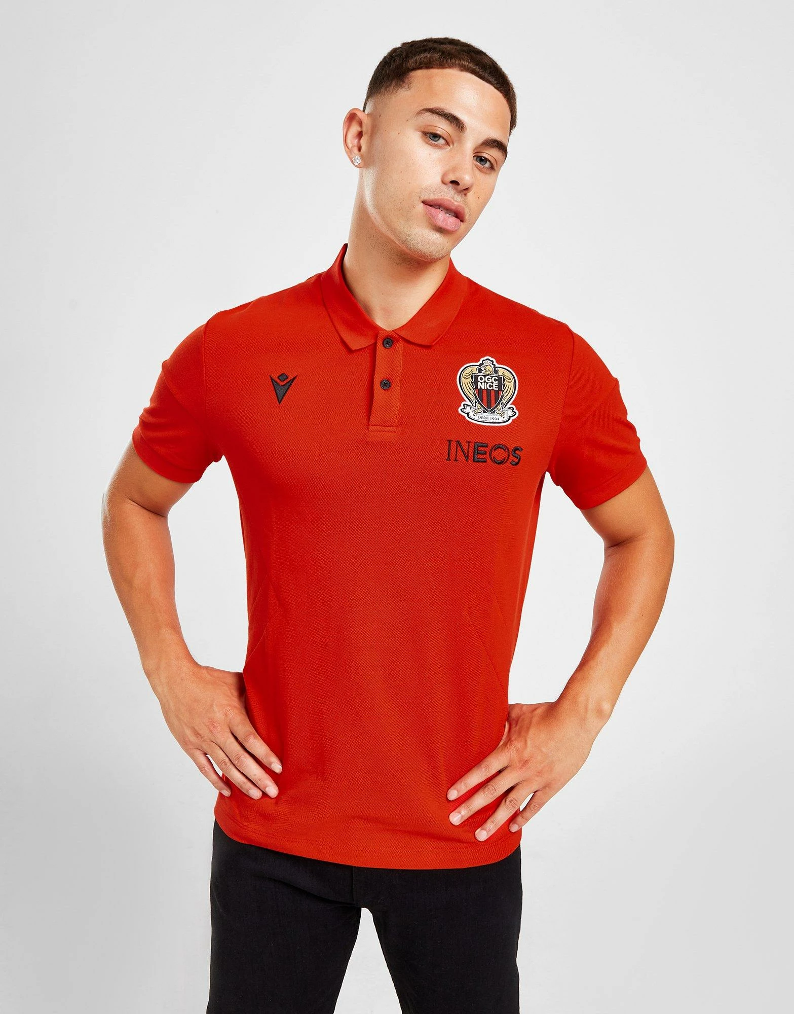 Dial up your support in this men’s OGC Nice Short Sleeve Polo Shirt from Macron. Coming in a Red colourway, this polo shirt is cut from soft, breathable cotton for lasting comfort. It features a sharp spread collar and a two button placket for a classic cut, and short sleeves with ribbed cuffs. Finished up with a Macron logo to the chest, and the iconic OGC Nice crest to sign off. Machine washable. | Our model iss 5’11” with a 38″ chest and wears a size medium.
