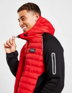 Zip up in this men’s Alameda Hybrid Jacket from McKenzie. Coming in a Red and Black colourway, this standard-fit jacket is made with ultra-smooth poly fabric for lasting wear. It has a woven panel on the torso with a lightweight recycled synthetic fill to lock in the heat, and features a full-length zipper with an adjustable hood for complete coverage. With elasticated trims to secure the shape and zip pockets throughout, it’s finished up with McKenzie branding to the chest. Machine washable. | Our model is 5’11” with a 38″ chest and wears a size medium.