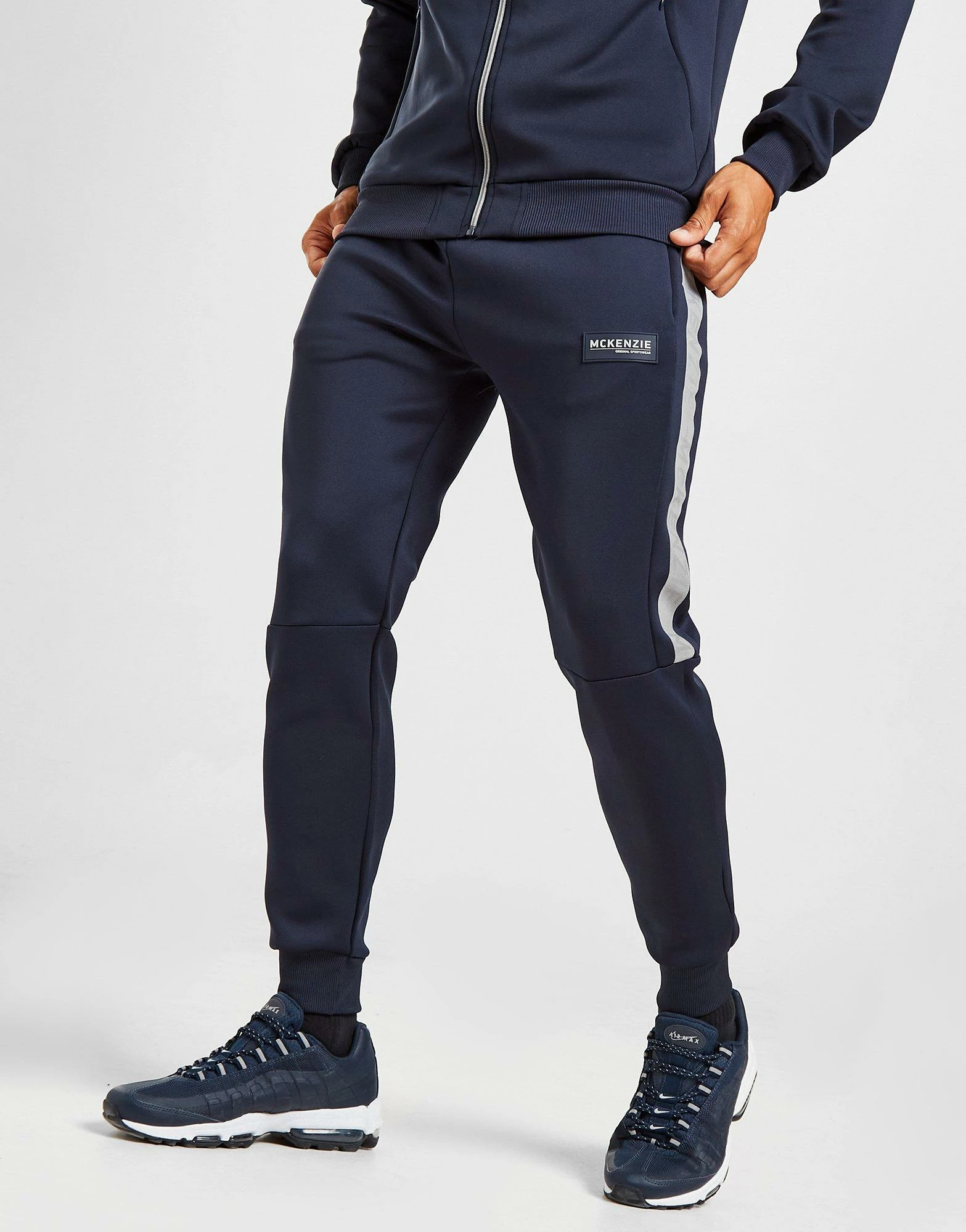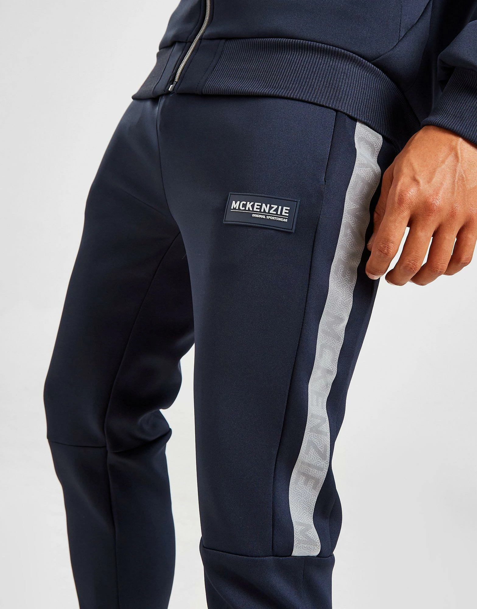 Freshen up your off-duty ‘fits with these men’s Dempsey Poly Track Pants from McKenzie. Comin’ in a Night Sky colourway, these standard-fit track pants are made with super-smooth, stretchy poly fabric for essential comfort. They have an elasticated waistband with an adjustable drawcord to customise the fit, and tapered legs with cuffed ankles for a secure, streamlined fit. With side pockets on the waist for storage, they’re finished up with McKenzie taping down the side, and a signature logo on the thigh. Machine washable. | Our model is 6’0″ and wears a size medium.