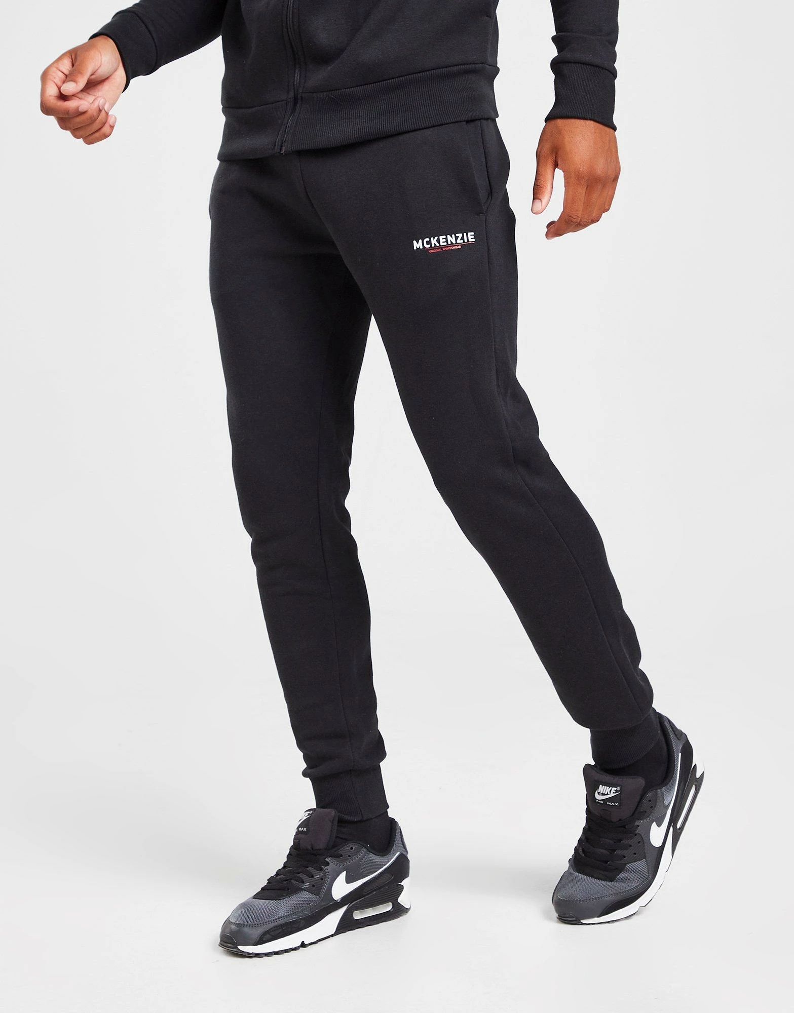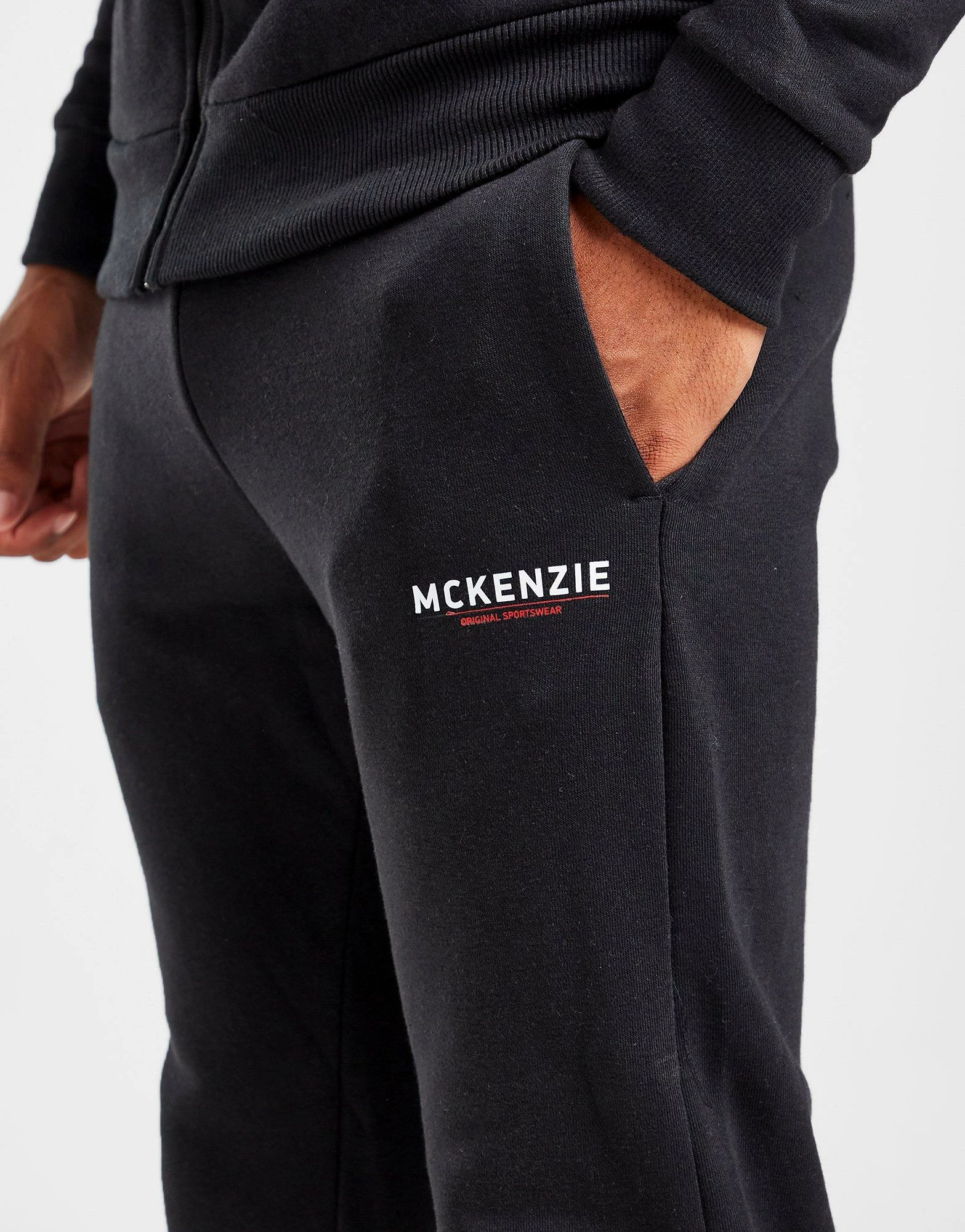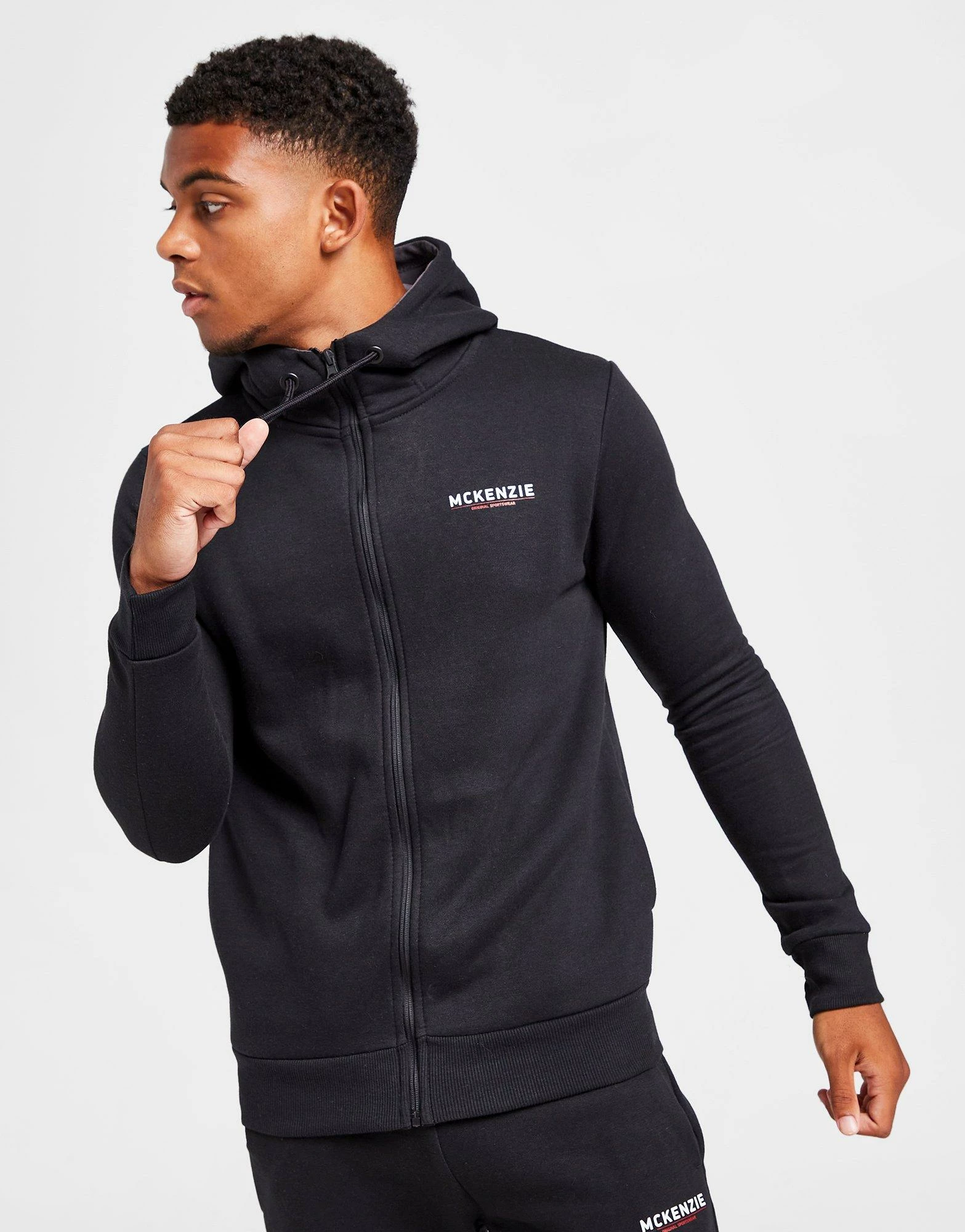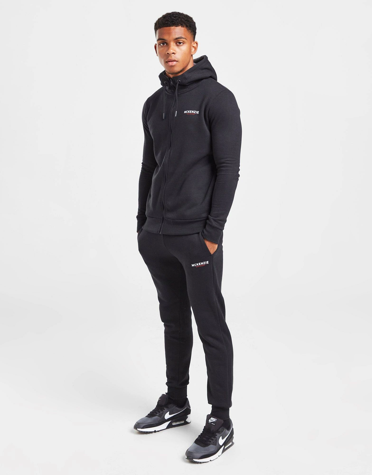 Cop style for the street or the sofa with this men’s Essential Fleece Tracksuit 2 from McKenzie. In a Black colourway, this standard-fit suit is made using a blended cotton poly fleece fabric that’s soft and breathable for all-day comfort. It features a full zip hoodie with an adjustable hood for custom coverage, ribbed trims for an elevated fit and side pockets for storage. The matching joggers have an elastic waistband to keep you snug whilst the tapered legs and ribbed ankle cuffs let you showcase your sneaks. With side pockets to keep your essentials stored, it’s signed off with McKenzie branding to the chest and thigh. Machine washable. | Our model is 6’1″ with a 38″ chest and wears a size medium.