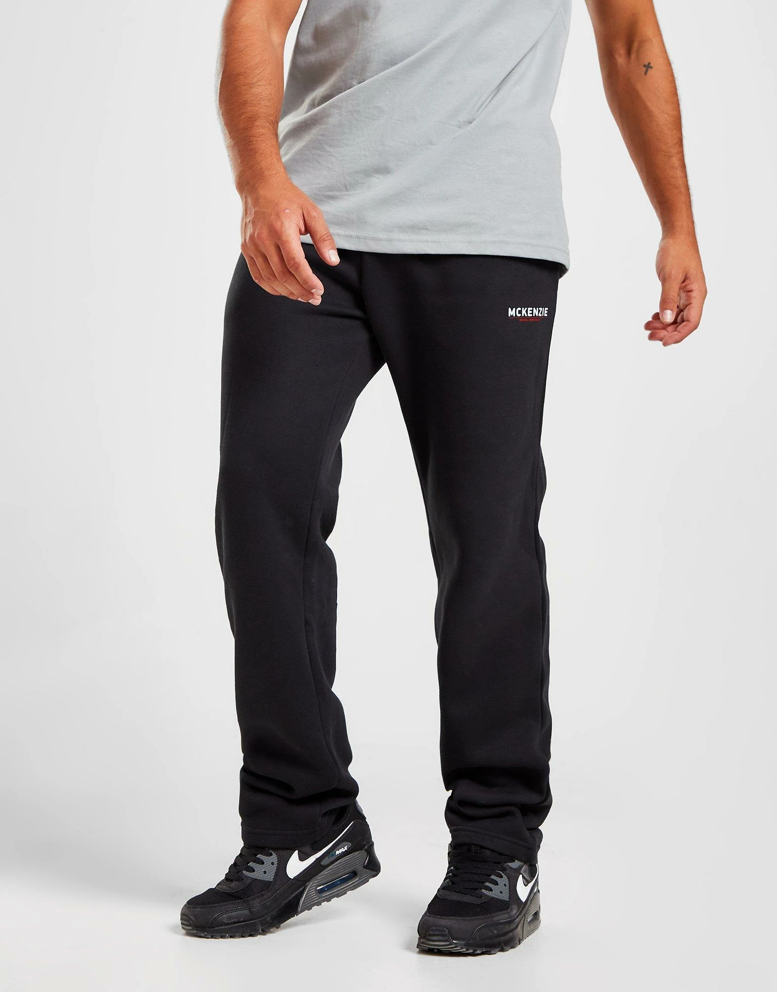 Keep comfy and gear up in these men’s Essential Open Hem Joggers from McKenzie. Exclusive, these regular-fit joggers are made from soft poly-cotton fleece for supreme comfort. They come in a Black colourway, and feature an elasticated waistband with a drawcord to adjust the fit. With a baggy, open hem for a laidback vibe, these pants are finished up with side pockets and classic McKenzie branding at the thigh. Machine washable. | Our model is 6’0″ and wears a size medium.