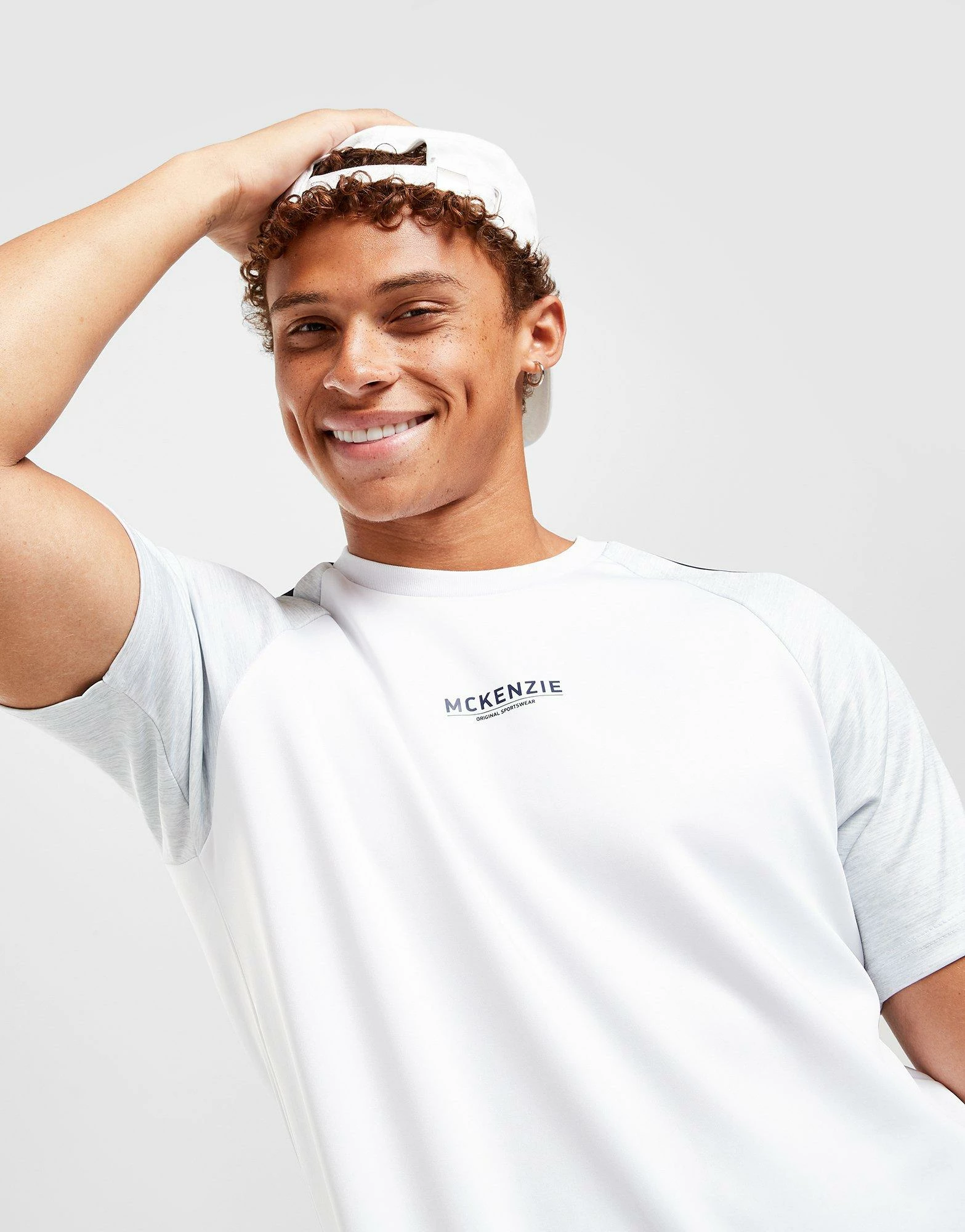 Update your essential rotation with this men’s Exile T-Shirt from McKenzie. In a White and Grey Marl colourway, this exclusive tee is cut from soft, stretchy poly fabric for cool comfort. It features short sleeves with a crew neckline and is finished up with signature McKenzie branding to the chest. Machine washable | Our model is 6’1″ with a 40″ chest and wears a size medium.