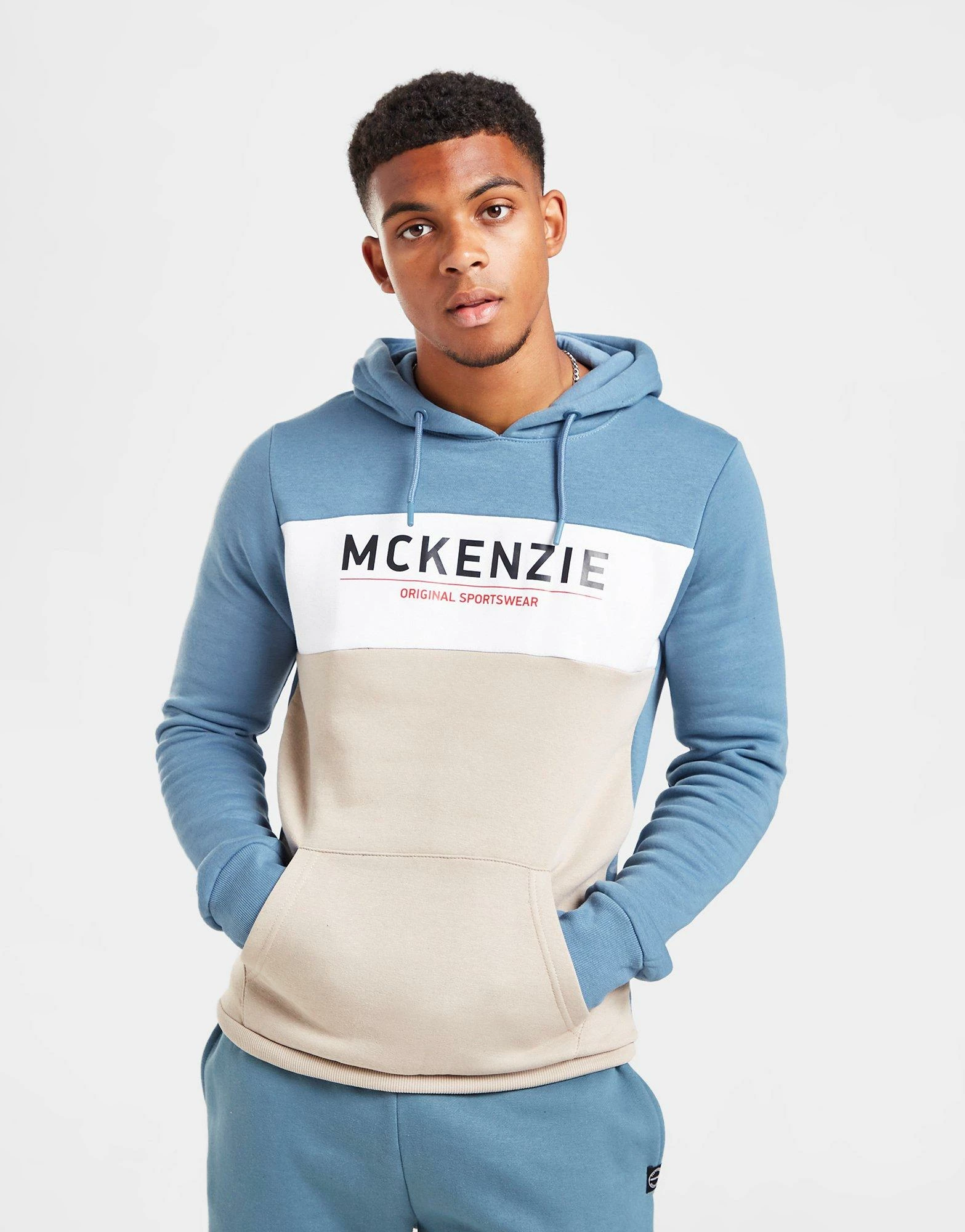 Cop this Joker Hoodie 2 from McKenzie to level up your look and comfort. This regular-fit hoodie comes in a Blue, White and Brown colour block design and is made from a cotton poly blended fabric that’s super-soft for all-day comfort. It has a classic overhead design and features an adjustable hood for custom coverage whilst the ribbed trims optimise the fit. With a kangaroo pocket for storage, it’s finished up with McKenzie branding to the chest. Machine washable. | Our model is 6’1″ with a 38″ chest and wears a size medium.