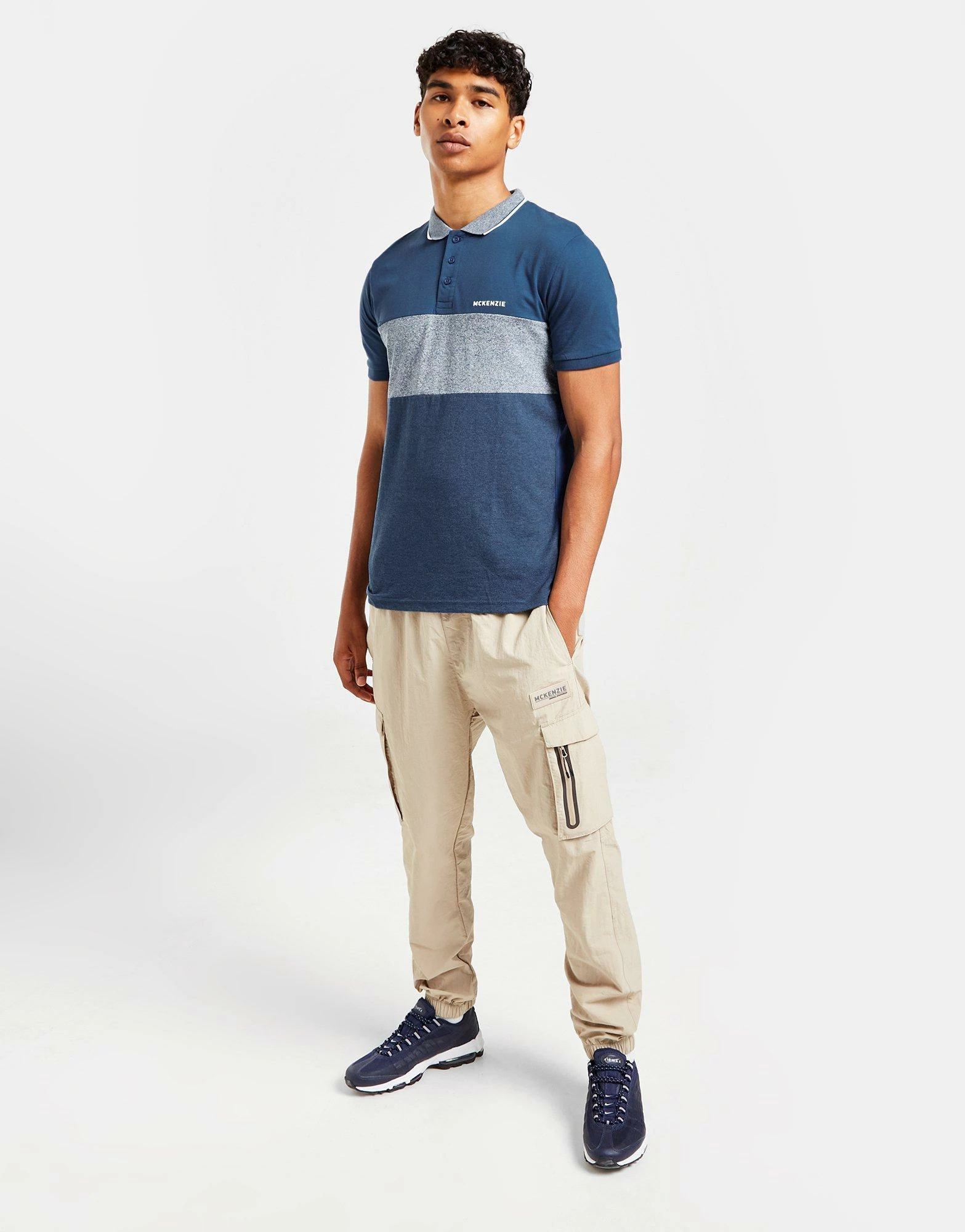 Freshen your look with this men’s Stave Polo Shirt from McKenzie. Coming in a Blue colourway, this regular-fit polo is made from a light and soft cotton fabric for all-day breathable comfort. It features a three-button placket with a spread collar and short sleeves for a classic look. Signed off with McKenzie branding to the chest. Machine washable. | Our model is 6’2″ with a 37″ chest and wears a size medium.