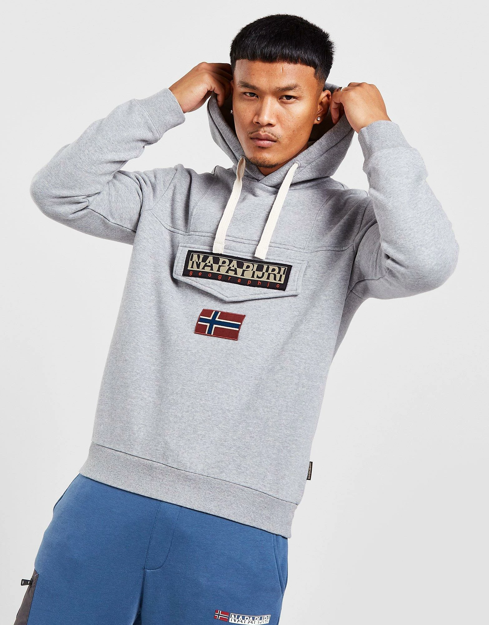 Upgrade your layers with this men’s Burgee 1/2 Zip Hoodie from Napapijri. In a Grey colourway, this standard-fit hoodie is made with a cotton fabric that’s soft and fuzzy for all-day wear. It has a pullover design and features a 1/2 zip fastening with a drawcord hood for adjustable coverage whilst ribbed trims hold the shape. With a flap pocket for storing your essentials, it’s finished with Napapijri branding to the chest. Machine washable. | Our model is 6’0″ with a 40″ chest and wears a size medium.