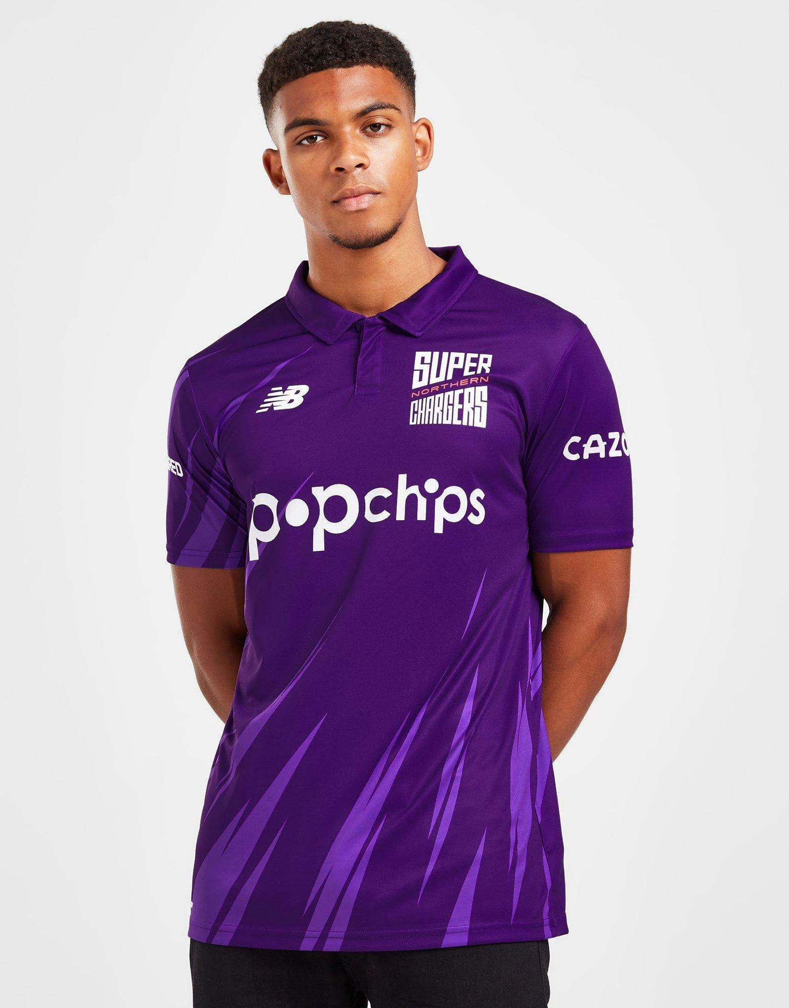 Show your support in this men’s The Hundred Northern Superchargers Shirt from New Balance. Coming in the team’s classic Purple colourway, this standard-fit shirt is made with smooth, lightweight poly fabric for lasting comfort. It features a flat knit collar with a concealed button placket, and short sleeves with ribbed cuffs for secure wear. Finished up with New balance branding at the chest, alongside the iconic Northern Superchargers team logo to sign off. Machine washable. | Our model is 6’1″ with a 38″ chest and wears a size medium.