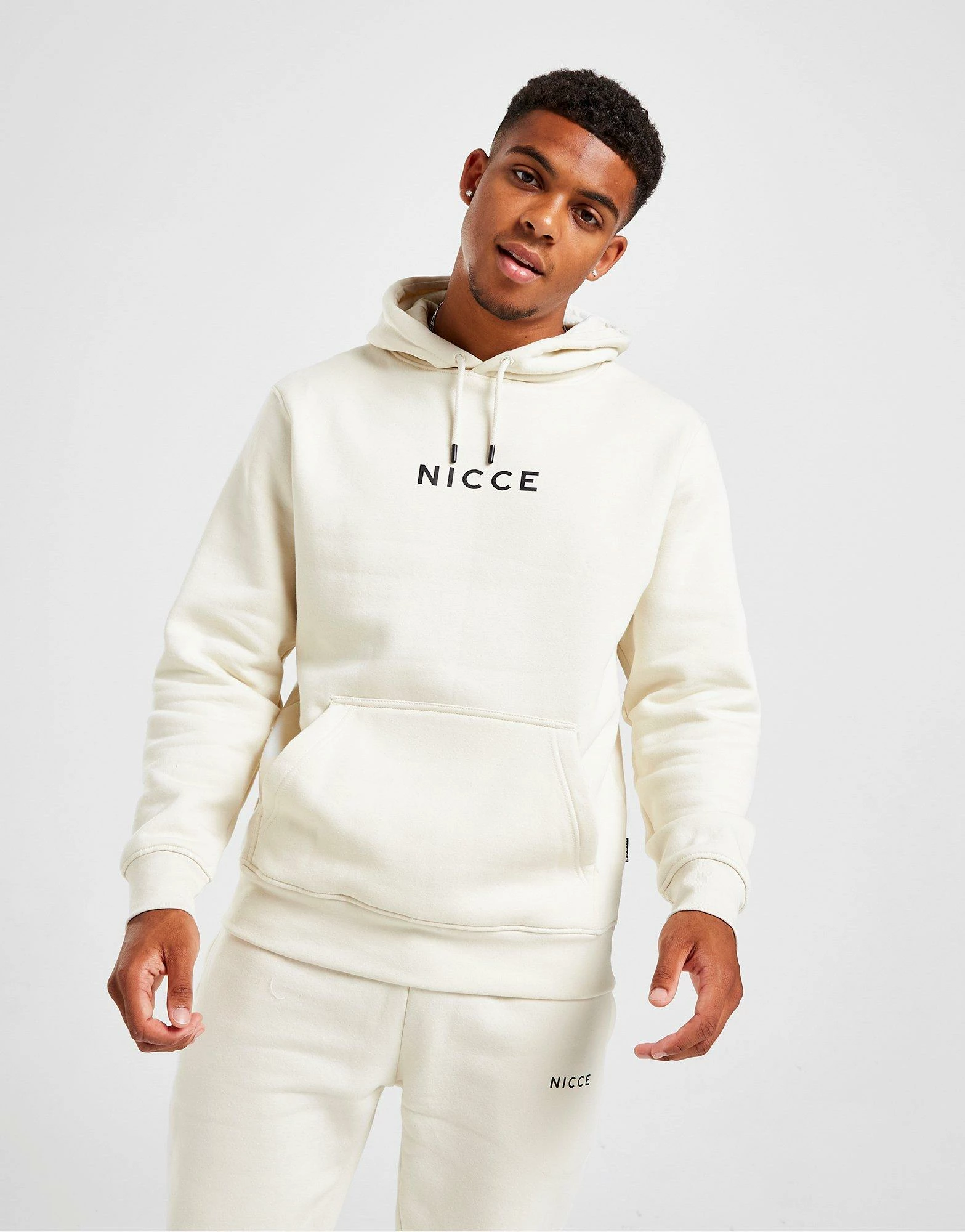 Layer up on chilled days with this men’s Central Logo Hoodie from Nicce. In a Beige colourway, this standard-fit hoodie is cut from a cotton poly blended fabric that’s soft and warm for cosy wear. It has an overhead design and features an adjustable hood for custom coverage and ribbed trims to elevate the fit. With a kangaroo pocket for storage, it’s signed off with Nicce branding to the chest. Machine washable. | Our model is 6’1″ with a 38″ chest and wears a size medium.
