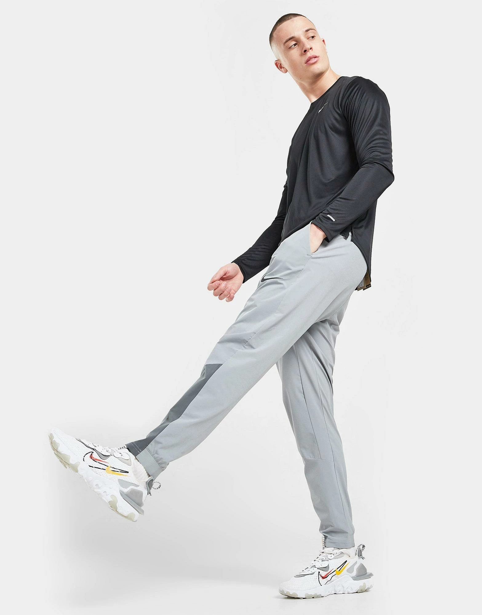 Built to do it all, these men’s Flex Vent Track Pants from Nike offer maximum comfort before, during and after a workout. In a Particle Grey colourway, these regular-fit pants are made from soft and stretchy fabric that uses at least 75% recycled polyester. They have a tapered design, which reduces distractions, and feature an elasticated waistband for a custom fit. Finished with side pockets and signature Nike branding. | Our model is 6’1″ and wears a size medium._