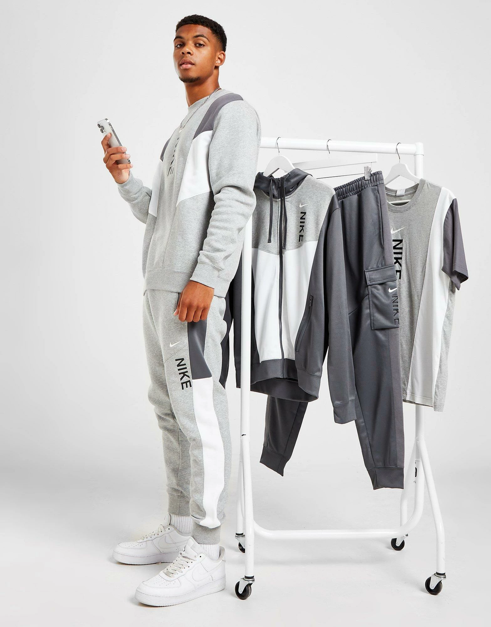 Step into signature comfort from the Swoosh with these men’s Hybrid Fleece Joggers from Nike. Exclusive, these standard-fit pants are made from super soft brushed fleece fabric with a cosy inner for warmth. They come in a Dark Grey Heather colourway, and feature tapered legs, ribbed cuffs and an elasticated waistband with an internal draw cord for a custom fit. With zip pockets for your essentials, these joggers are finished with contrasting panels and signature Nike branding. Machine washable. | Our model is 6’1″ and wears a size medium.