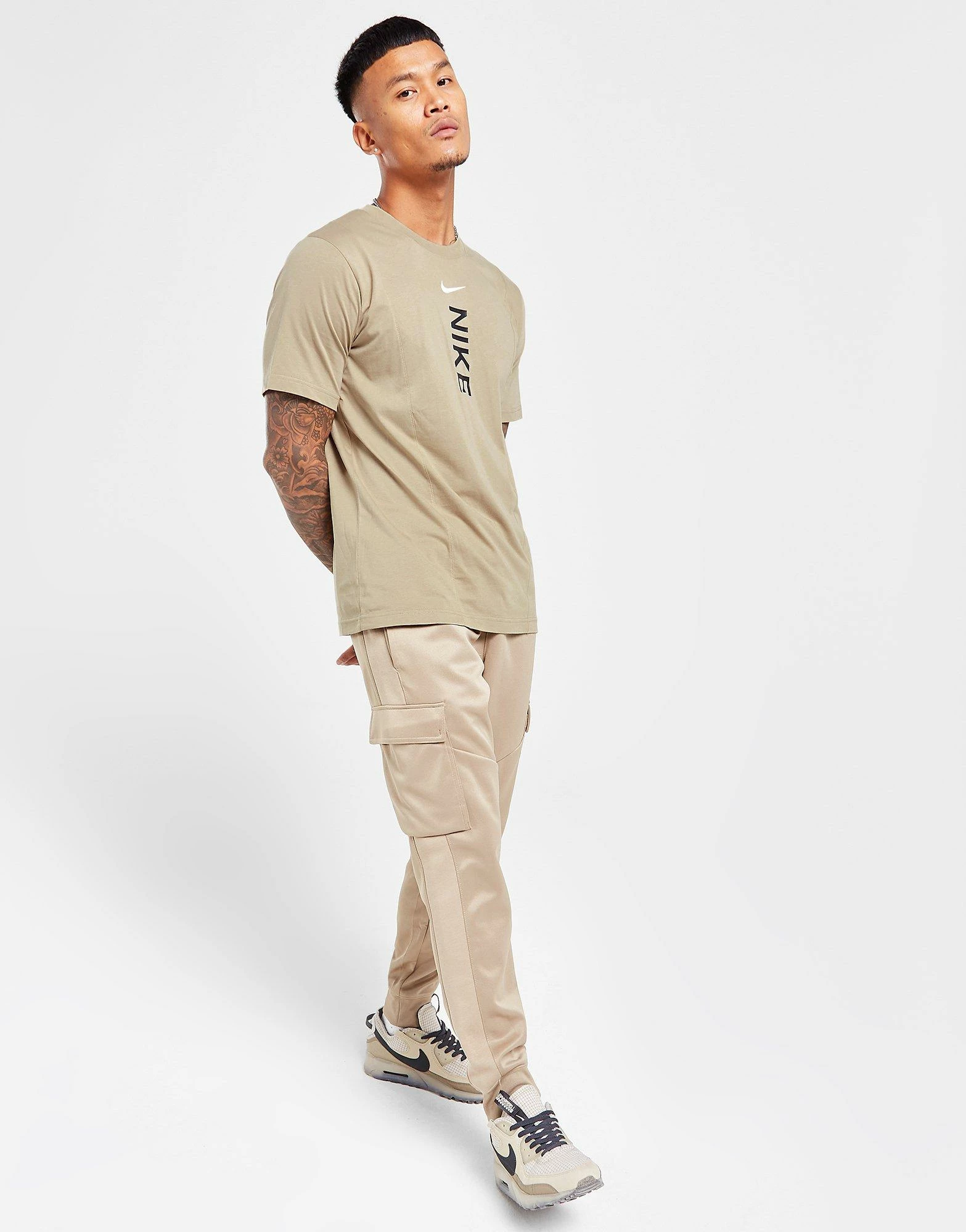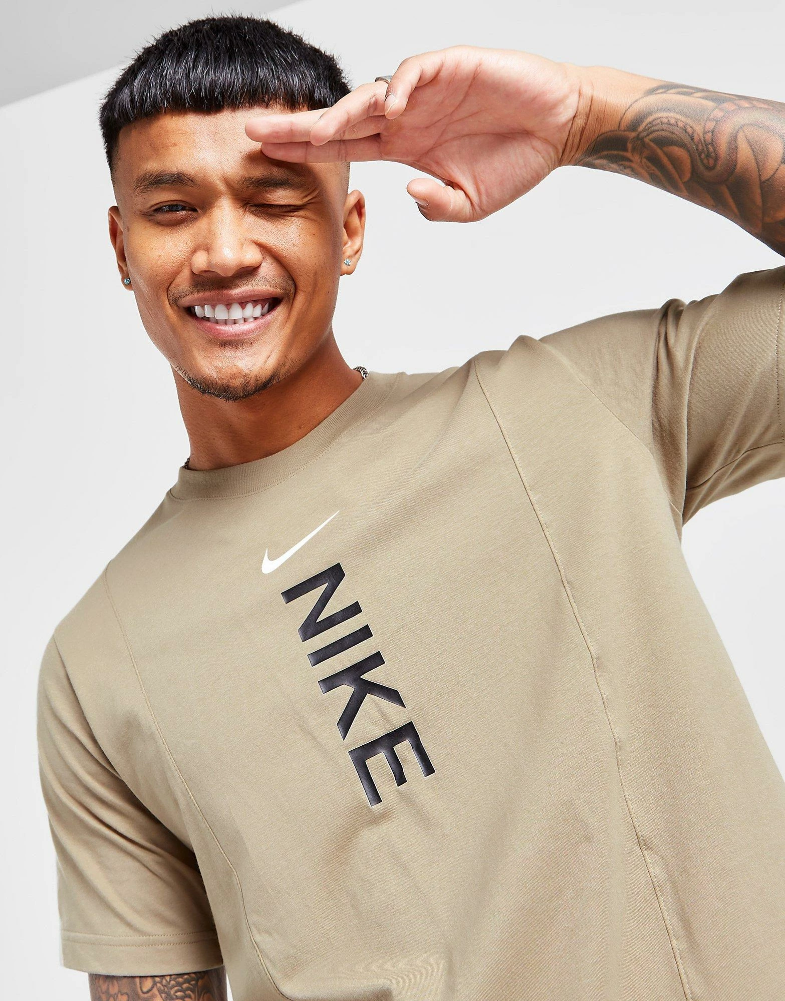Freshen your ‘fits with this men’s Hybrid T-Shirt from Nike. Exclusive, this standard-fit tee comes in a Khaki colourway and is made with a light and soft cotton fabric for everyday comfort. It features a stretchy ribbed collar and short sleeves for a classic cut and is finished up with Nike branding to the chest. Machine washable. | Our model is 6’0″ with a 40″ chest and wears a size medium.