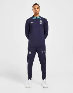 Get your game in shape with these men’s Inter Milan Strike Drill Track Pants from Nike. In a Blackened Blue colourway, these slim fit pants are cut from smooth, stretchy poly fabric for flexible comofrt as you train. The feature an elasticated waistband for a relaxed fit, with zip-up side pockets for secure storage and are equipped with Dri-FIT sweat-wicking tech to keep you dry and fresh. Finished up with the Nike Swoosh and Inter Milan crest to the leg. Machine washable.