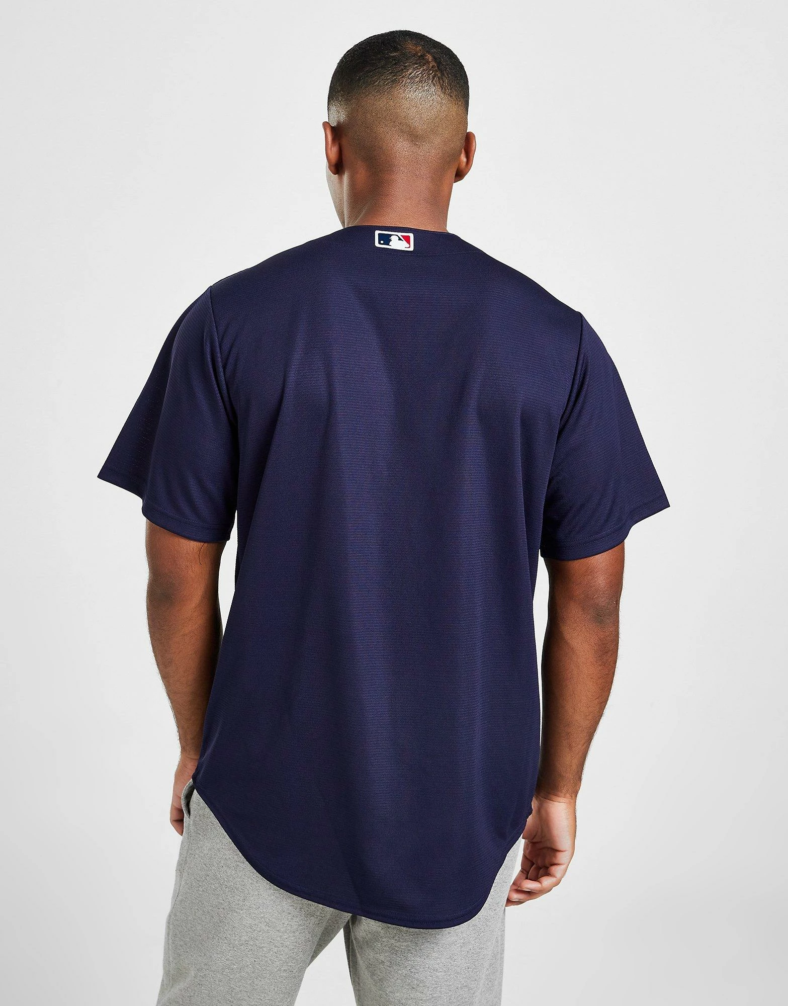 Show some support in this men’s MLB Boston Red Sox Alternate Jersey from Nike. Comin’ in a Navy colourway, this regular-fit jersey is made with super-smooth, lightweight poly for lasting comfort. It features a V-neckline and short sleeves for a classic look, with a full-length button fastening for a versatile look. Finished up with the iconic Swoosh logo and ‘Boston’ across the chest to highlight ya pride. Machine washable. | Our model is 6’0″ with a 38.5″ chest and wears a size medium.