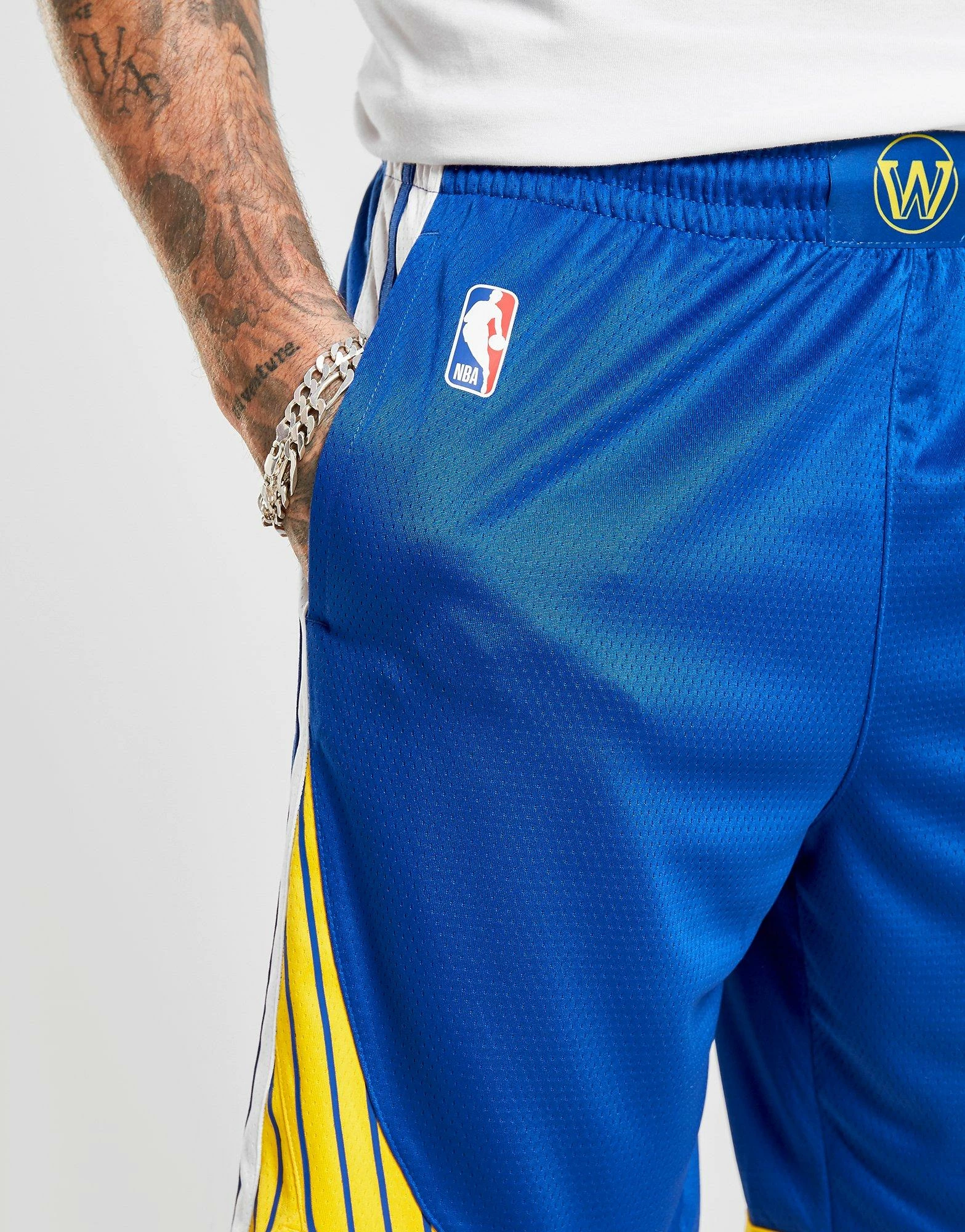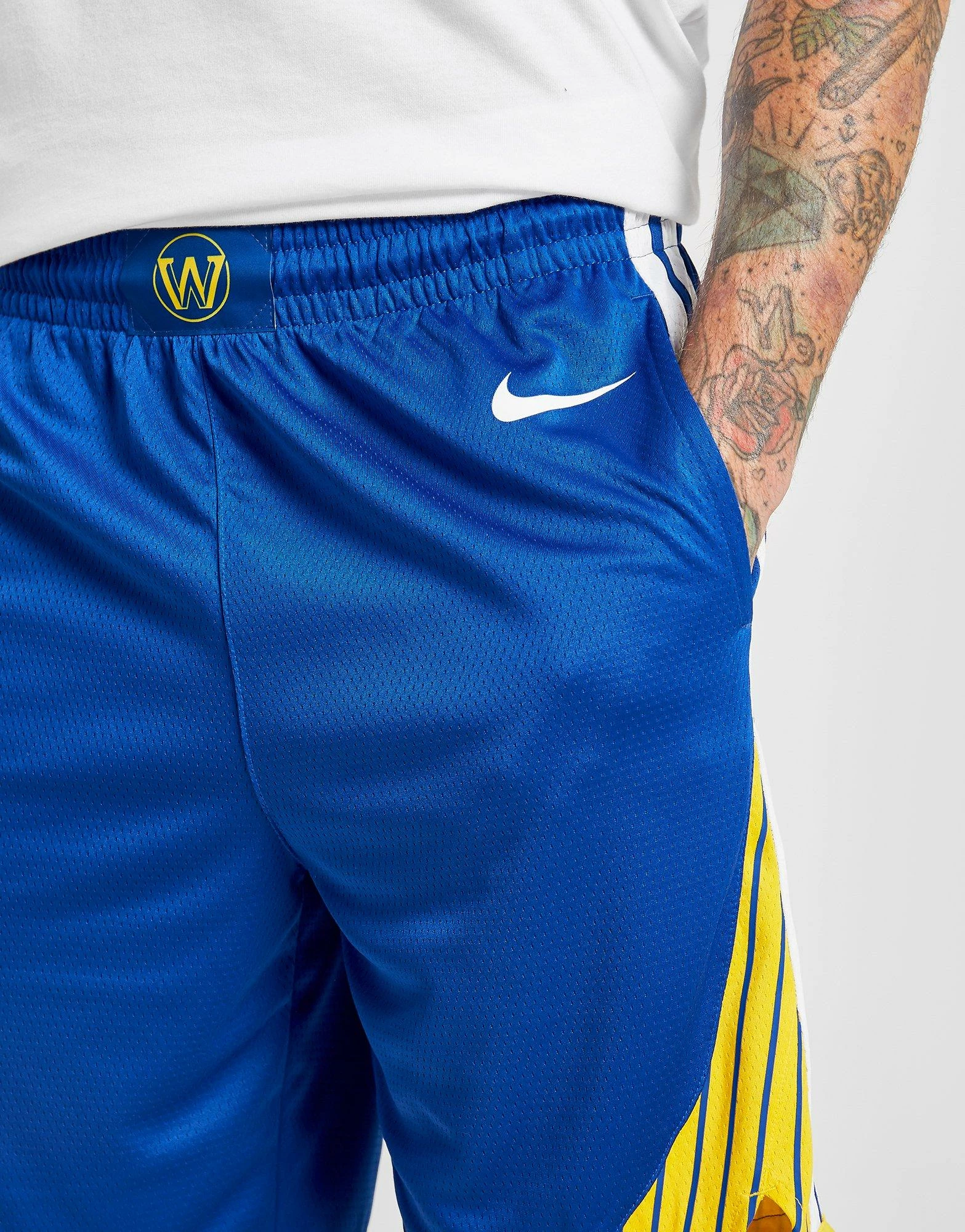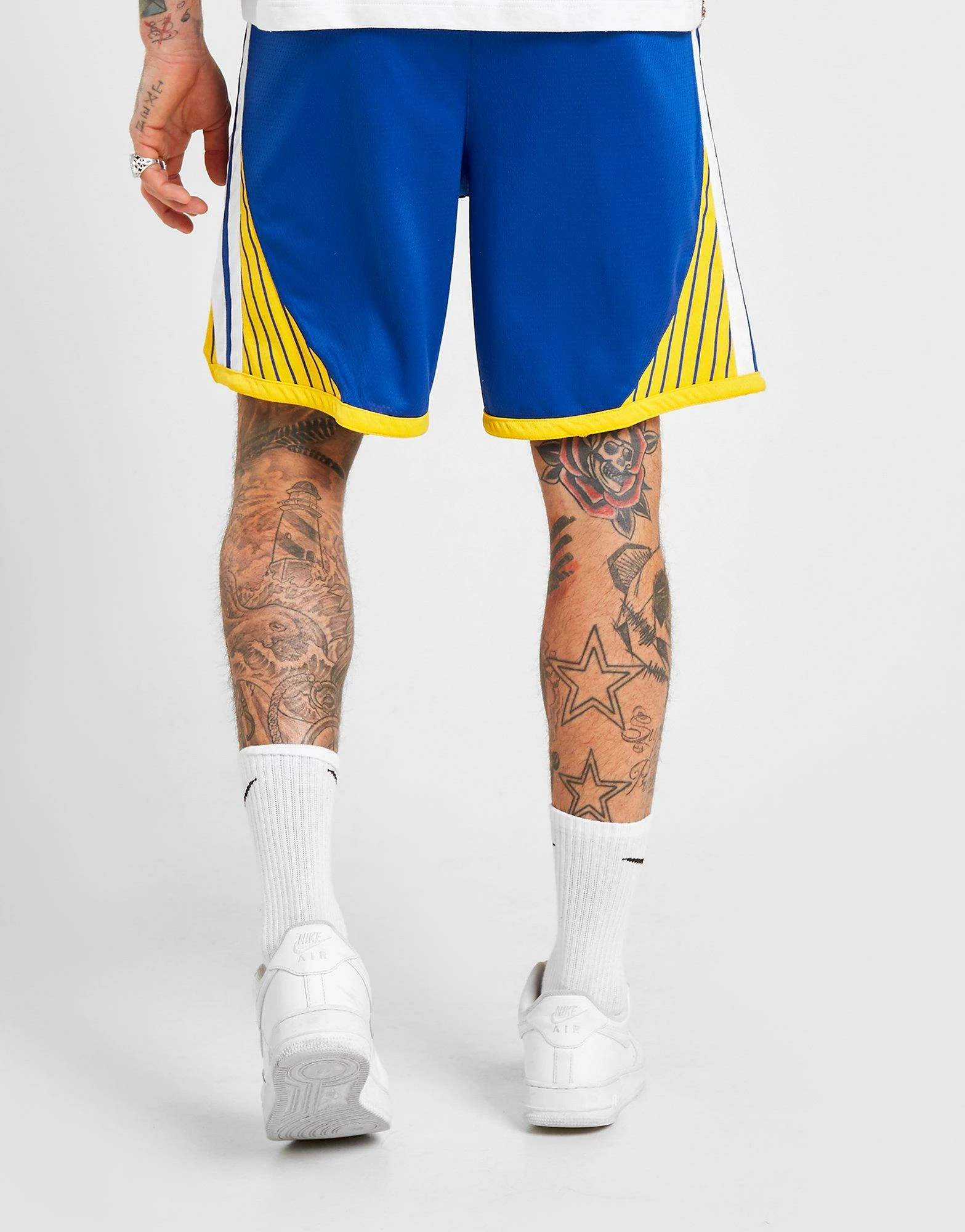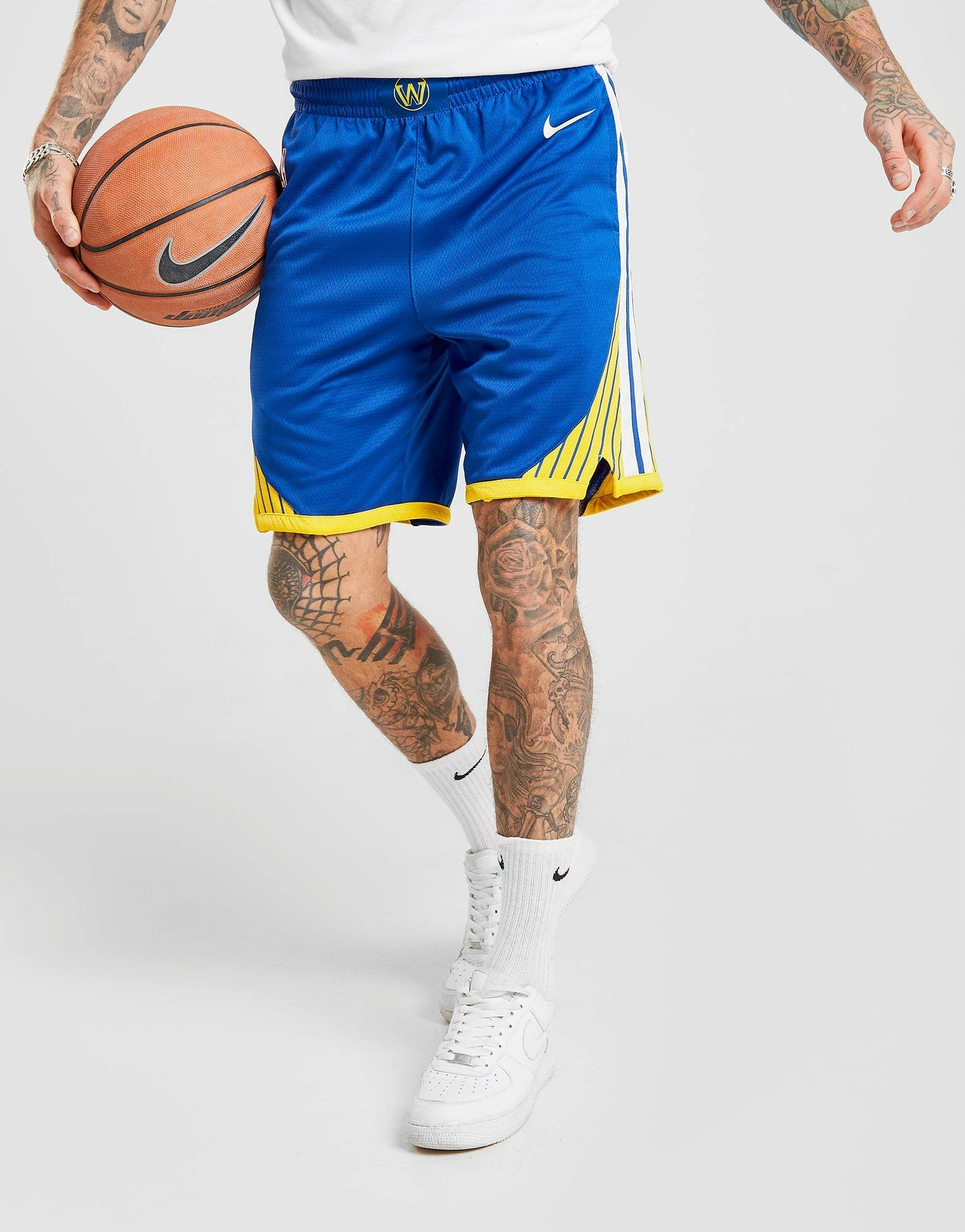 Vis støtten til holdet med disse herre NBA Golden State Warriors Swingman Shorts fra Nike. Kommer i blå med detaljer i gul og hvid og er produceret i et blødt polyester. Udstyret med Dri-FIT teknologi. Har elastik i taljen og lommer. Afsluttet med Swoosh branding og et gult W, som repræsenterer the Golden State Warriors. Tåler maskinvask. Vores model er 188 cm og bærer en str. M.