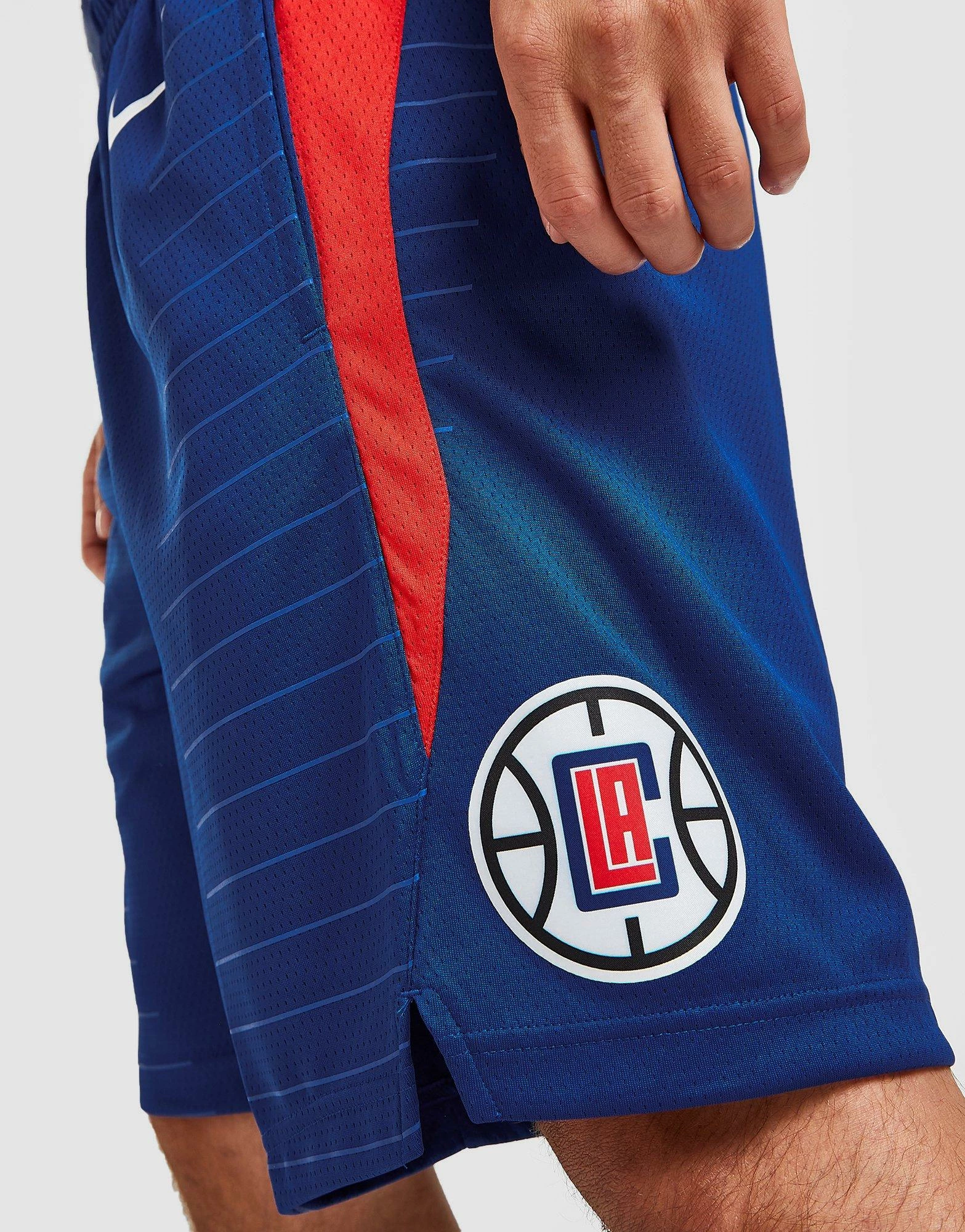 Hit the courts while showin’ your support in these men’s NBA Los Angeles Clippers Swingman Shorts from Nike. In a Rush Blue colourway with White detailing and University Red mesh panelling for breathability, these shorts are made from lightweight polyester for cool, comfort throughout your game. They feature Nike Dri-FIT tech that wicks away sweat to keep you dry and fresh, while hem vents allow for more flexible movement. With side pockets for your essentials and an elasticated waistband for a relaxed fit, these shorts are finished up with the NBA logo, Clippers badge and Nike Swoosh to the leg. Machine washable | Our model is 5’11” and wears a size medium.