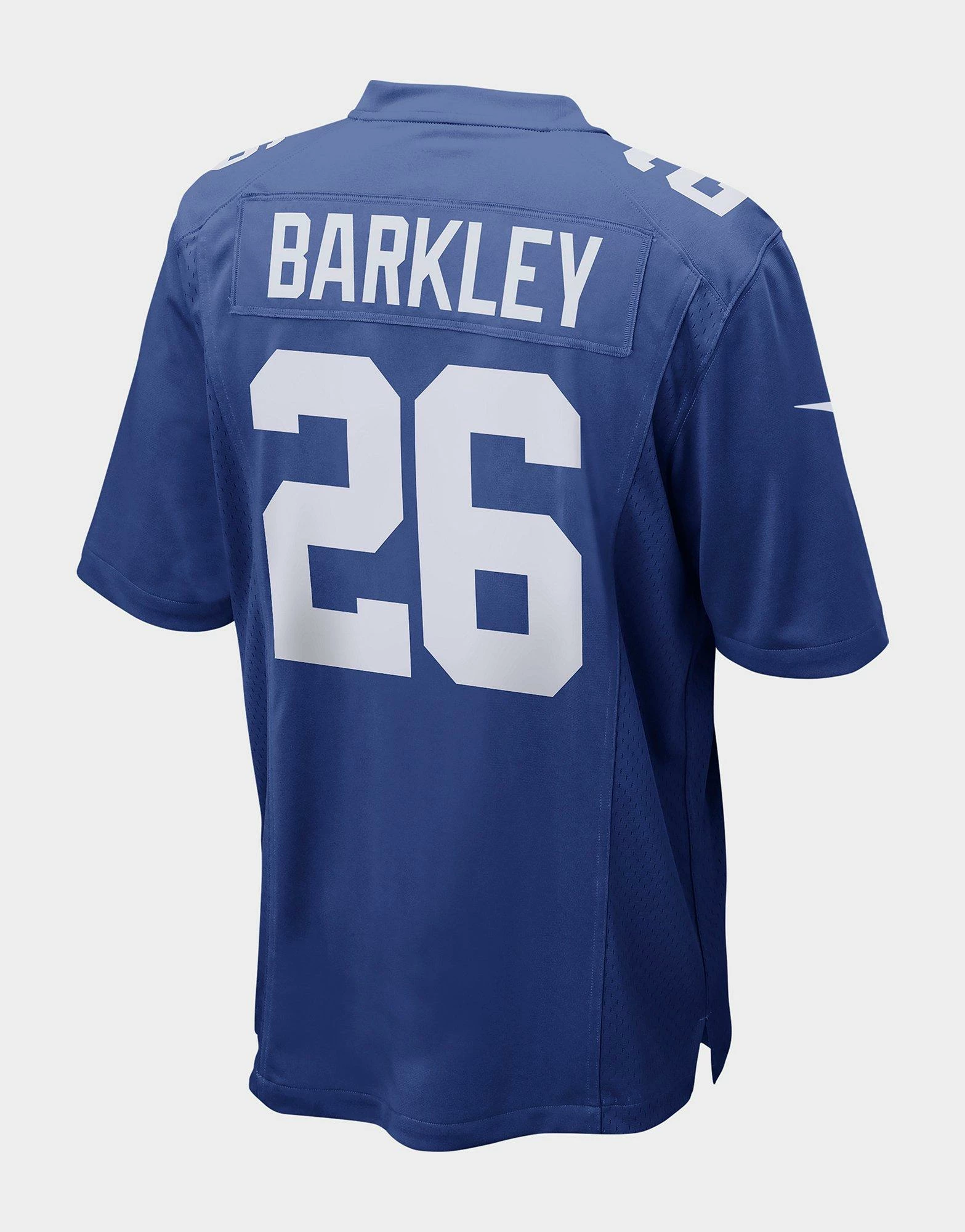 Rep your team from the sidelines with this men’s NFL New York Giants Barkley #26 Jersey from Nike. In a royal blue colourway, this loose-fit jersey is made from breathable and lightweight poly fabric with mesh side panels for ventilation. It features a V-neckline and NFL badge to the centre, as well as short sleeves. Finished with lengendary Swoosh branding and Saquon Barkley’s name and number. Machine washable.
