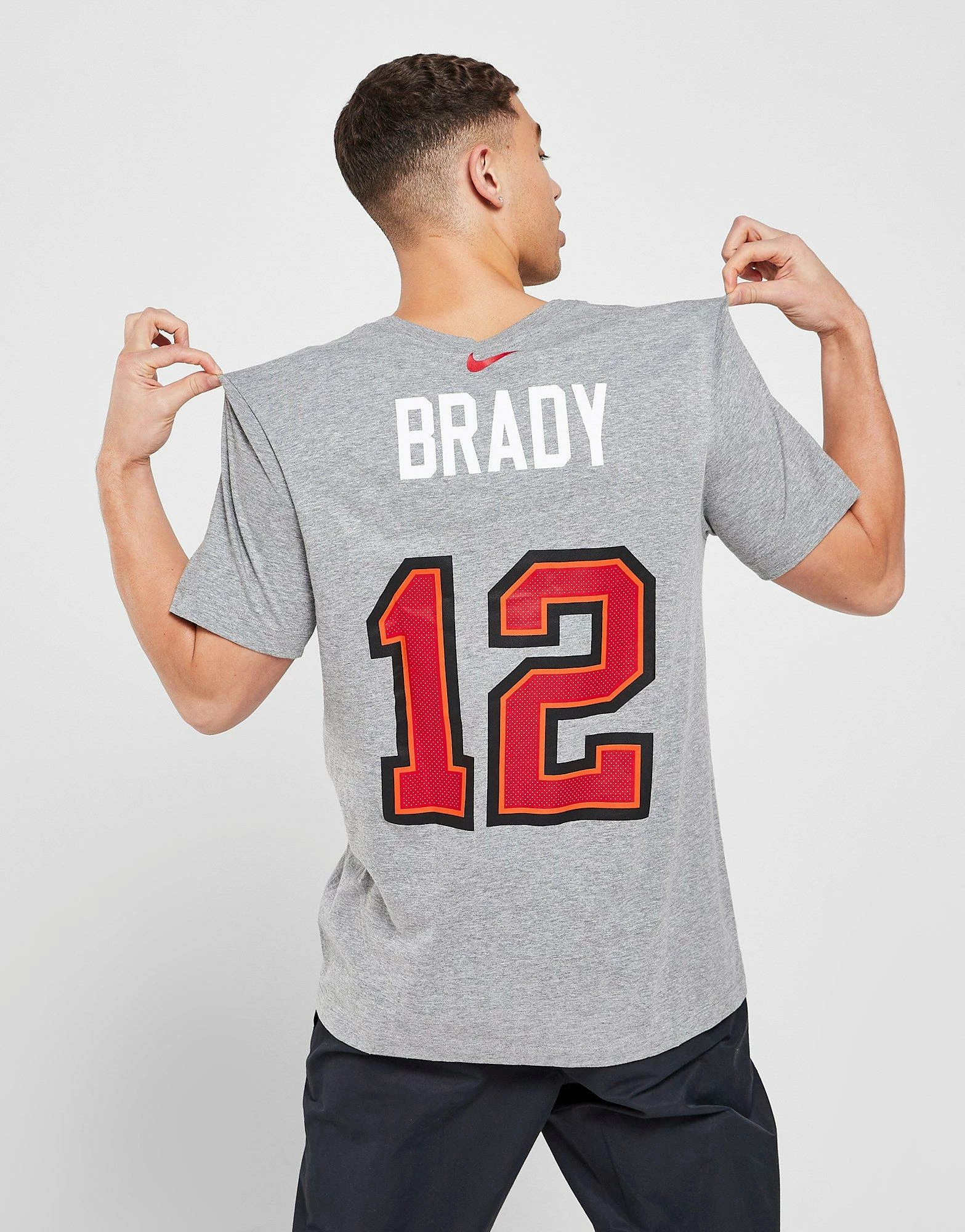 Play like the best when you train with this men’s Tampa Bay Buccaneers Brady #12 T-Shirt from Nike. In a Dark Grey colourway, this loose-fit tee features a crew neckline and relaxed sleeves for a comfy wear. Built from soft cotton for a plush feel that lasts, this top is finished off with the Buccs crest to the chest, a Swoosh logo to the nape and iconic Brady #12 branding to the front and back. Machine washable. | Our model is 5’11” with a 38″ chest and wears a size medium.