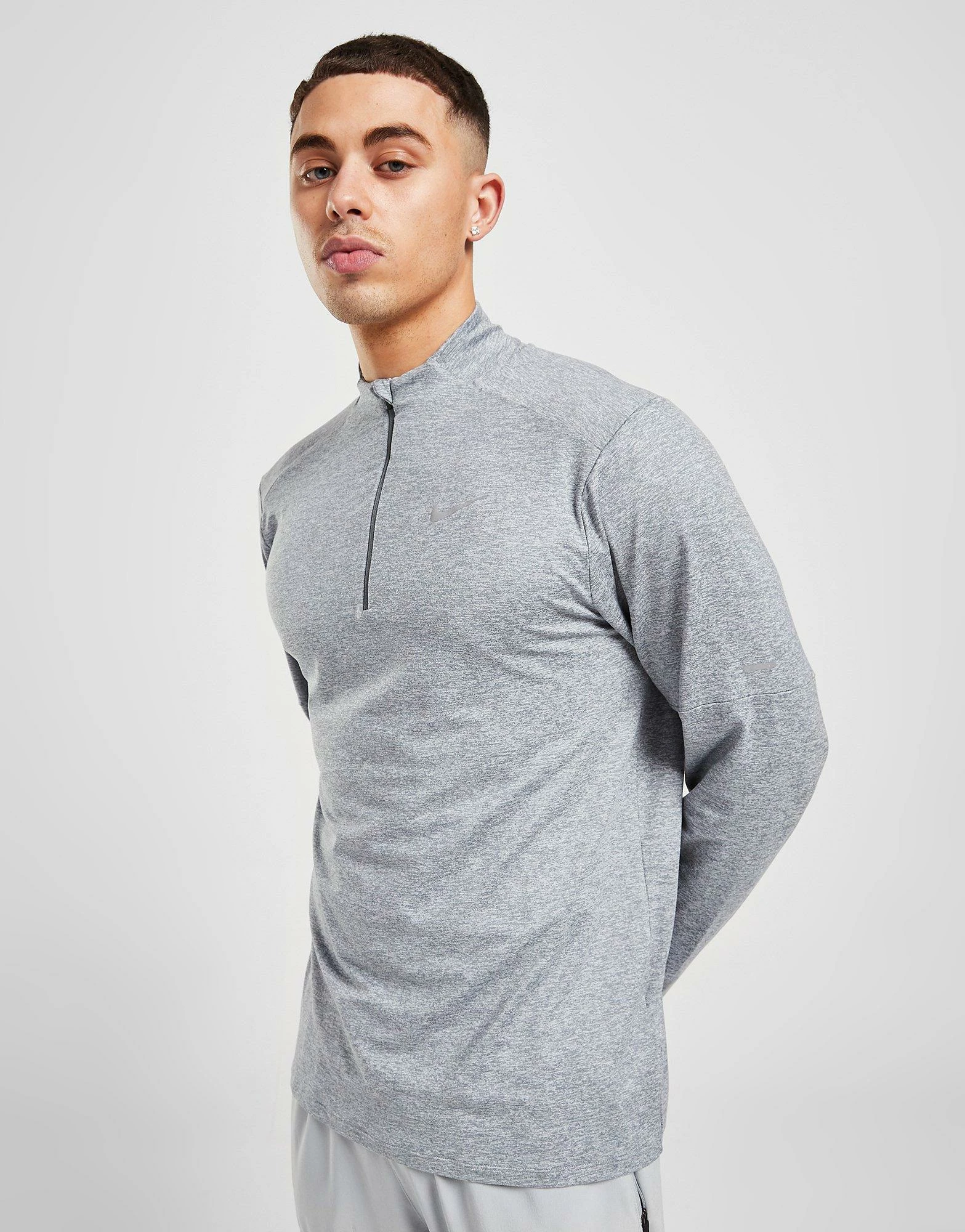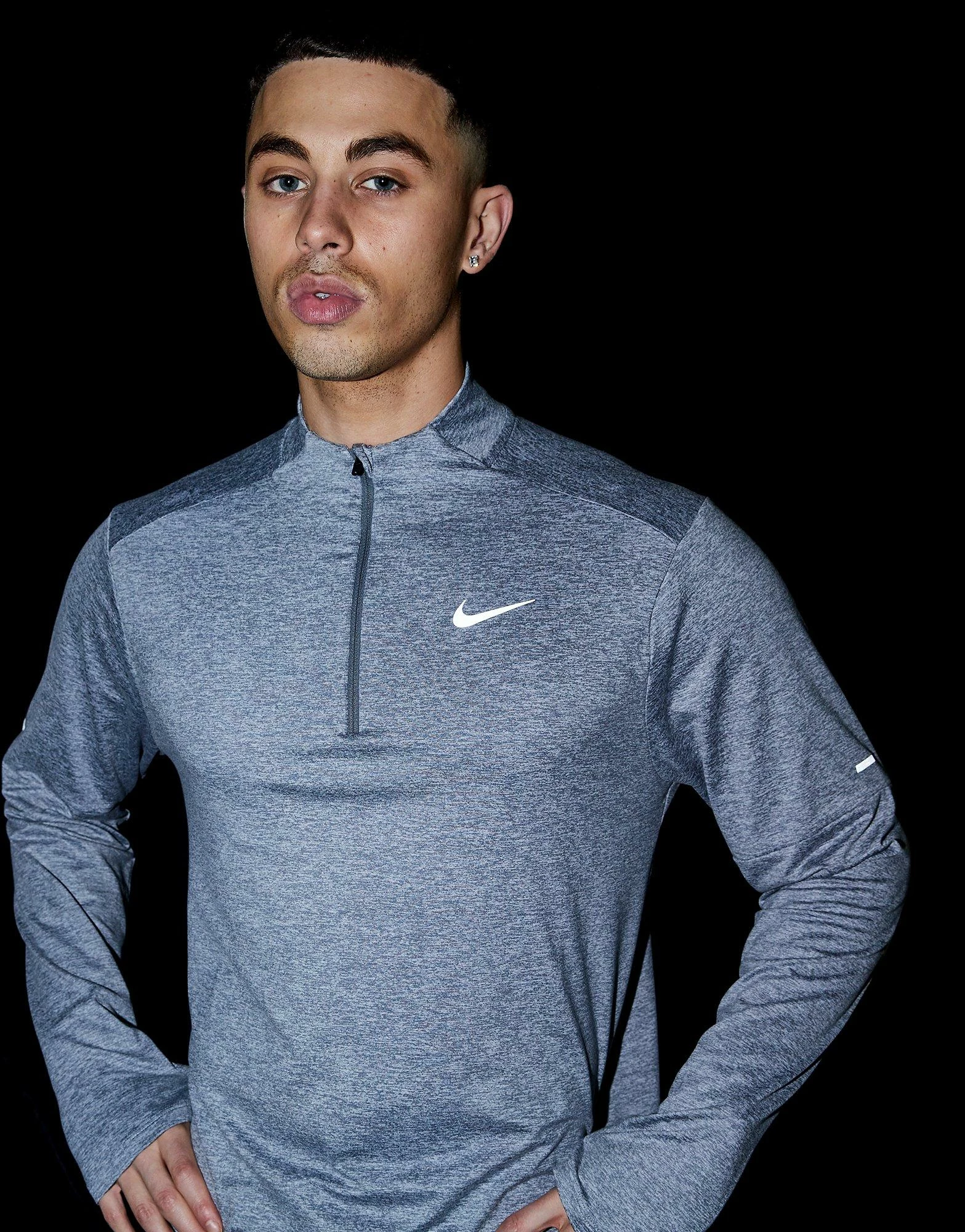 Rule your running route with this men’s Element 1/2 Zip Running Top by Nike. Coming in a Smoke Grey colourway, this regular-fit top is made from lightweight poly-fabric for unmatched comfort. It has Dri-FIT tech that works to wick away sweat so you can keep cool and focused when smashin’ those PB’s. This gym essential features a 1/2 zippered design so you can adjust your airflow and coverage, whilst the thumbholes to the sleeves cover your hands should you need the extra warmth. Finished with reflective elements. Machine washable. | Our model is 6’0″ with a 38.5″ chest and wears a size medium.