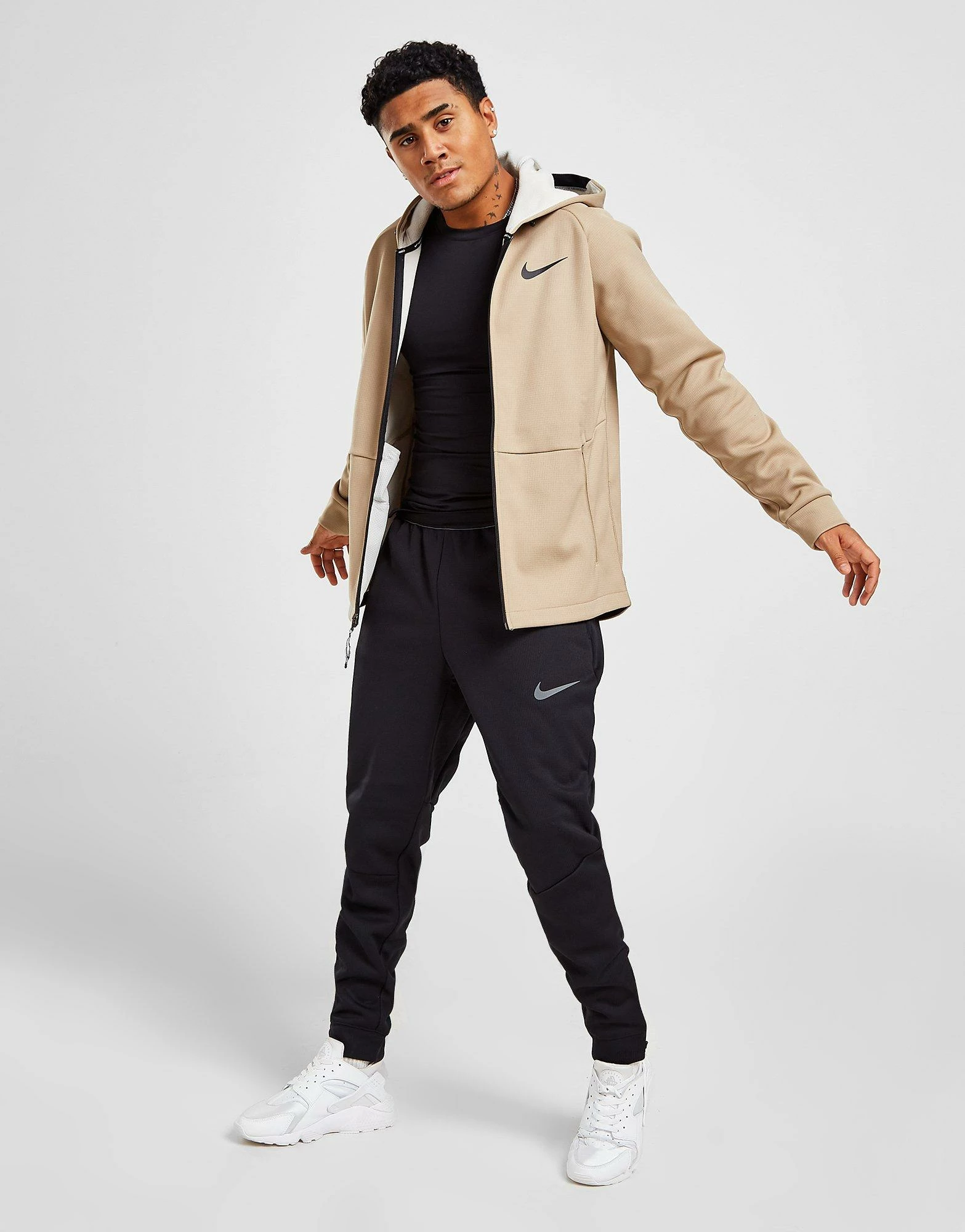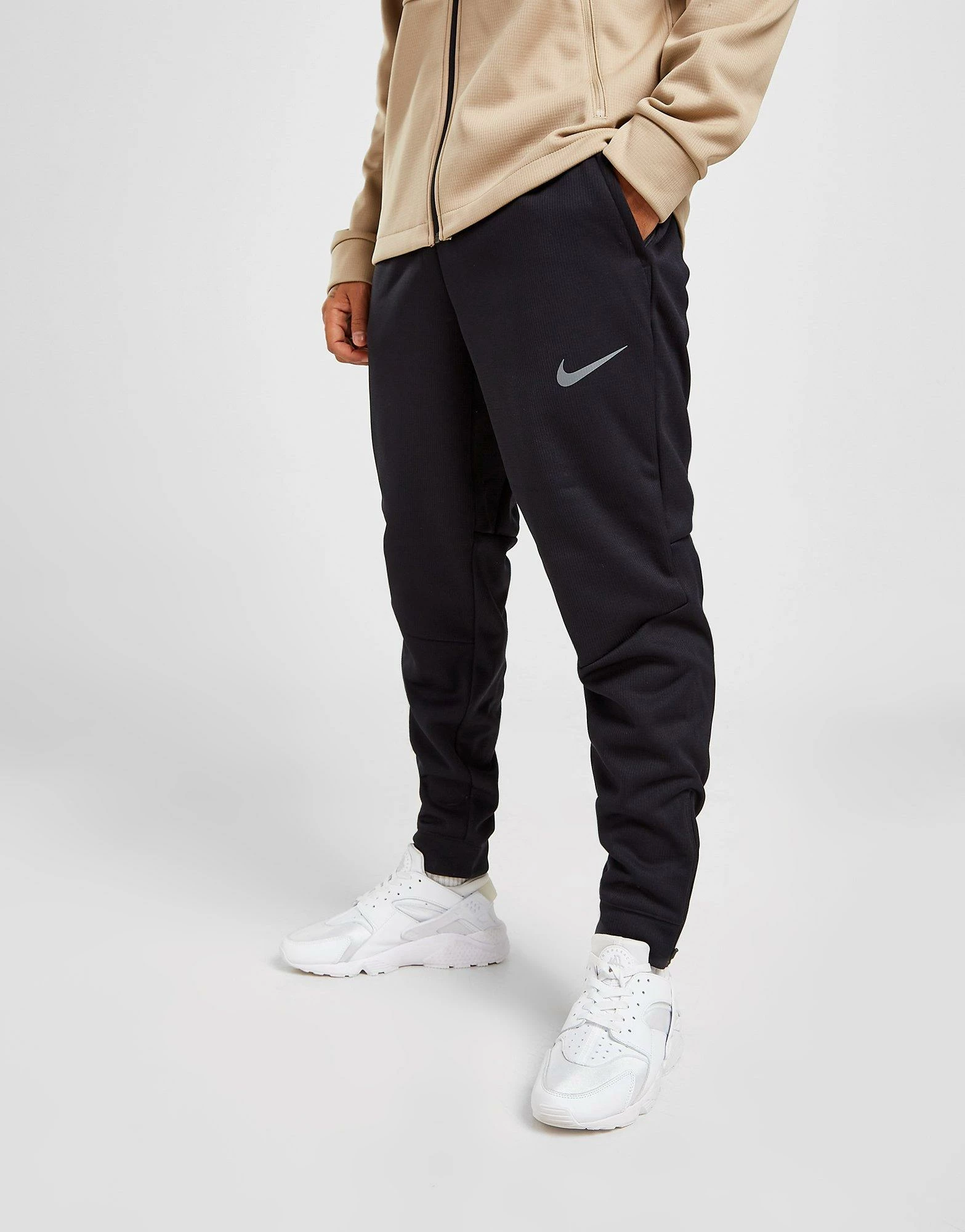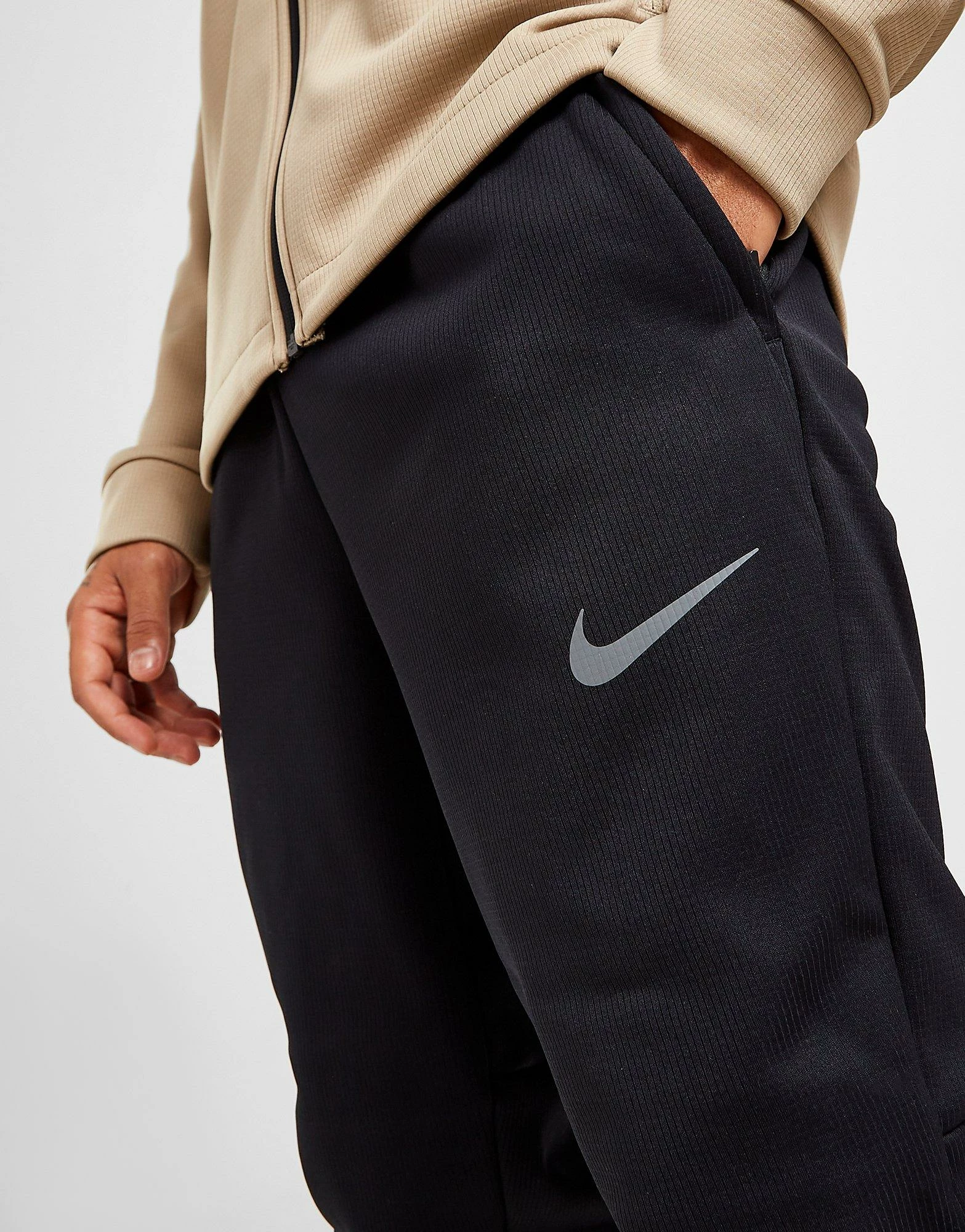 Keep warm this winter with these men’s Sphere Pro Track Pants from Nike. In a Black and Iron Grey colourway, these track pants are made from semi-recycled polyester fabric that’s light and breathable for cool comfort. They feature Nike Therma-FIT tech to lock in the warmth, with an elasticated waistband for a relaxed fit and zip-up hems for customisable airflow. They have zippered side pockets for secure storage and are finished up with Nike branding to the thigh. Machine washable | Our model is 5’11” and wears a size medium.