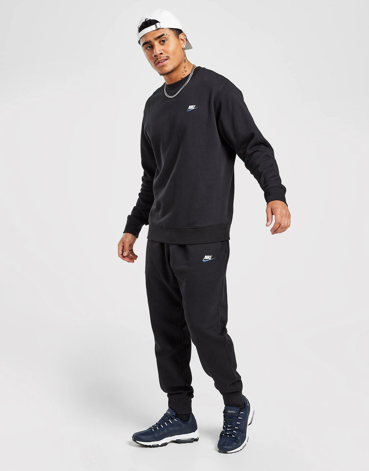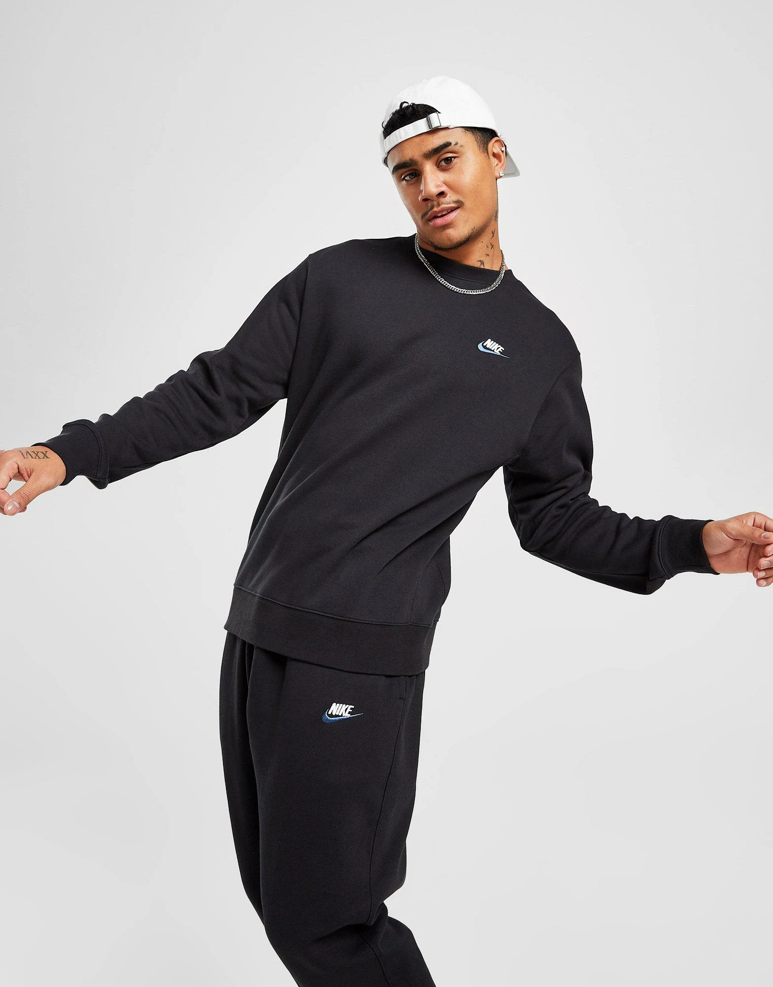 Add an essential layer to your rotation with this men’s Sportswear Club Sweatshirt from Nike. In a Black colourway, this standard-fit sweat is made from a cotton poly blend that’s smooth on the outside but has a soft and fuzzy inner for a cosy feel. It features a crew neckline with long sleeves and ribbed trims for an elevated fit and classic look. Finished up with Nike branding to the chest. Machine washable. | Our model is 5’11” with a 38″ chest and wears a size medium.