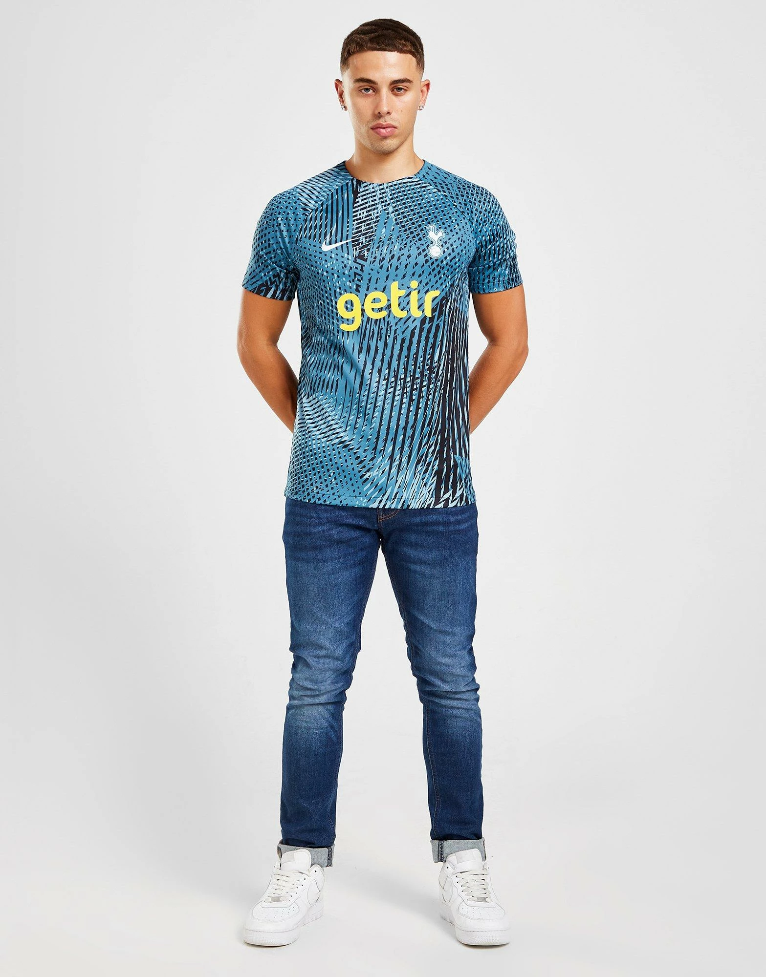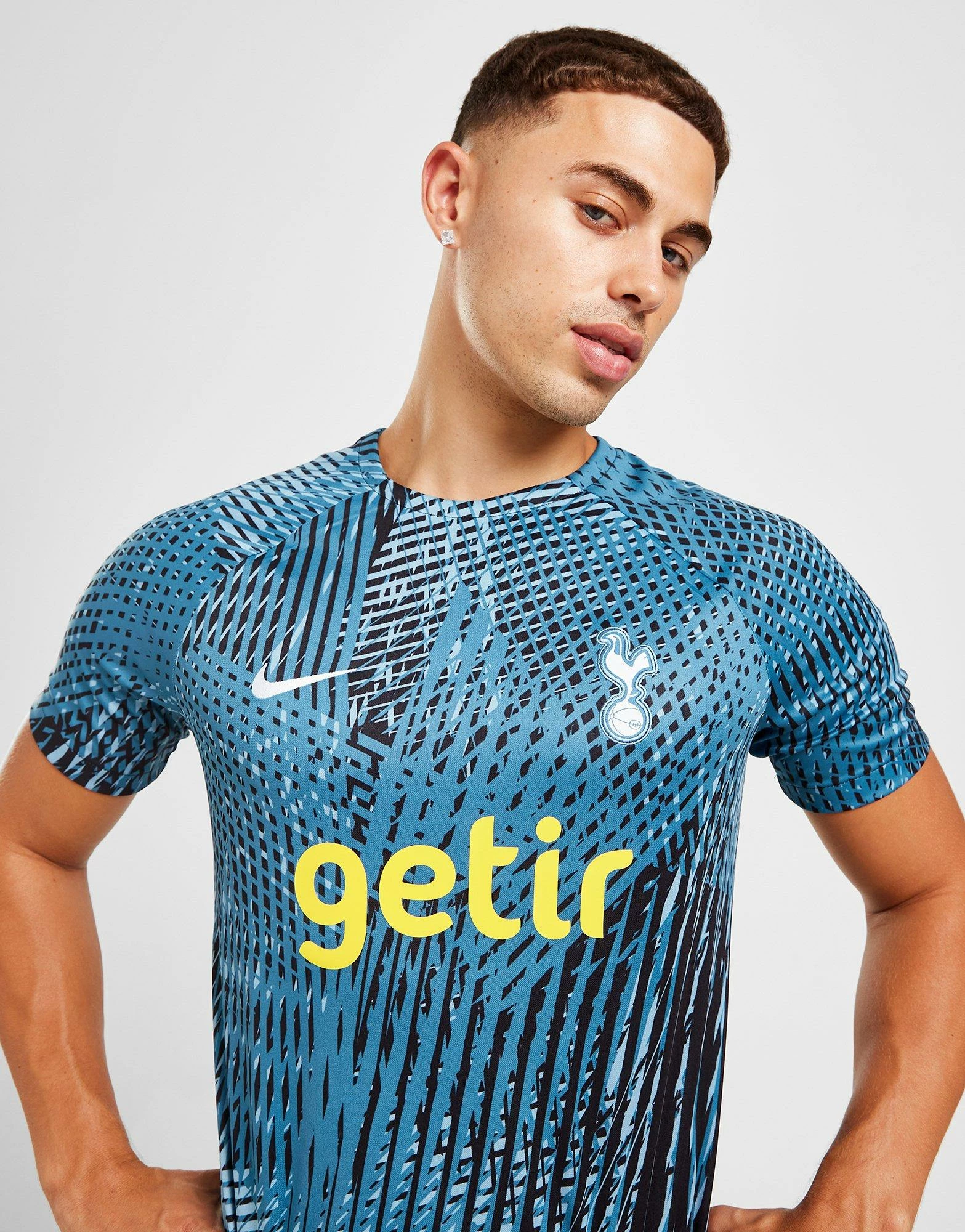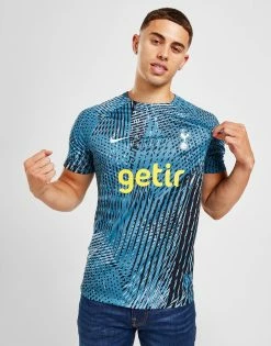 Back the Spurs on big European nights with this men’s Tottenham Hotspur Champions League Pre Match Shirt from Nike. In a Royal Blue colourway, this standard fit shirt is cut from light, breathable polyester for cool comfort. It features short sleeves with a crew neckline and is equipped with Dri-FITsweat-wicking tech to keep you dry and fresh. Finished up with the Nike Swoosh and Spurs crest to the chest. Machine washable. | Our model is 5’11” with a 38″ chest and wears a size medium.