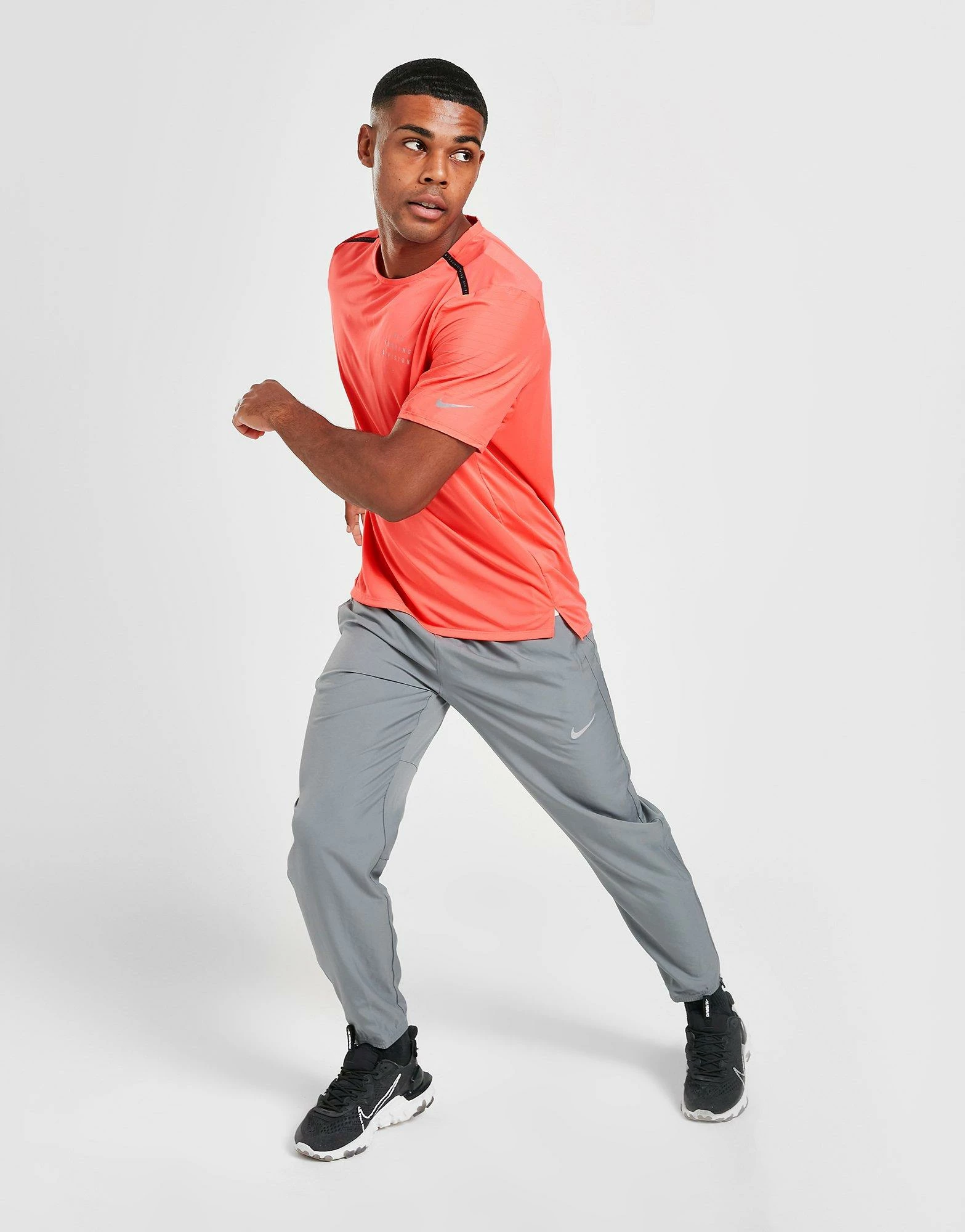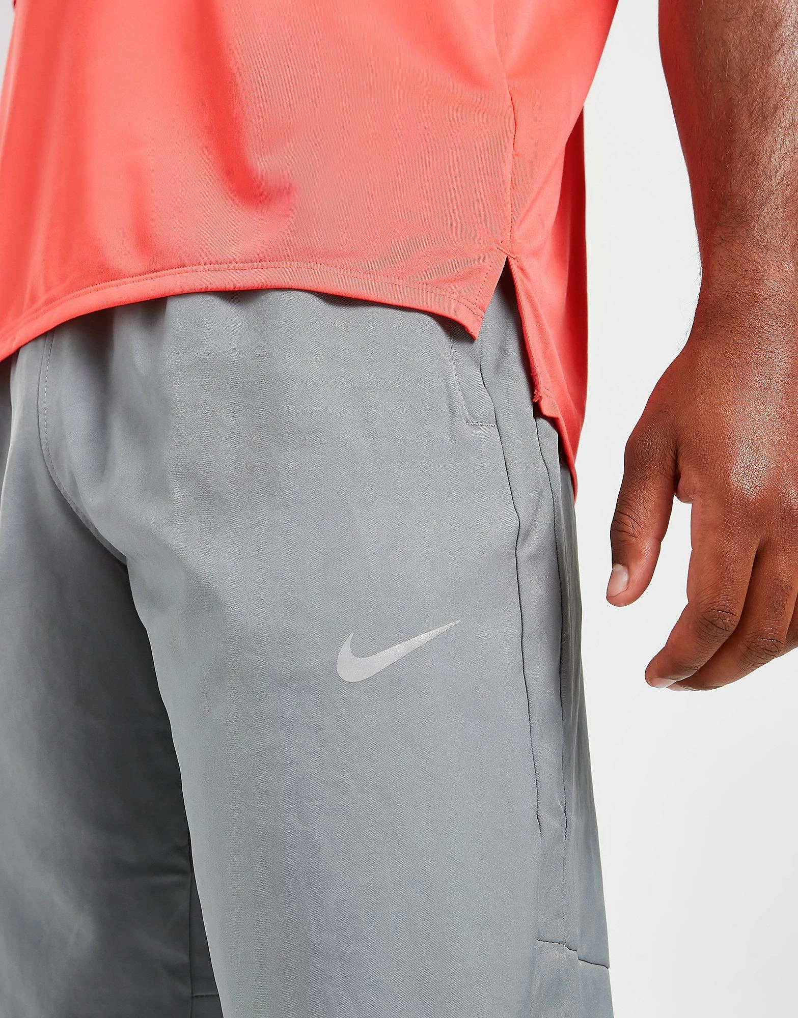 Level up your look in these men’s Challenger Track Pants from Nike. In a grey colourway, these pants are made with lightweight 100% recycled polyester for a lightweight feel with Dri-FIT tech to keep you cool and dry. With a tapered fit, they feature an elastic waistband with a drawcord for a custom fit with zips to the ankles. Keep ya’ essentials close with snap button pockets. Finished up with reflective elements and a tonal Swoosh to the leg. | Machine washable. Our model is 6’0″ and wears a size medium.