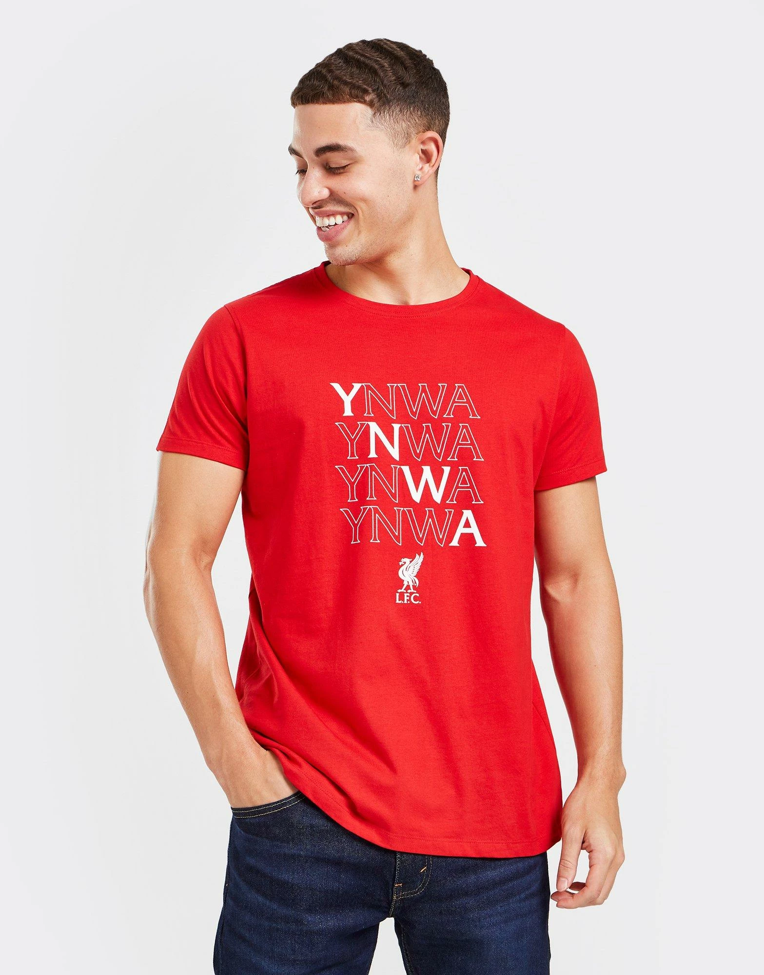 THIS PRODUCT IS PART OF OUR 2 FOR £25 OFFER. THE OFFER WILL AUTOMATICALLY APPLY WHEN YOU ADD TWO QUALIFYING PRODUCTS TO YOUR BASKET. Show your support for the reds in this men’s Liverpool FC YNWA T-Shirt from Official Team. In the signature Red colourway, this regular-fit tee is made from soft and durable cotton fabric. It features a classic crew neckline and short sleeves. Finished with YNWA repeated to the front, as well as the Liverpool crest in white. Machine washable. | Our model is 5’11” with a 38″ chest and wears a size medium.