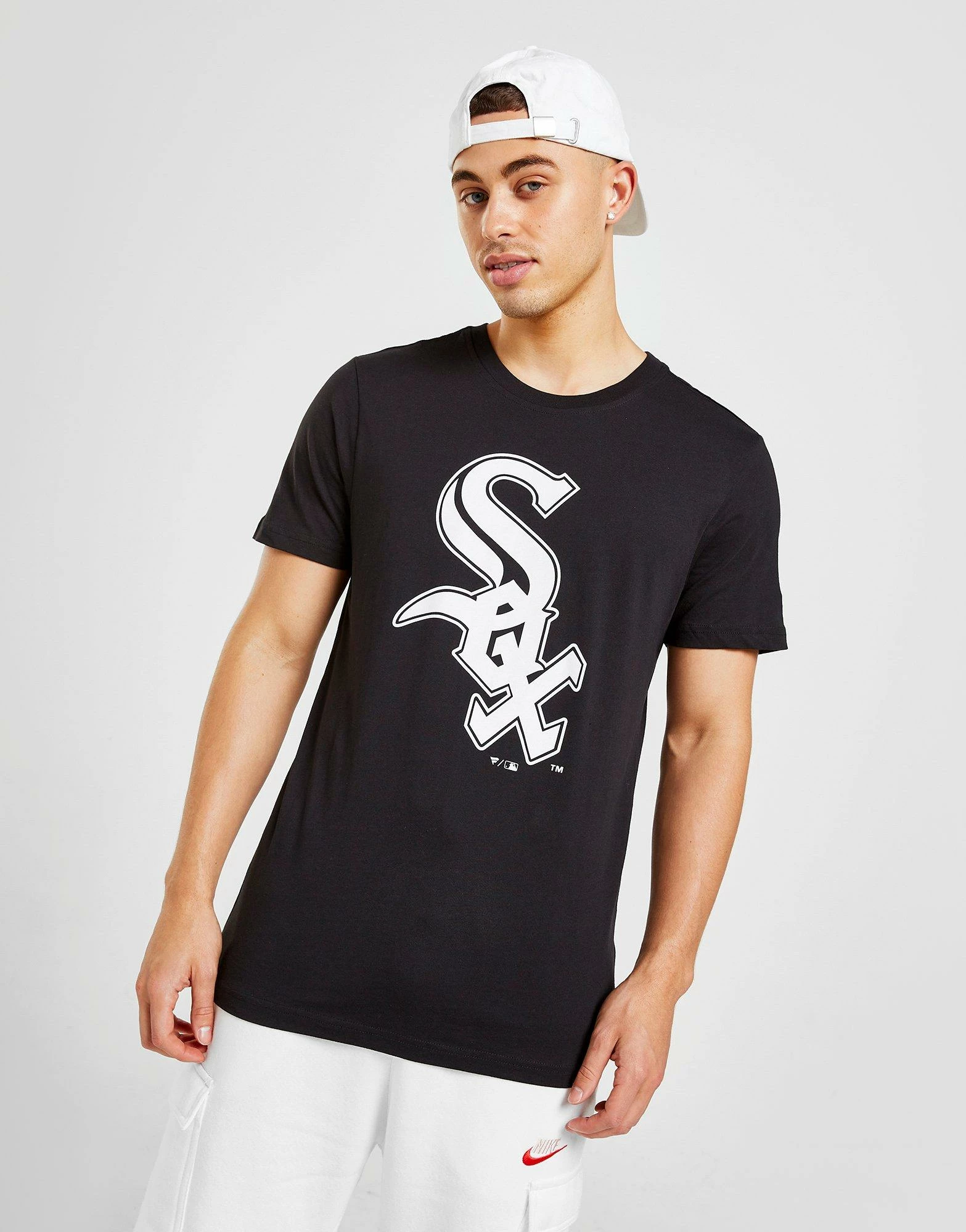 Rep your team’s badge from the stands to the streets with this men’s MLB Chicago White Sox Logo T-Shirt from Official Team. In a black colourway, this regular-fit top has a ribbed crew neckline an and short sleeves for a classic cut. Made from soft, lightweight cotton fabric for all-day comfort, this tee is finished off with a mini MLB logo and the iconic White Sox crest to the front. Machine washable. | Our model is 5’11” with a 38″ chest and wears a size medium.