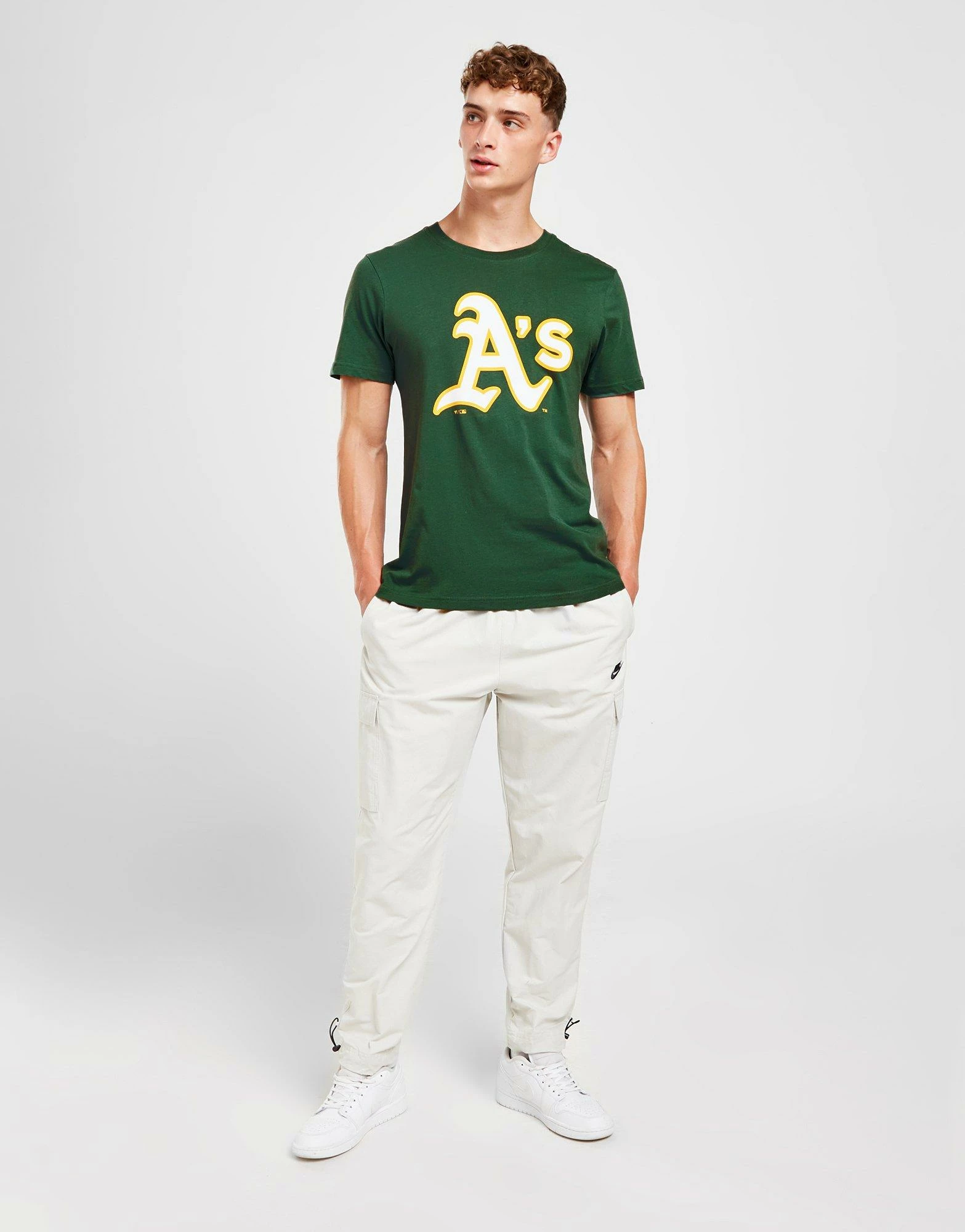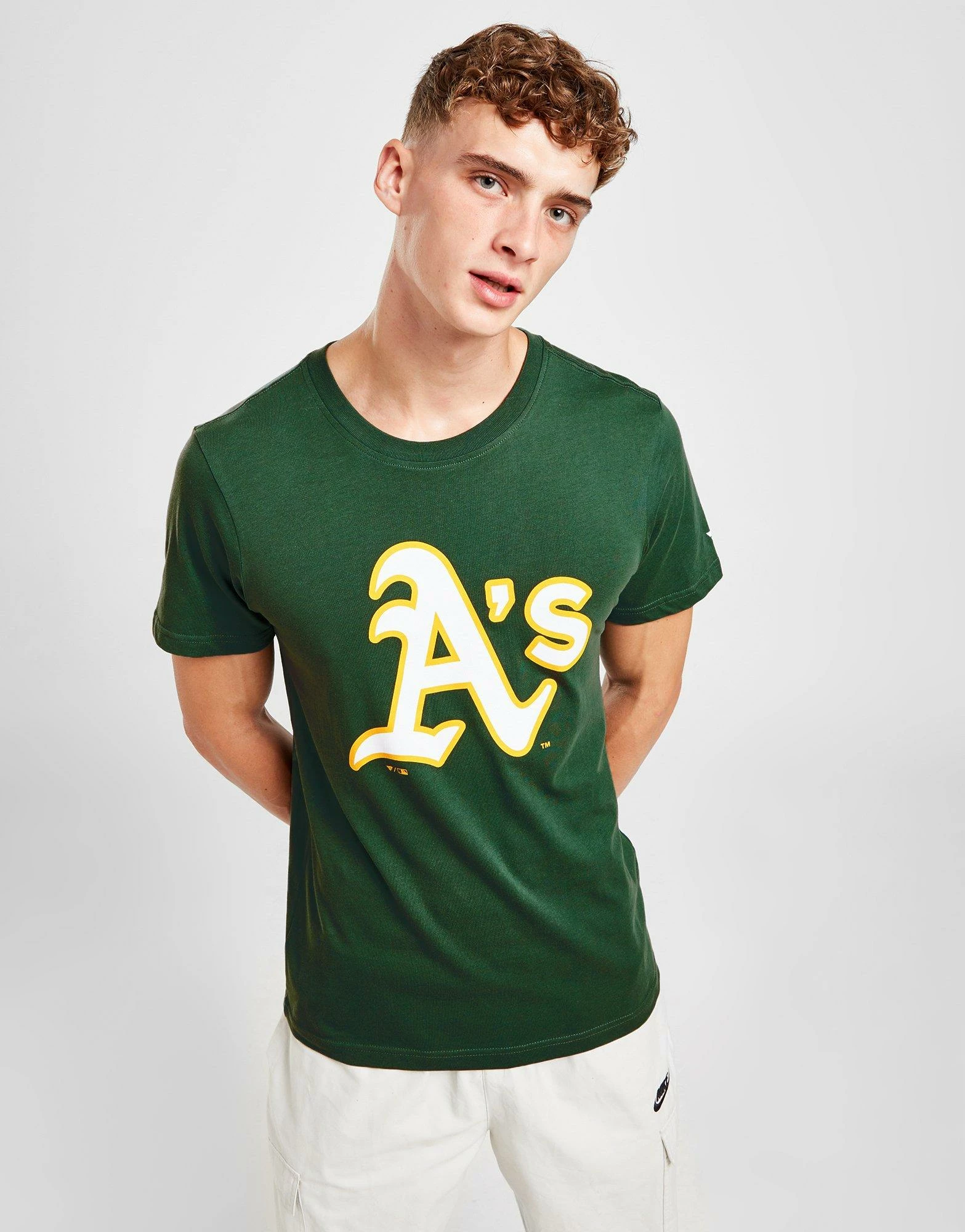 Rep your team every day in this men’s MLB Oakland Athletics Logo T-Shirt from Official Team. Coming in a Green colourway, this standard-fit tee is made with soft, durable cotton for essential comfort. It features a ribbed crew neckline and short sleeves for a classic look, and is finished up with a bold Oakland Athletics team logo stamped to the chest. Machine washable. | Our model is 6’2″ with a 39″ chest and wears a size medium.
