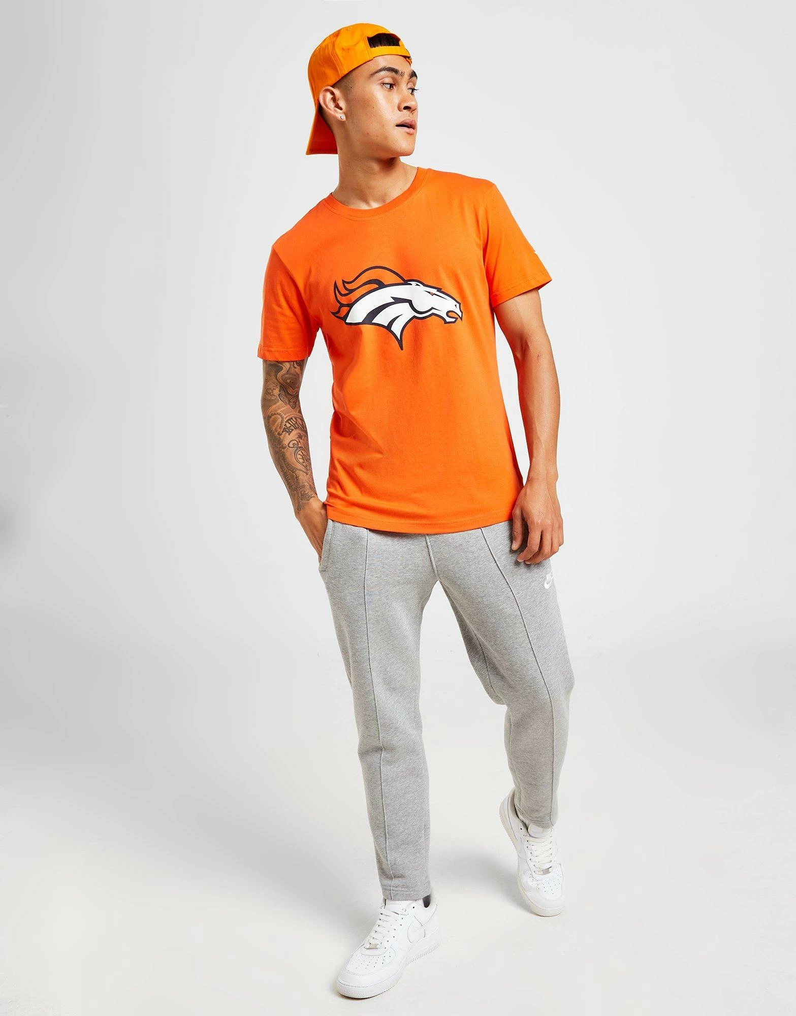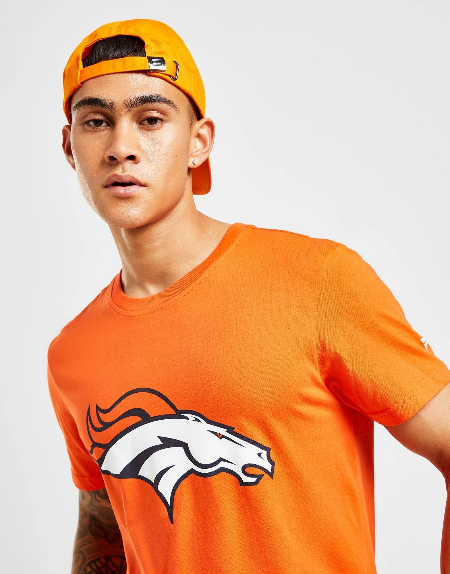 Level up your support with this men’s NFL Denver Broncos Logo T-Shirt from Official Team. Coming in an Orange colourway, this standard-fit tee is made with a cotton fabric that has a super-soft feel for maximum comfort. It features a crew neck with short sleeves for a classic cut and is signed off with a Denver Broncos graphic to the chest. Machine washable. | Our model is 6’0″ with a 40″ chest and wears a size medium.__